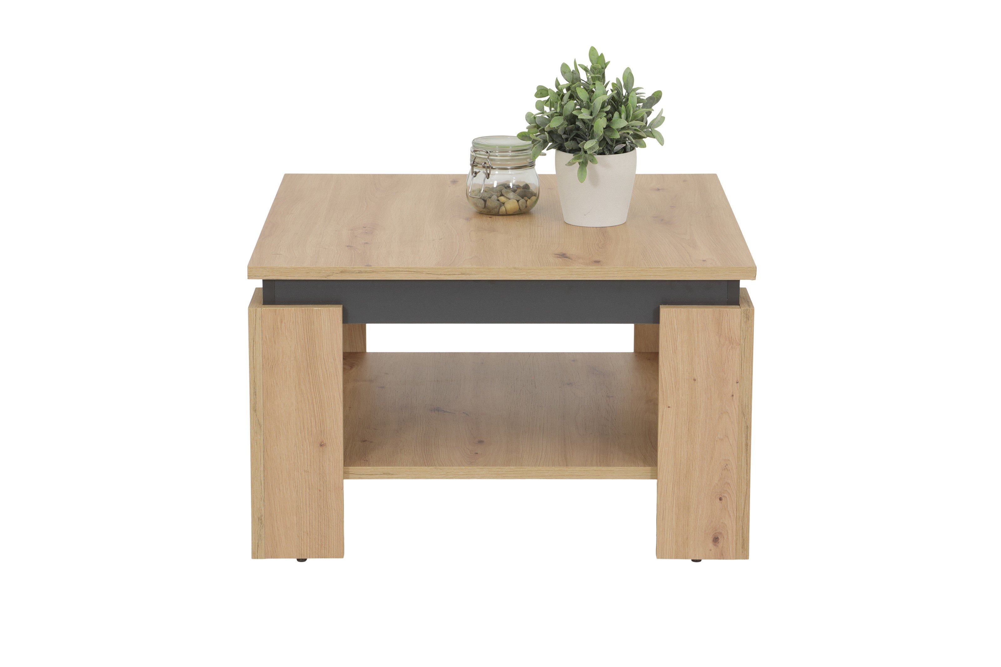 [BulletPoints] => zerlegt;Stilvoller Couchtisch: Der TIM Couchtisch besticht durch sein modernes und ansprechendes Design. Die elegante Farbe Anthrazit verleiht ihm eine stilvolle Ausstrahlung, die perfekt in zeitgemäße Wohnräume passt. Mit den Maßen 68x68x41 cm bietet er eine ideale Größe für verschiedene Wohnbereiche.;Hochwertige Verarbeitung: Der Couchtisch ist aus hochwertigem Holzwerkstoff gefertigt, der eine robuste und langlebige Struktur gewährleistet. Die sorgfältige Verarbeitung zeigt sich in sauberen Kanten und einer gleichmäßigen Oberfläche. Dies verleiht dem Tisch eine edle Optik und eine solide Qualität.;Praktischer Stauraum: Dank seines großzügigen Stauraums ist der Couchtisch äußerst praktisch. Unter der Tischplatte befindet sich ein geräumiges Ablagefach, das sich ideal zum Aufbewahren von Zeitschriften, Fernbedienungen, Büchern oder anderen Utensilien eignet. Dadurch bleibt der Wohnbereich ordentlich und aufgeräumt.;Robuste Konstruktion: Der TIM Couchtisch ist mit einer stabilen Konstruktion ausgestattet, die eine hohe Belastbarkeit gewährleistet. Dadurch kann er problemlos als Ablagefläche für Getränke, Snacks oder Dekorationsgegenstände dienen, ohne dass Sie sich Gedanken über die Standfestigkeit machen müssen.;Gemütliches Wohnzimmer: Mit dem TIM Couchtisch schaffen Sie eine einladende Atmosphäre in Ihrem Wohnzimmer. Sein stilvolles Design und der praktische Stauraum machen ihn zur perfekten Ergänzung für gesellige Abende und gemütliche Stunden. Ob für Spieleabende, Filmabende oder einfach nur zum Entspannen – dieser Couchtisch bietet den idealen Platz für all Ihre Bedürfnisse.
