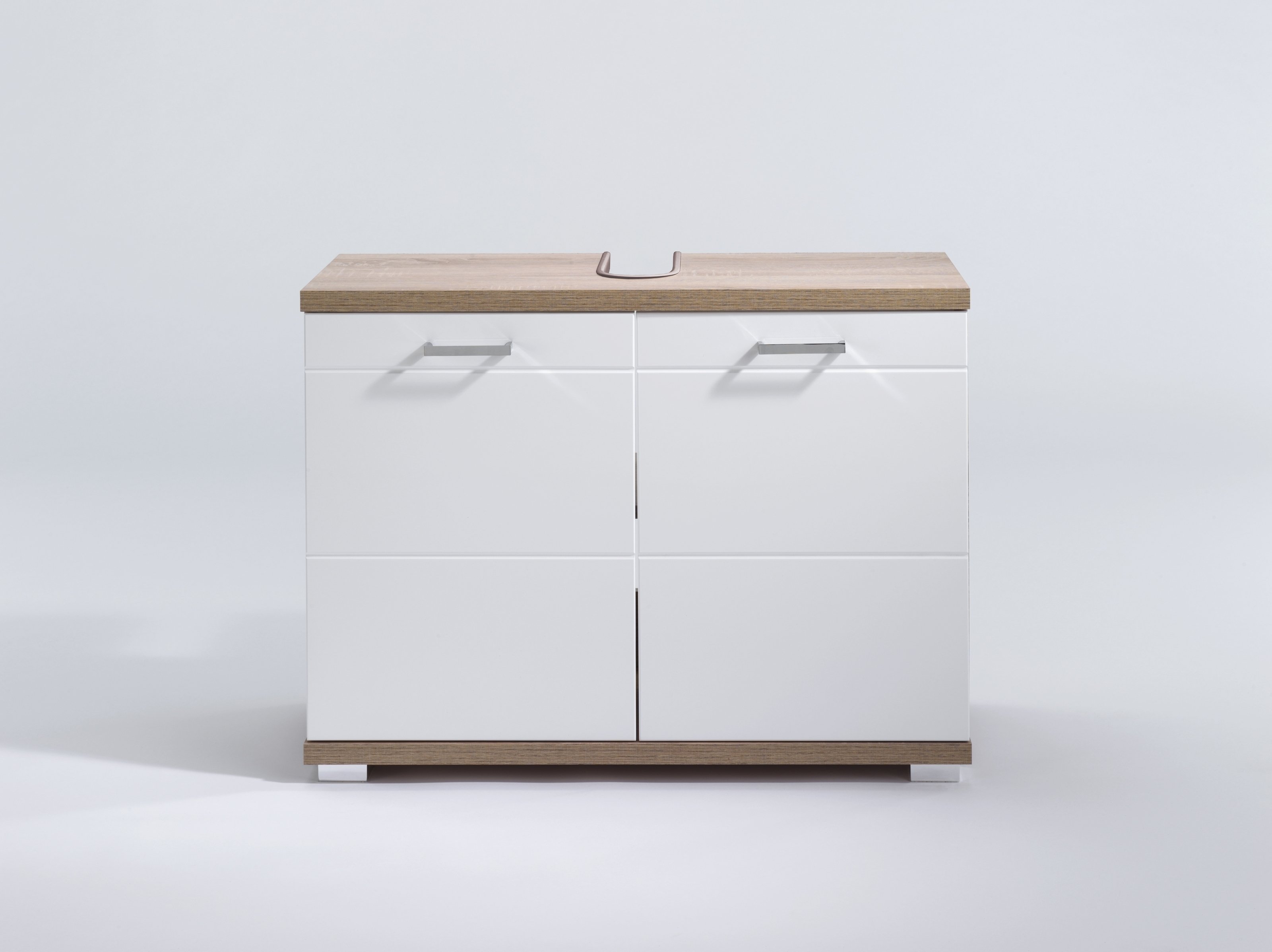 [BulletPoints] => Der Korpus des Waschbecken-Unterschranks ist in matt weiß gehalten und hat weiße Hochglanz-Fronten;Der Waschtisch-Unterschrank bietet viel Stauraum für Kosmetik, Make Up, Hygiene-Artikel, Handtücher oder ähnliches;Die silberfarbenen Griffe am Badschrank bilden zugleich einen eleganten Kontrast mit den weißen hochglänzenden Fronten;Dank mitgelieferter, verständlicher Aufbauanleitung lässt sich der Badschrank von zwei Personen schnell und einfach montieren;Der Waschbeckenunterschrank ist aus FSC-zertifizierten Holzwerkstoffen gefertigt / Maße: B 80, H 59, T 31,5 cm