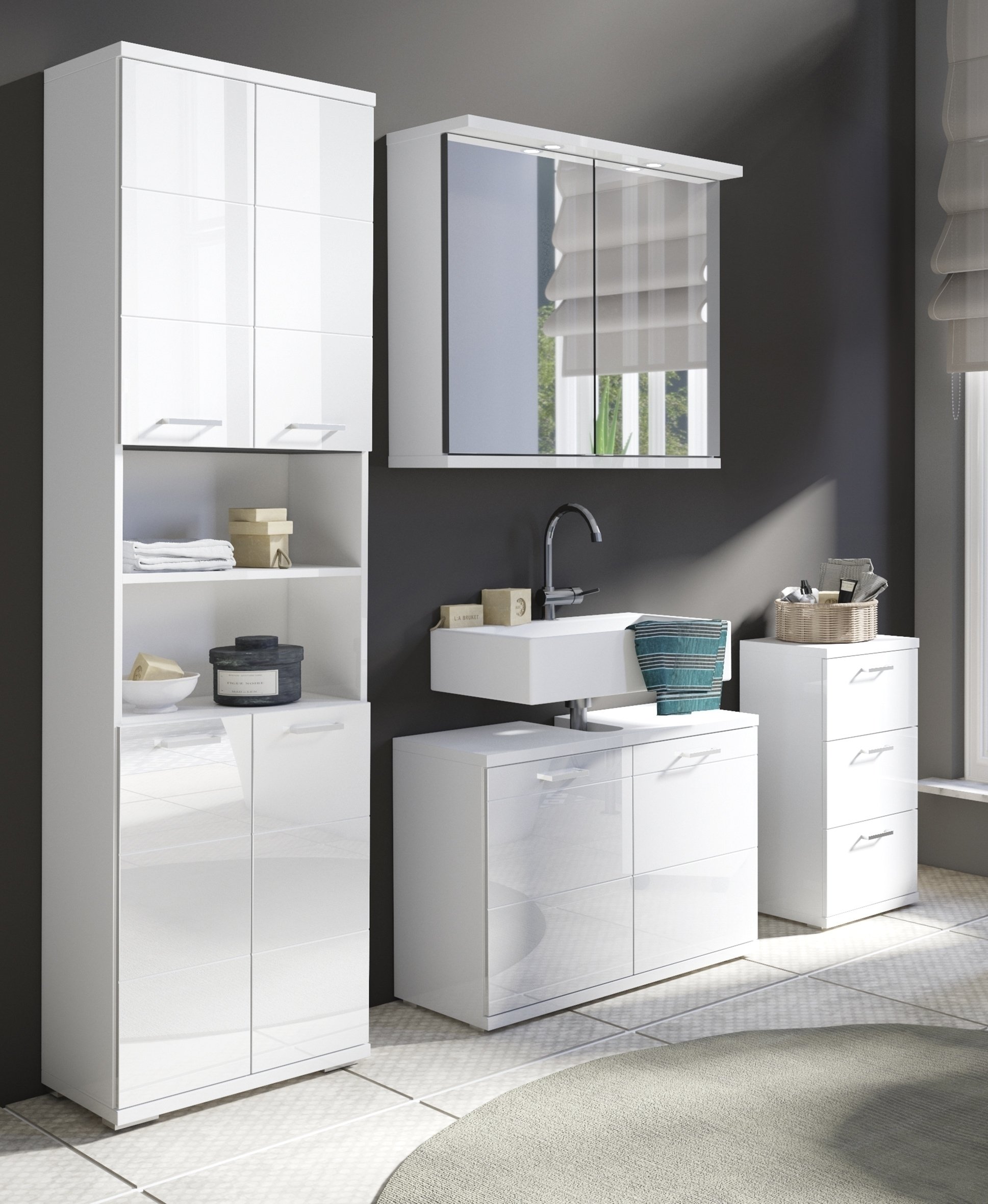 ✔Die weißen Hochglanzfronten lassen dein Bad freundlich und modern wirken.