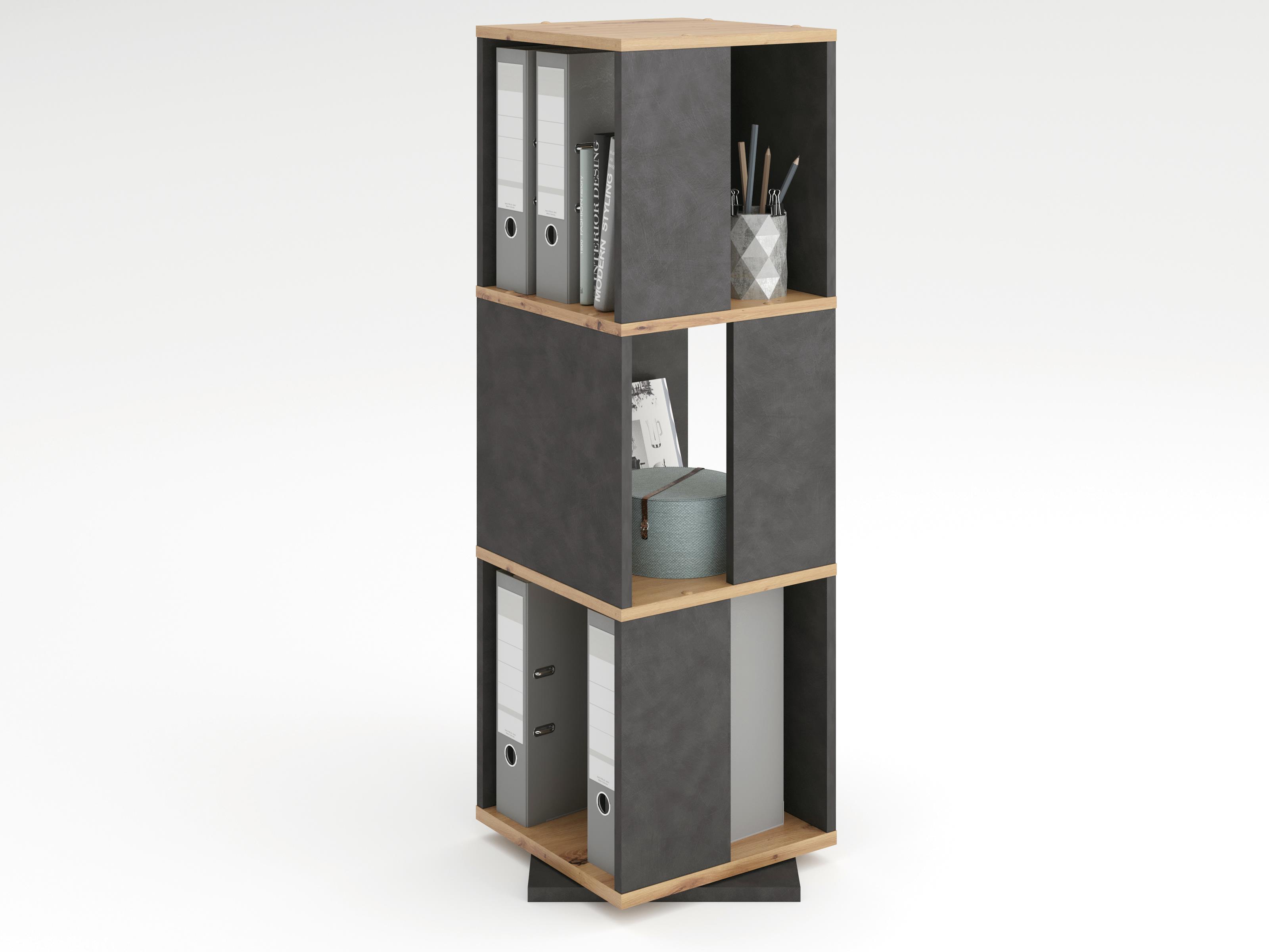 Das Drehregal wird in der modernen Farbkombination Matera mit Absetzungen in Artisan Eiche Nachbildung geliefert.