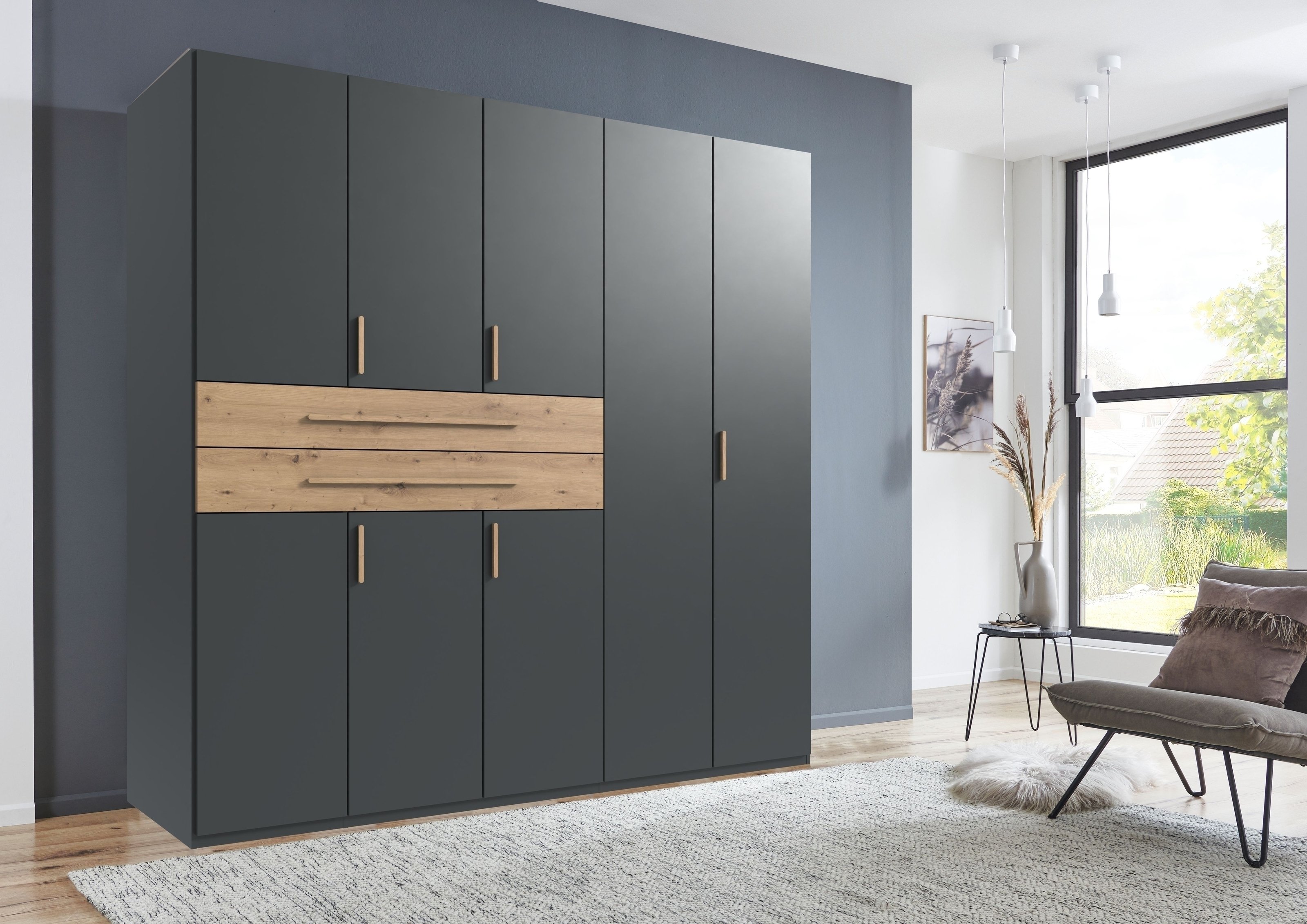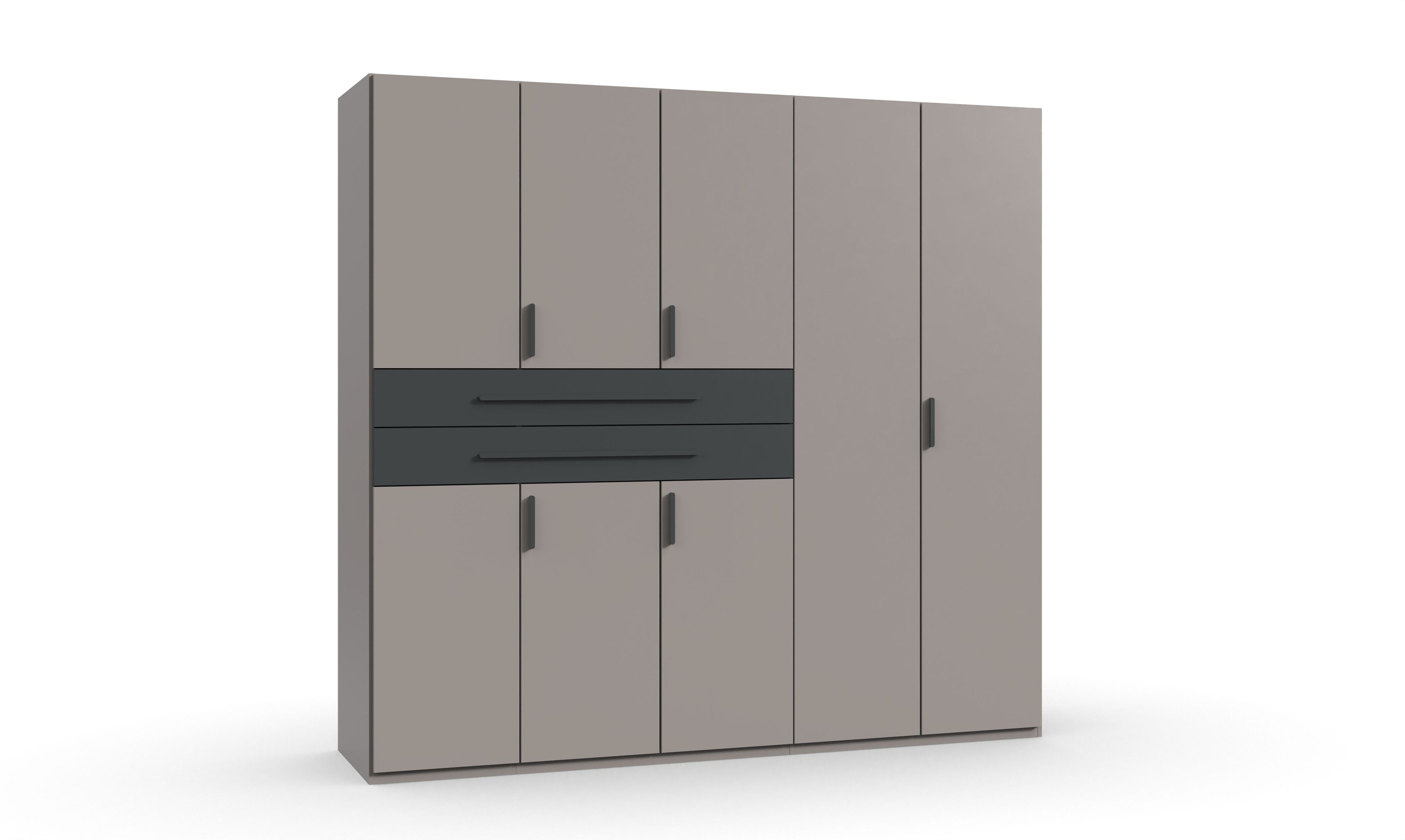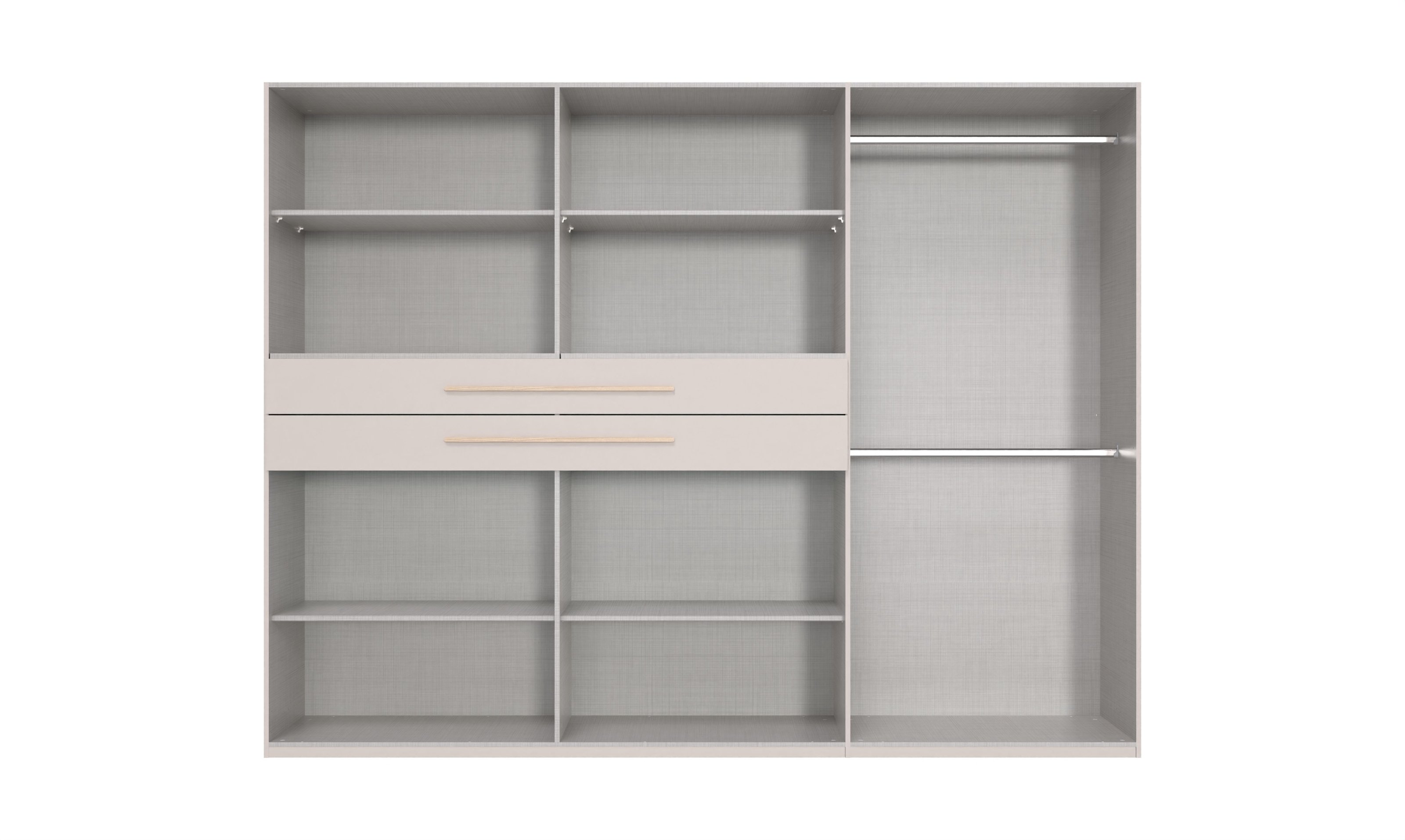 [BulletPoints] => Maße: 270/208/58 cm (B/H/T) bieten großzügigen Stauraum für Kleidung, Bettwäsche und Accessoires, ideal für moderne Schlafzimmer.;Hochwertiges Material: DIGIT besteht aus stabiler Spanplatte in Kaschmir mit Griffen aus Dorena Eiche NB, langlebig, pflegeleicht und robust.;Flexibles Stauraumkonzept: Vier Einlegeböden 87 cm sowie zwei Schubladen ermöglichen individuelle Organisation und Übersicht für Kleidung.;Modernes Design: Stilvolles Kaschmir kombiniert mit Griffen aus Dorena Eiche NB verleiht DIGIT einen eleganten, zeitgemäßen Look.;Lieferzustand: DIGIT wird zerlegt in sechs Paketen geliefert, inklusive Aufbauanleitung, für unkomplizierten Transport und einfache Montage.