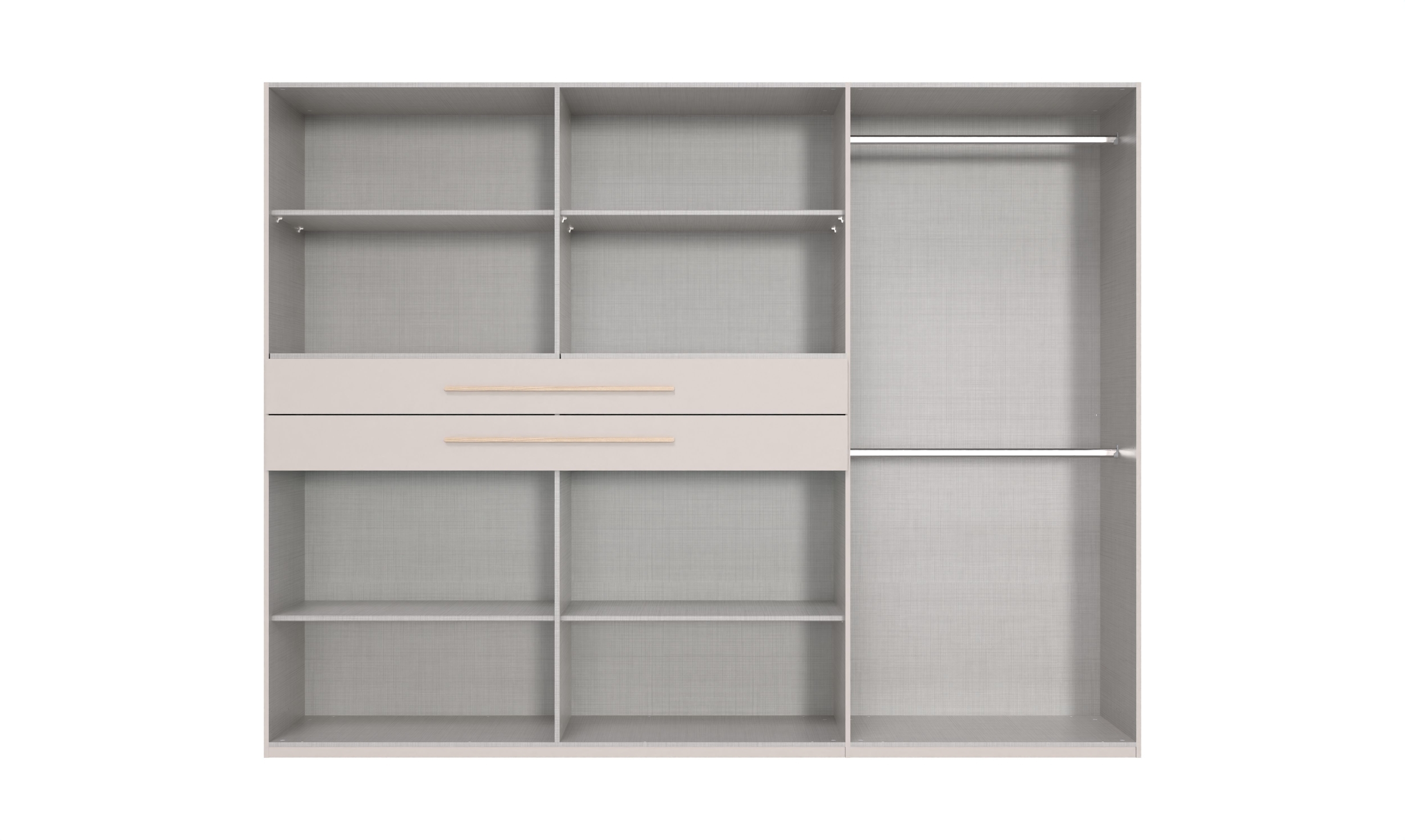 [cWert] => Flexibles Stauraumkonzept: Vier Einlegeböden 87 cm sowie zwei Schubladen ermöglichen individuelle Organisation und Übersicht für Kleidung.