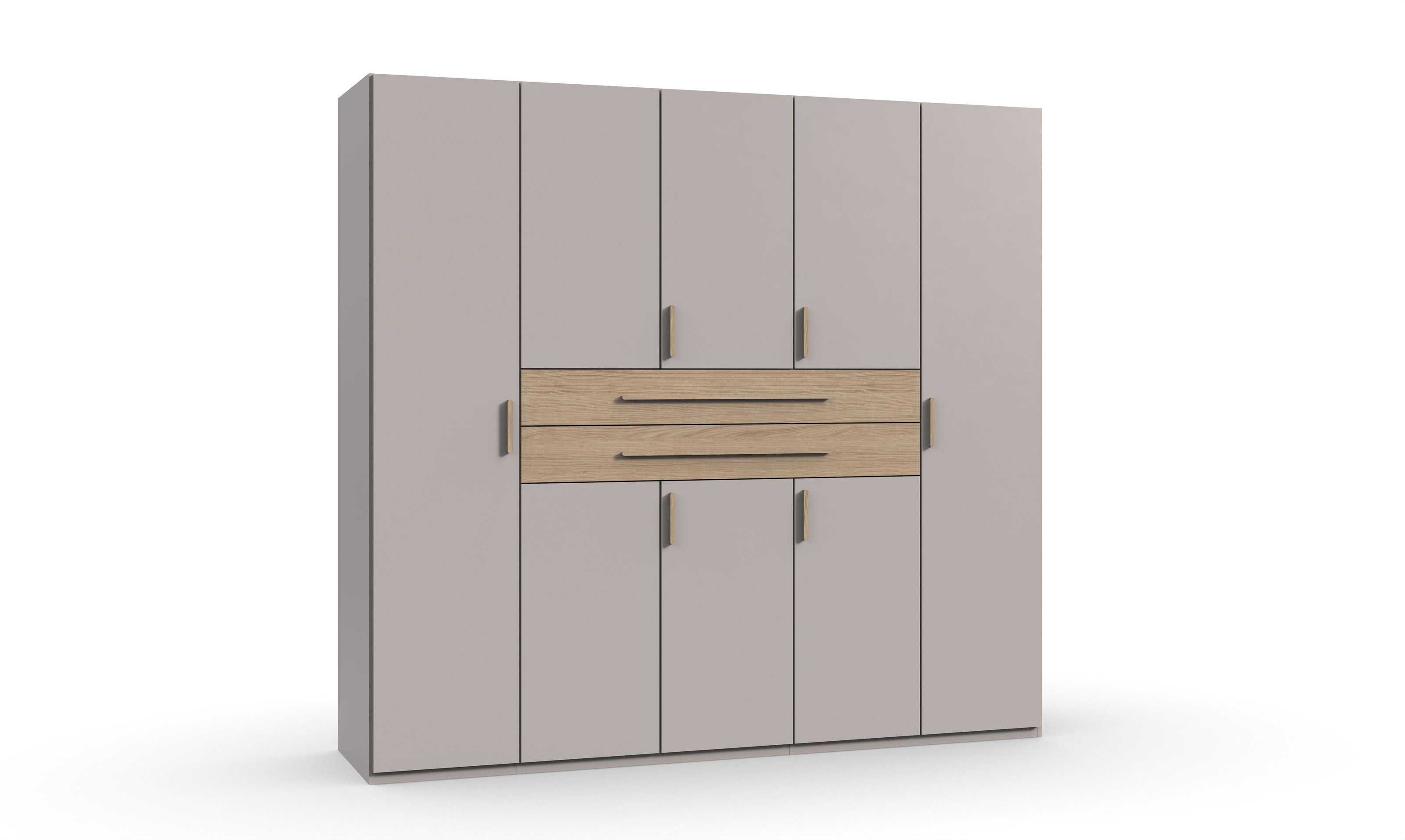 [BulletPoints] => Maße: 270/208/58 cm (B/H/T) bieten großzügigen Stauraum für Kleidung, Bettwäsche und Accessoires, ideal für moderne Schlafzimmer.;Hochwertiges Material: DIGIT besteht aus stabiler Spanplatte in Kaschmir mit Griffen aus Dorena Eiche NB, langlebig, pflegeleicht und robust.;Flexibles Stauraumkonzept: Vier Einlegeböden 87 cm sowie zwei Schubladen ermöglichen individuelle Organisation und Übersicht für Kleidung.;Modernes Design: Stilvolles Kaschmir kombiniert mit Griffen aus Dorena Eiche NB verleiht DIGIT einen eleganten, zeitgemäßen Look.;Lieferzustand: DIGIT wird zerlegt in sechs Paketen geliefert, inklusive Aufbauanleitung, für unkomplizierten Transport und einfache Montage.