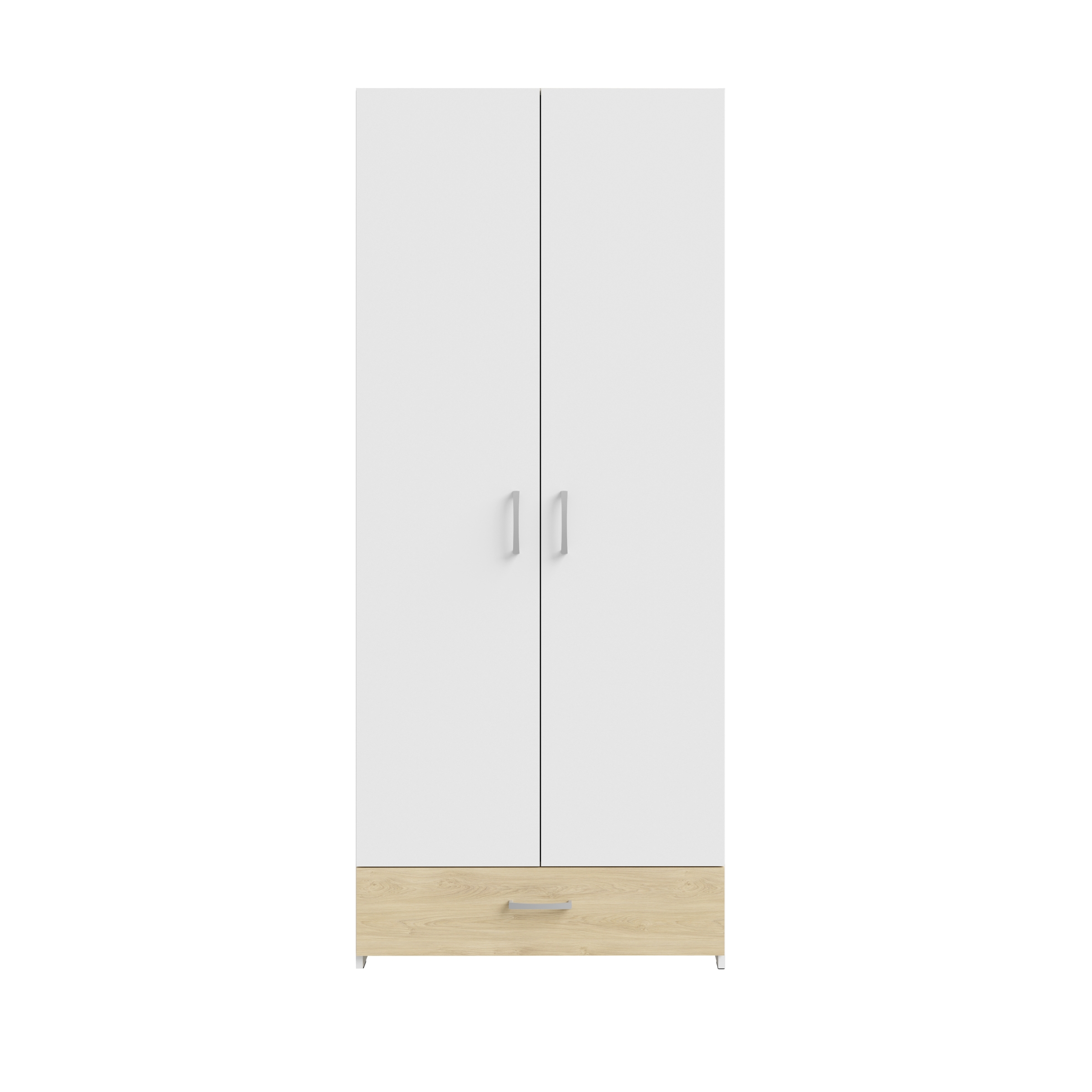 Im Inneren überzeugt der Schrank mit einem durchdachten Stauraumkonzept: Zwei Kleiderstangen mit einer Länge von jeweils 76,6 cm eignen sich ideal für Blusen, Hemden, Jacken oder Kleider. Ergänzend dazu stehen zwei Einlegeböden sowie zwei Ablageböden zur Verfügung, damit gefaltete Kleidung, Wäsche oder Taschen übersichtlich untergebracht werden können. Eine große Schublade bietet zusätzlichen Platz für kleinere Textilien und Accessoires.