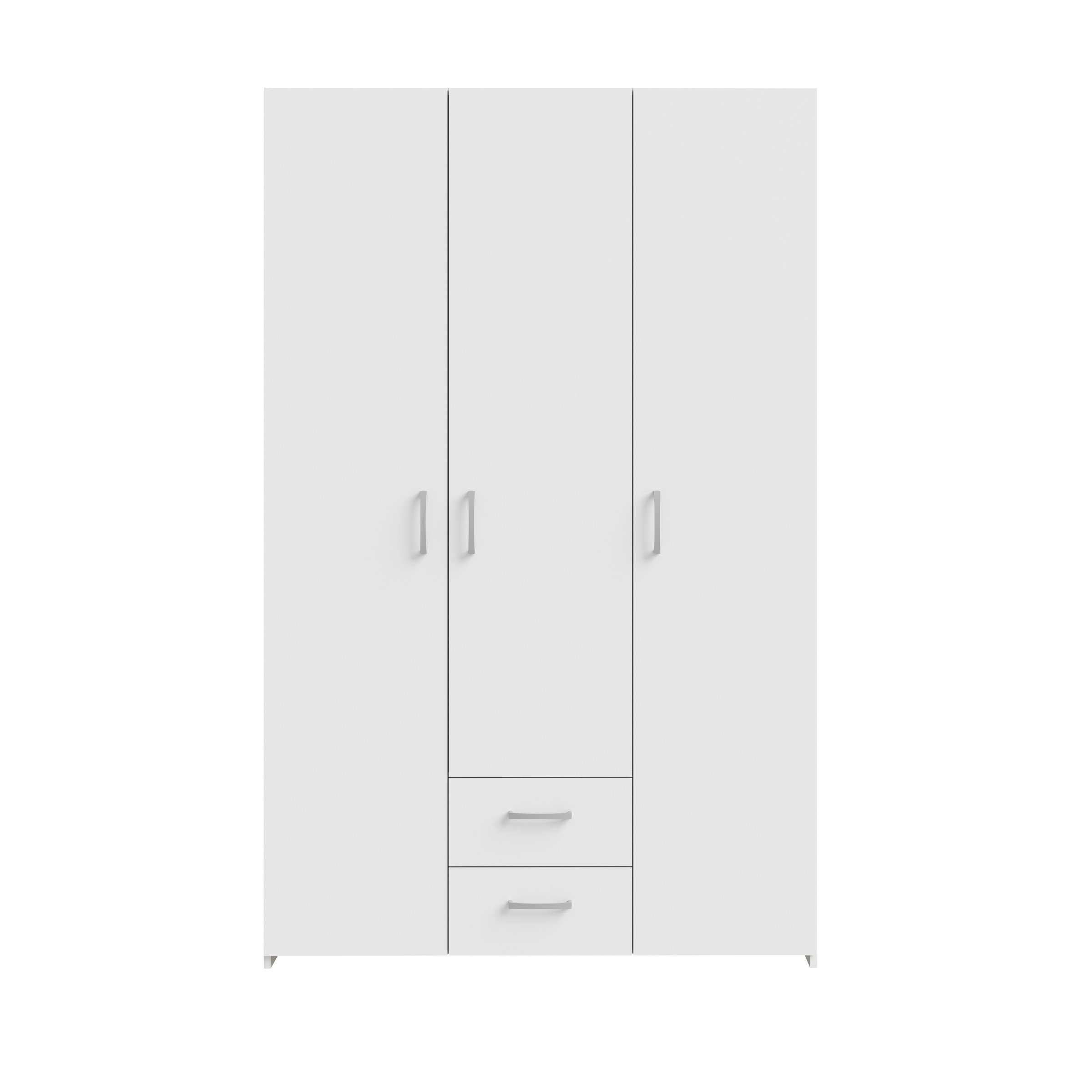 Gefertigt aus robuster Spanplatte mit lackierter HDF-Rückwand und einer pflegeleichten Folienoberfläche ist der ECONOBOX Kleiderschrank langlebig und unkompliziert zu reinigen. Graue Kunststofffüße und Griffe im Aluminiumeffekt unterstreichen den modernen Look und runden das Gesamtbild stilvoll ab.
