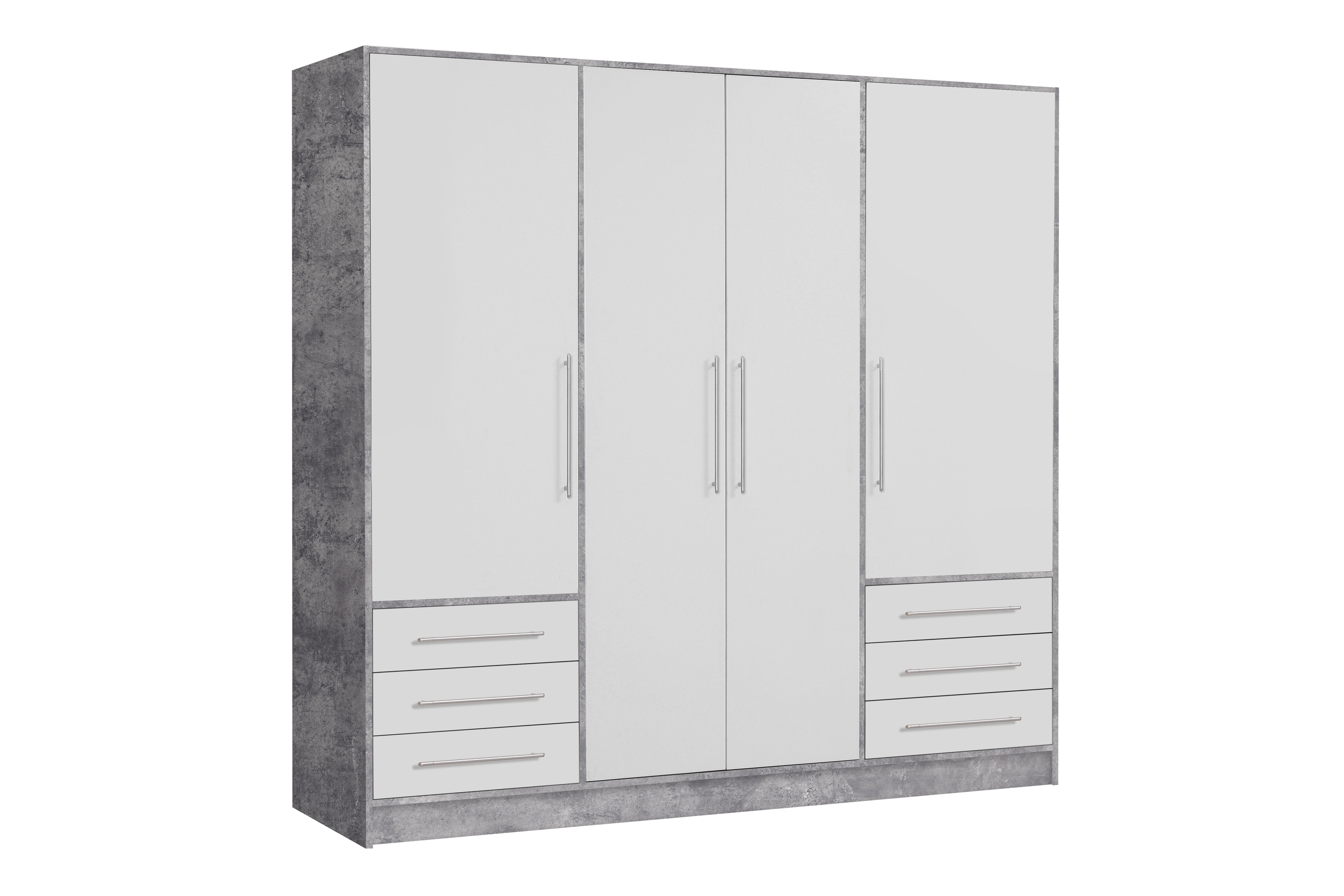 [cKurzbezeichnung] => Drehtürenschrank >JUPITER< 4 Türen, 6 Schübe, Betonoptik / Weiss - 206,5x200x60 (BxHxT)