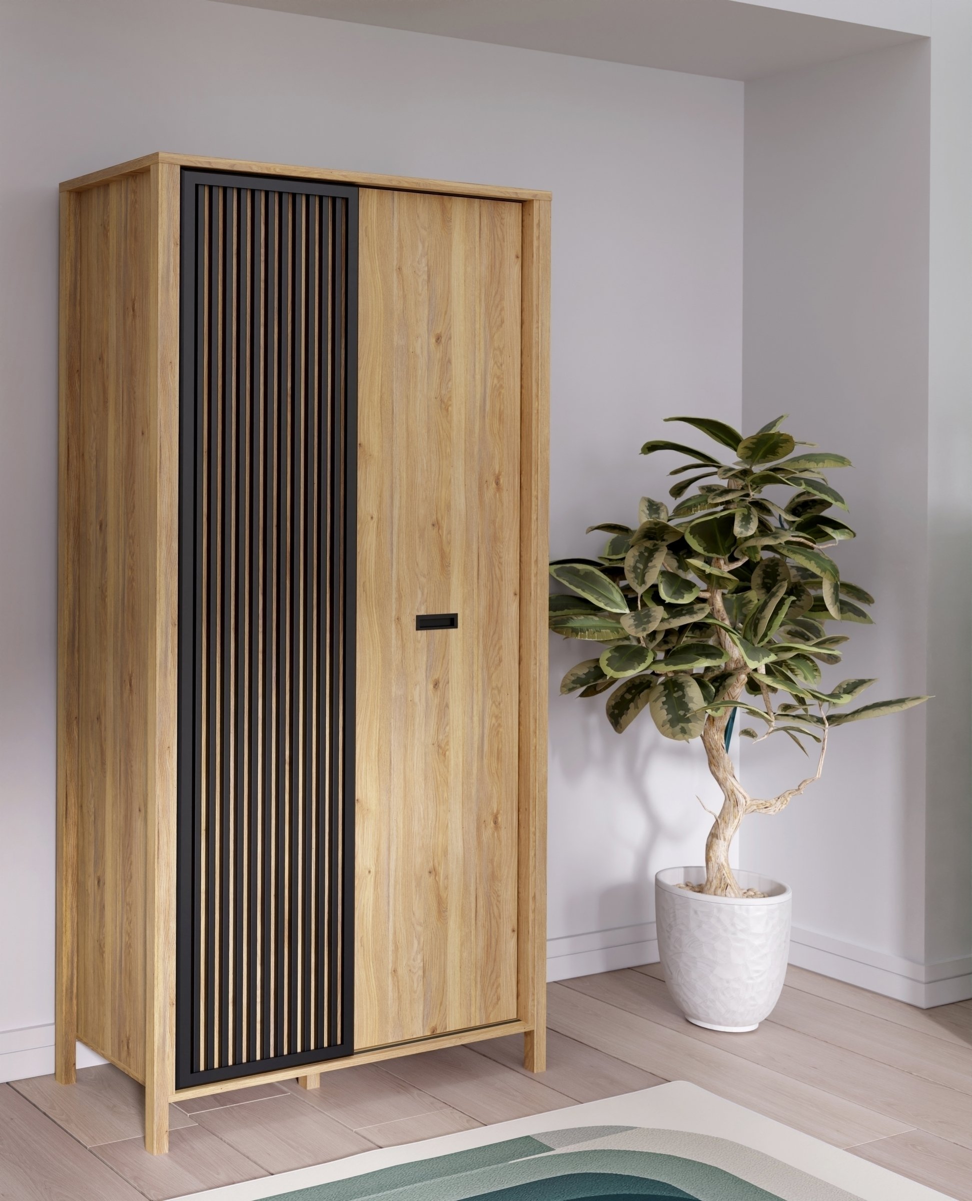 [cKurzbezeichnung] => Drehtürenschrank >JYTANA< in Eiche Dekor / Schwarz - 97x200,3x52,7cm (BxHxT)