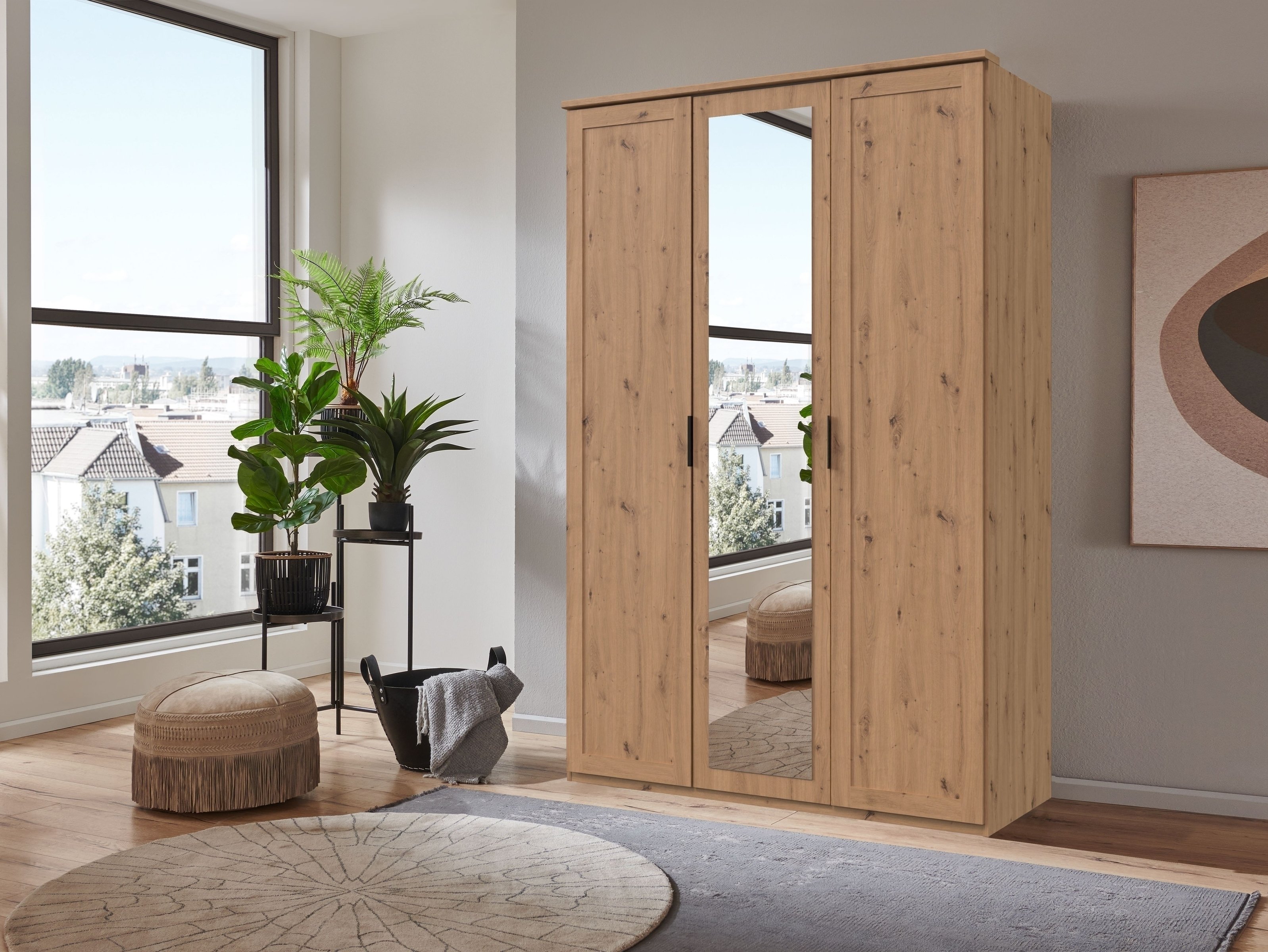 [cSuchbegriffe] => Drehtürenschrank NADJA, Kleiderschrank Artisan Eiche, Schlafzimmerschrank modern, Schrank mit Spiegel, kompakter Kleiderschrank, Made in Germany, Stauraum Schlafzimmer