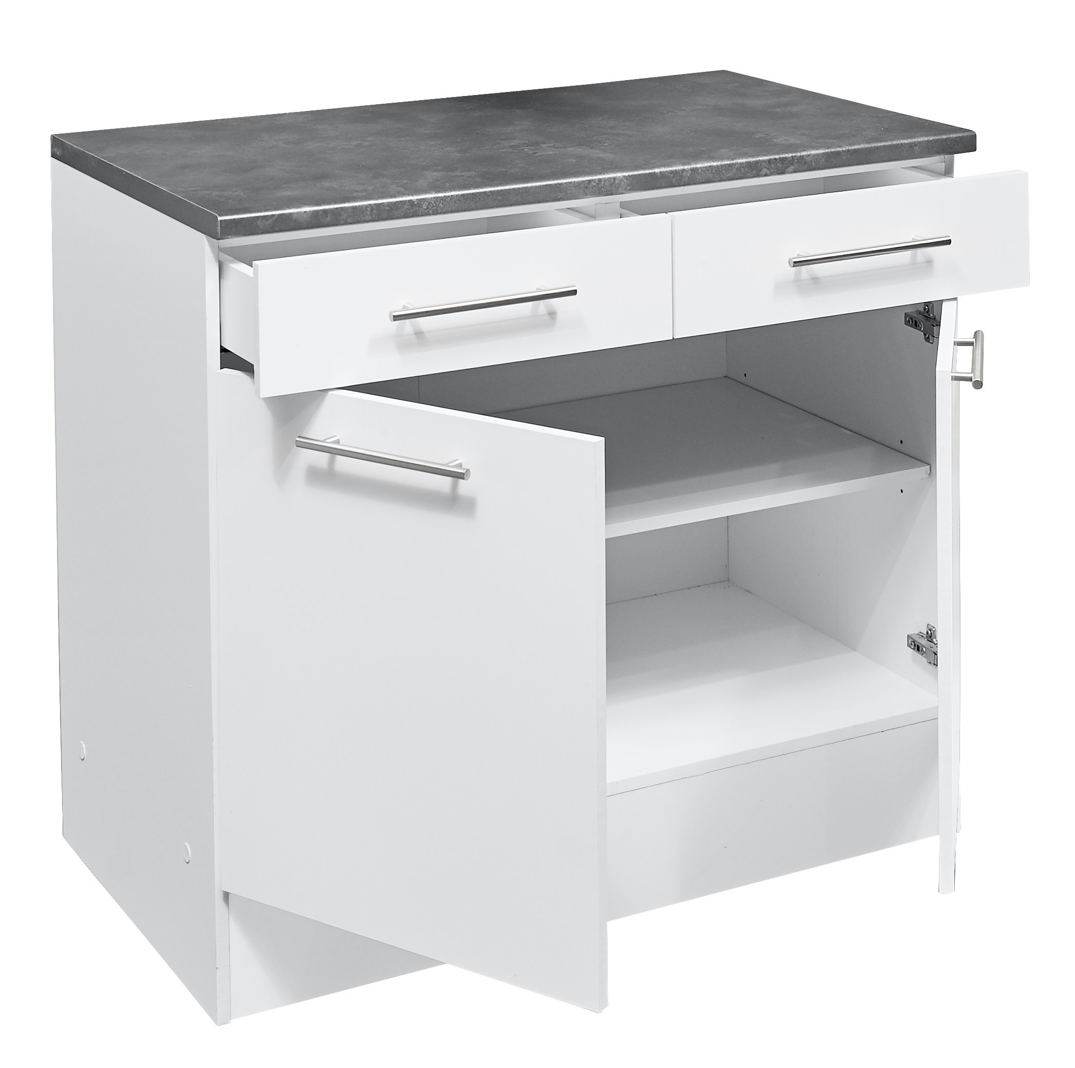 [metaTitle] => EDDY Moderner Küchenunterschrank in Weiß matt, Metallic Grau - Geräum, 121,95 €