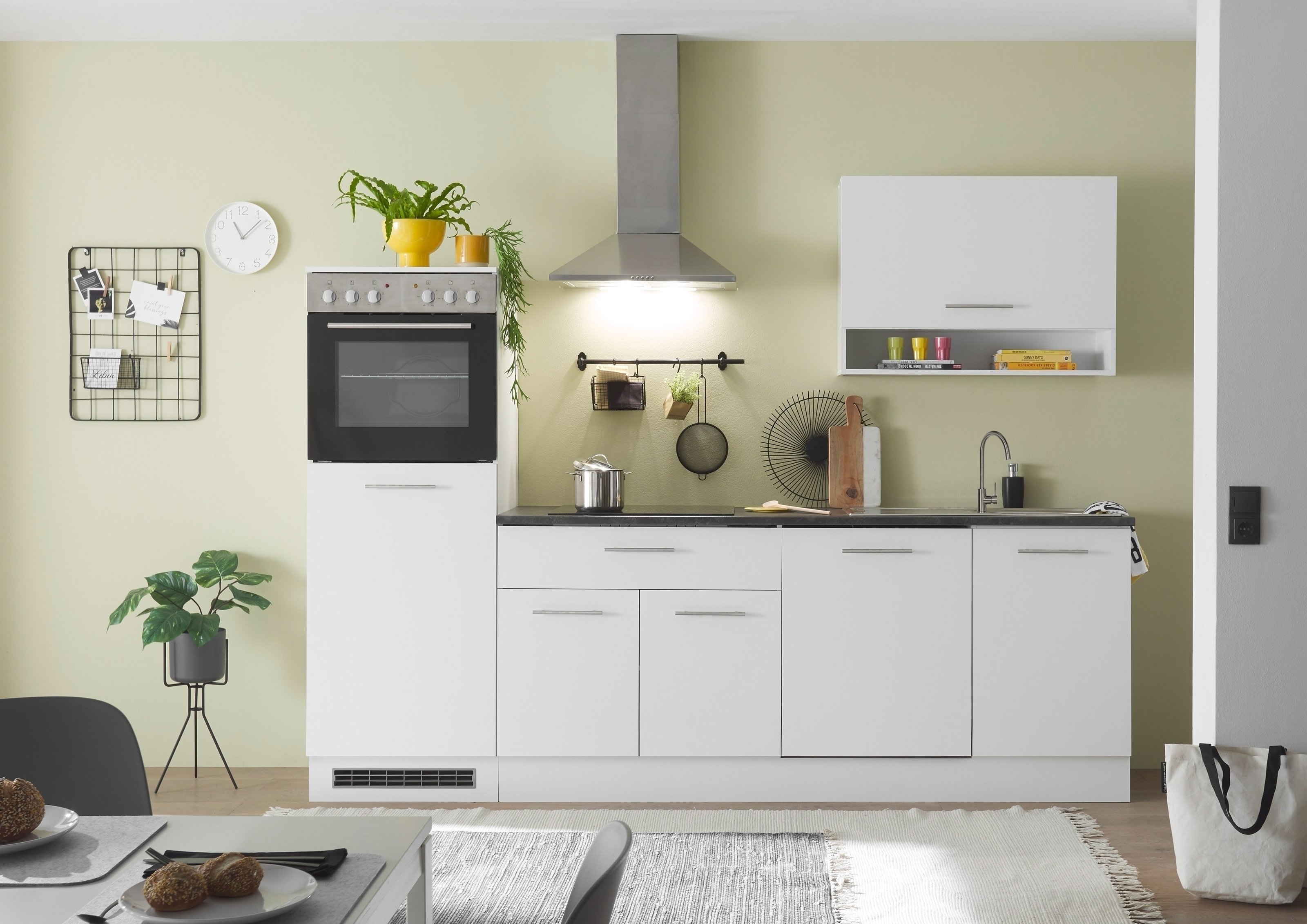 ✔Matt weiße Fronten und Korpus sorgen für eine helle, zeitlose Optik in Ihrer Küche.