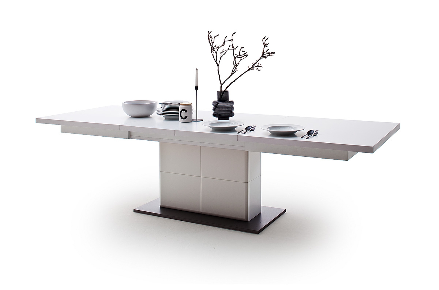 Amora Esstisch Weiß – moderner Ausziehtisch mit Synchronauszug und Einlegeplatten