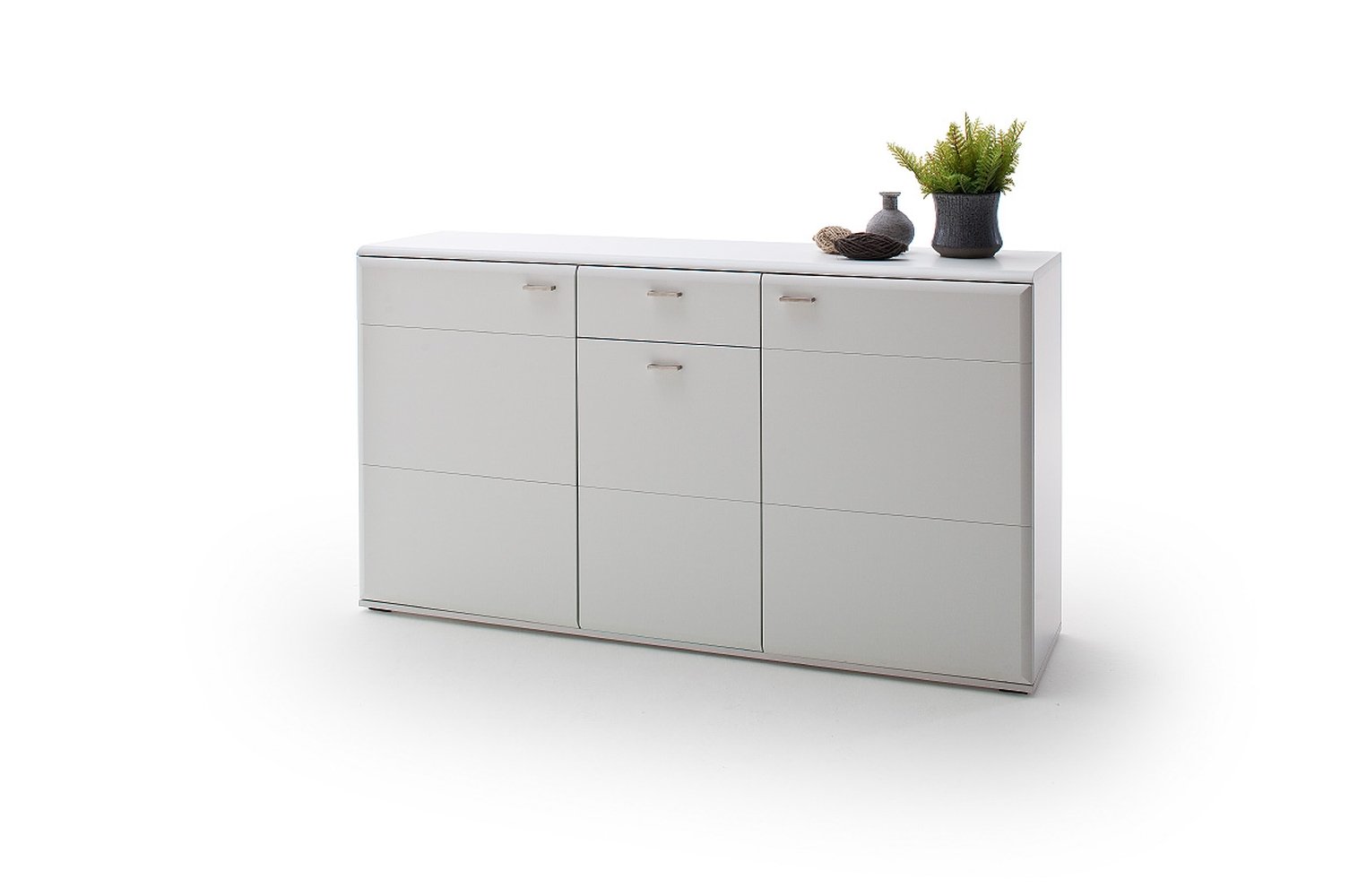 [metaDescription] => Modernes Sideboard, Front in weiß matt tiefgezogen Nachbildung, innen weiß matt Melamin Nachbildung, Korpus DBS Holzwerkstoff in weiß matt Nachbildung mit 3