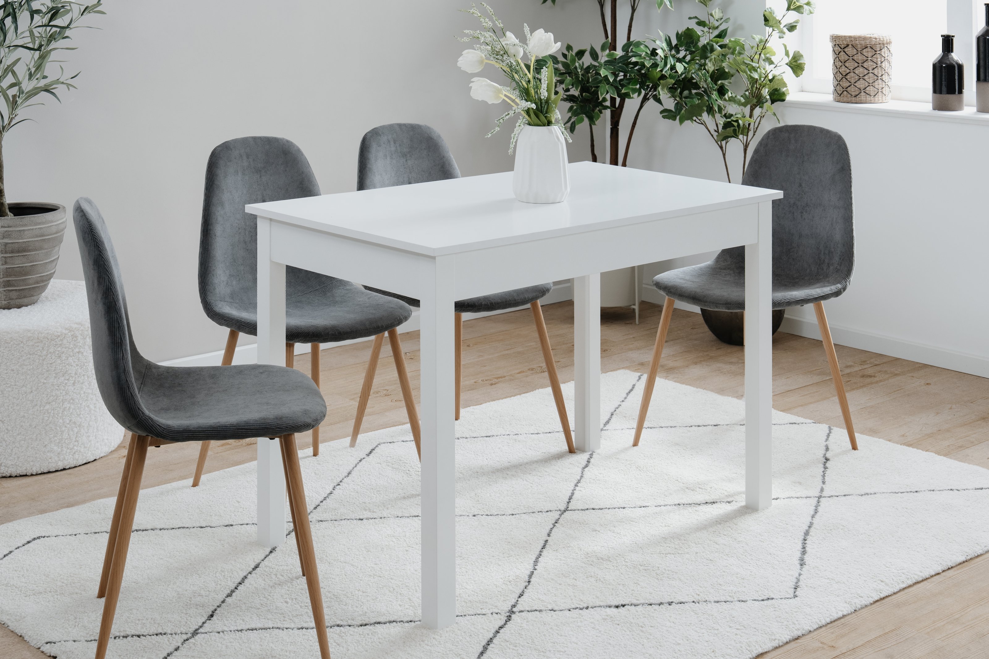 Mit seinen kompakten Maßen von 110 x 76 x 67 cm (B/H/T) passt der Capri Esstisch in nahezu jeden Wohnraum. Ob als klassischer Esstisch im Esszimmer, als praktischer Küchentisch oder als stylischer Bartisch – der Capri ist vielseitig einsetzbar und bietet ausreichend Platz für bis zu vier Personen. Der Abstand von 96 cm zwischen den Tischbeinen sorgt zudem für eine angenehme Beinfreiheit, sodass Sie bequem sitzen können.
