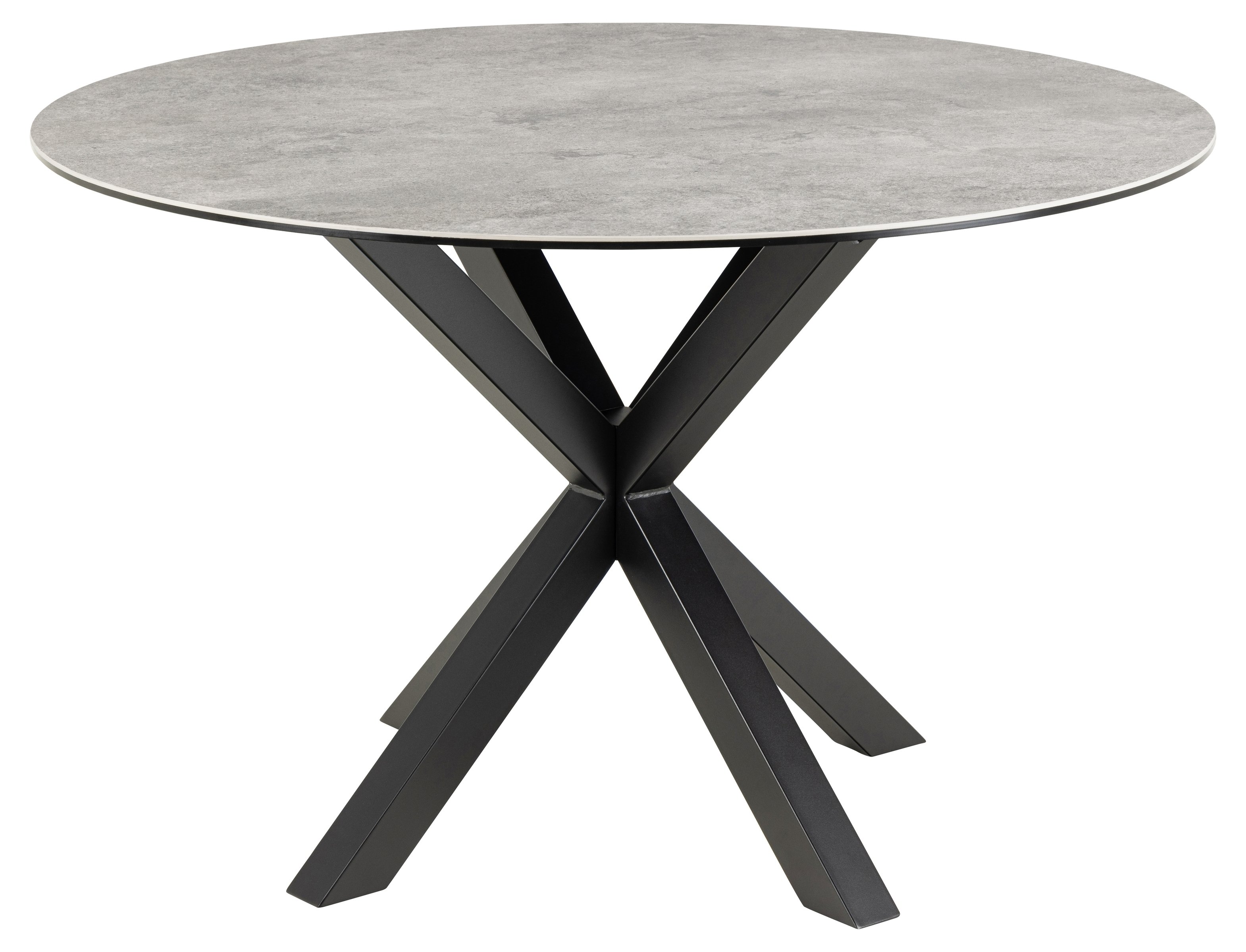 Die graue Anista-Tischplatte aus Glas-Keramik überzeugt durch ihre raue, widerstandsfähige Oberfläche, die unempfindlich gegenüber Kratzern und Flecken ist und sich ideal für den täglichen Gebrauch eignet. Die Höhe bis zur Tischunterkante von 74,5 cm sorgt für angenehme Beinfreiheit und komfortables Sitzen auch über längere Zeit.