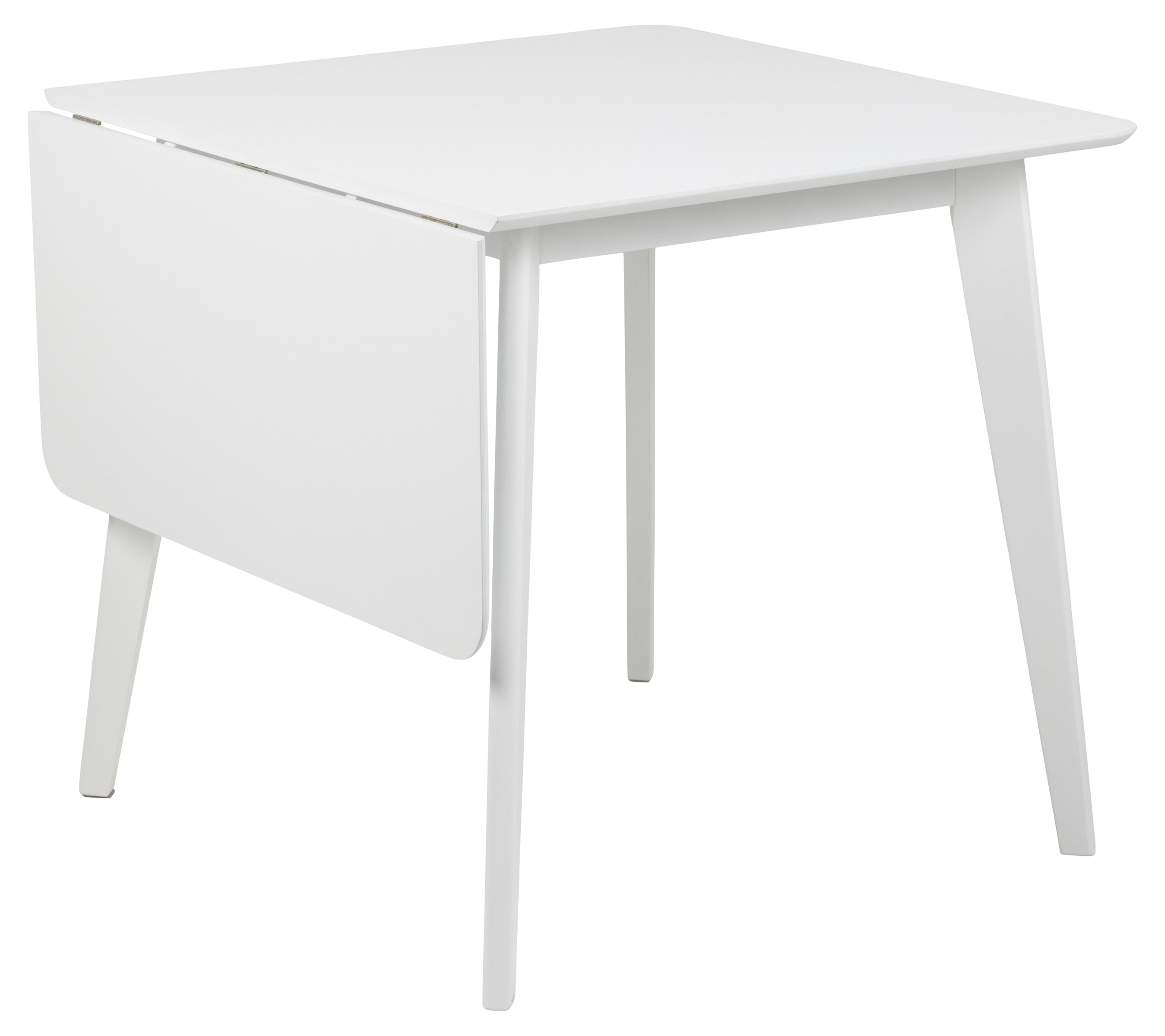 [Bullet-Point 1] => Klapptisch Roxby in Weiß mit einer Grundfläche von 80x80 cm, erweiterbar auf 120 cm Breite.
