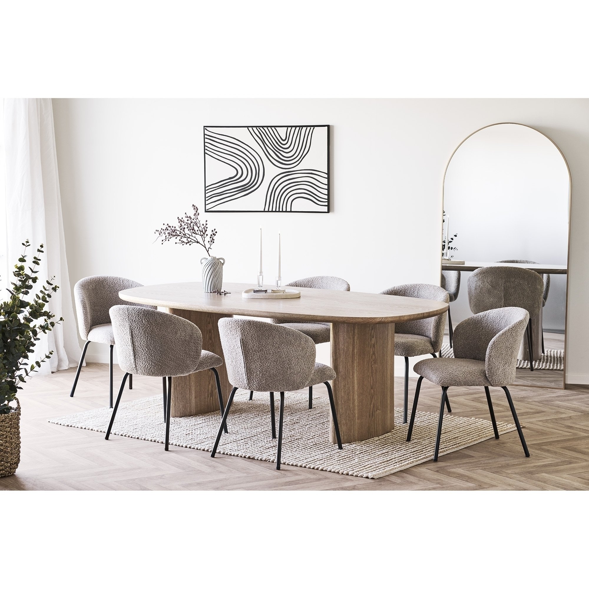 Gefertigt aus stabilem MDF und veredelt mit einem natürlichen Eschenfurnier, bietet Serra eine warme, naturbelassene Oberfläche mit angenehmer Haptik. Die ovale Tischplatte schafft ein harmonisches, weiches Gesamtbild und sorgt für ein angenehmes Sitzgefühl rund um den Tisch – passend zu klassischen wie modernen Einrichtungsstilen.