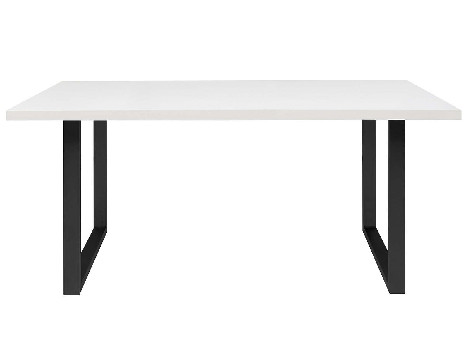 Die Tischplatte aus Spanplatte in mattem Weiß sorgt für eine frische, zeitgemäße Ausstrahlung. Sie lässt sich vielseitig kombinieren – ob mit dezenten Stühlen oder markanten Farbkontrasten. Das schwarze Metallgestell in geradliniger U-Form greift den modernen Wohnstil auf und setzt einen stilvollen Akzent, der den Tisch optisch stabil und hochwertig wirken lässt.