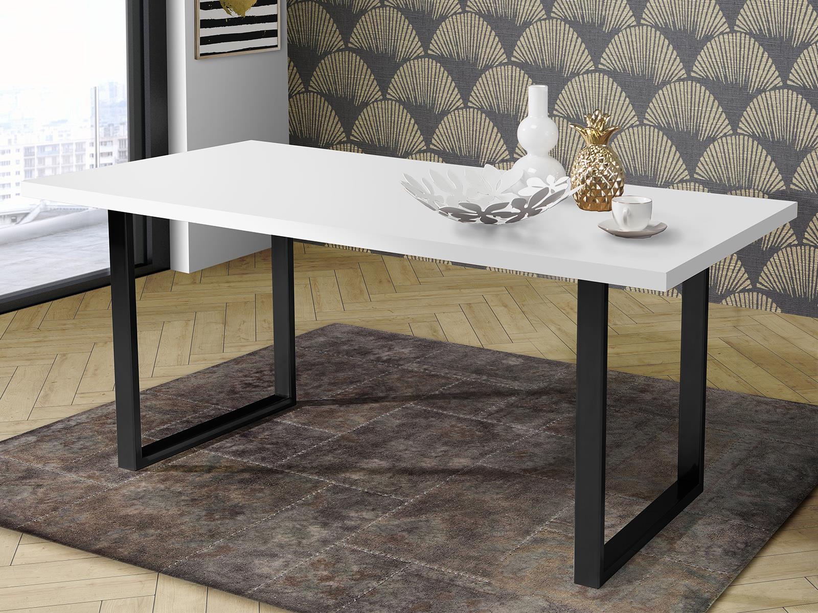 Die Tischplatte ist in mattem Weiß gehalten und sorgt für eine besonders frische und freundliche Ausstrahlung. Das dazu kombinierte schwarze Metallgestell setzt einen attraktiven Kontrast, der dem Tisch einen eleganten und zugleich zeitgemäßen Charakter verleiht. Die schnörkellosen, geradlinigen Füße in U-Form betonen den modernen Wohnstil und fügen sich harmonisch in unterschiedlichste Einrichtungsstile ein.