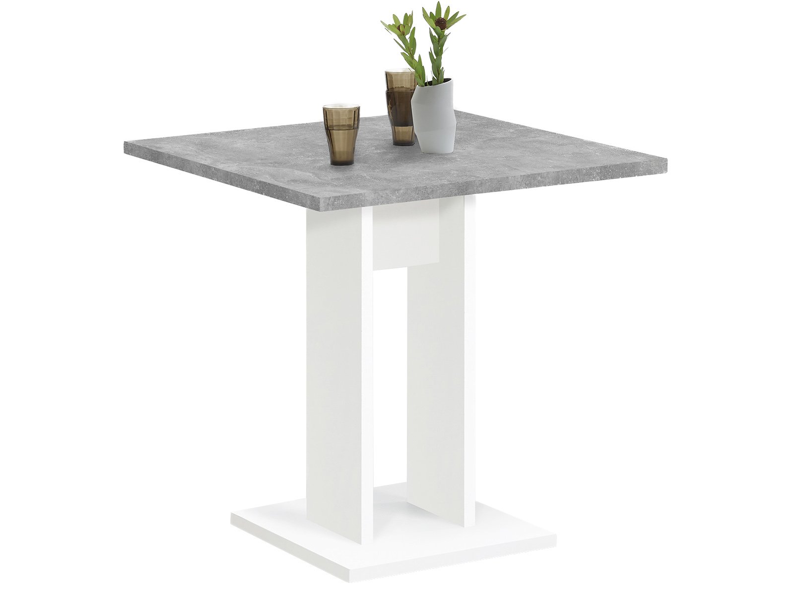 Das Zusammenspiel aus der Tischplatte in Betonoptik und dem weißen Säulengestell verleiht dem Tisch eine freundliche, moderne Ausstrahlung. Sein dezentes, eckiges Design fügt sich mühelos in viele Einrichtungsstile ein und bringt Leichtigkeit in Ihre vier Wände – typisch solide Qualität "Made in Germany".