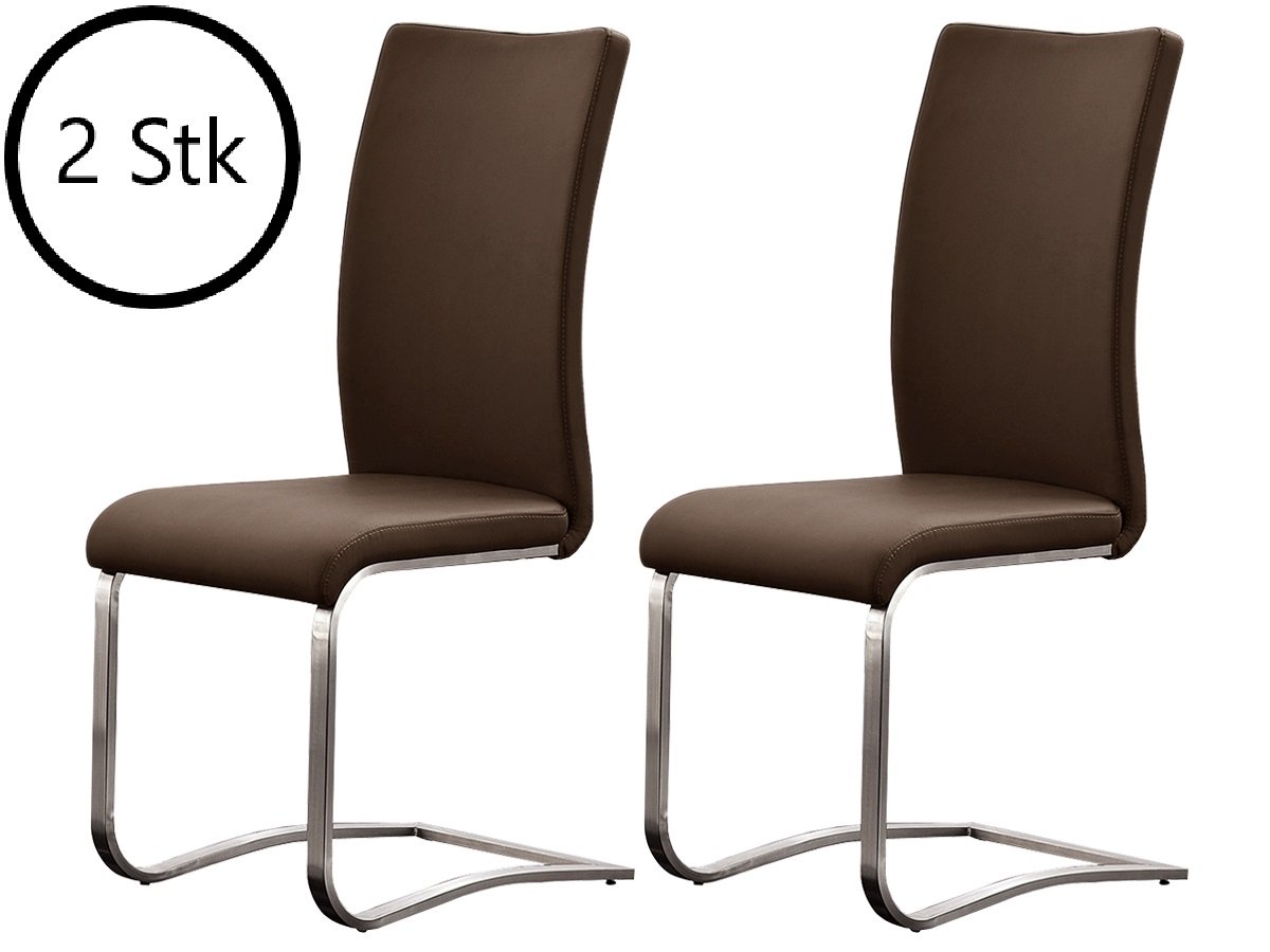 Dieser Stuhl kommt ohne vier Beine aus und das nicht erst seit gestern. Bereits in den späten Zwanzigerjahren des 20. Jahrhunderts designte der Bauhaus-Architekt den ersten Stuhl ohne erkennbare Hinterbeine. Die ausgeklügelte Rahmenkonstruktion aus Stahlrohr machte dies möglich. Der typische Schwingstuhl besteht aus einem Metallrohr, welches gleichzeitg auch als tragender Rahmen dient und die Form einer Kufe hat, dadurch sitzt man auf dieser Stuhlart nicht starr und unbeweglich, sondern kann durch Körperdruck den Stuhl in leichte Schwingungen versetzen. Das ist besonders bequem und unterstützt das aktive Sitzen. Das Schwingstuhlset "Muvo I" überzeugt durch sanfte zeitgemäße Formgebung im puristischen Design. Das hochwertige Kunstleder mit in Kombination aus gebürstetem Edelstahlflachrohr macht diesen Stuhl besonders pflegeleicht und langlebig.
