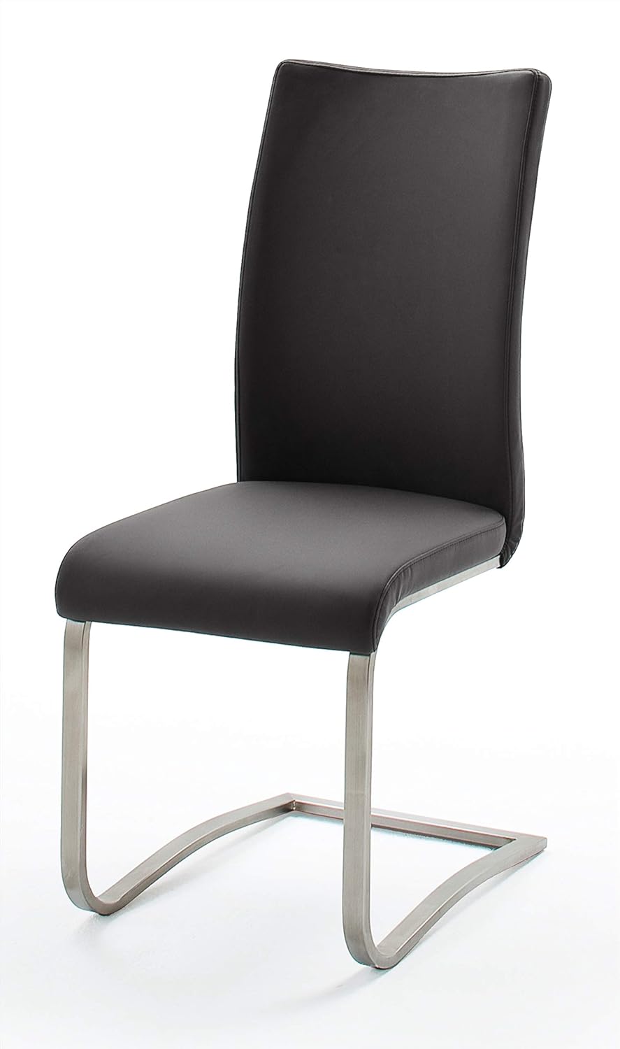 Dank der ausgeklügelten Stahlrohr-Kufenkonstruktion schwingt der Stuhl leicht mit jeder Bewegung mit, ohne an Stabilität einzubüßen. Die Kombination aus hochwertigem Echtleder und gebürstetem Edelstahlflachrohr sorgt nicht nur für eine edle Optik, sondern auch für Langlebigkeit und einfache Pflege.