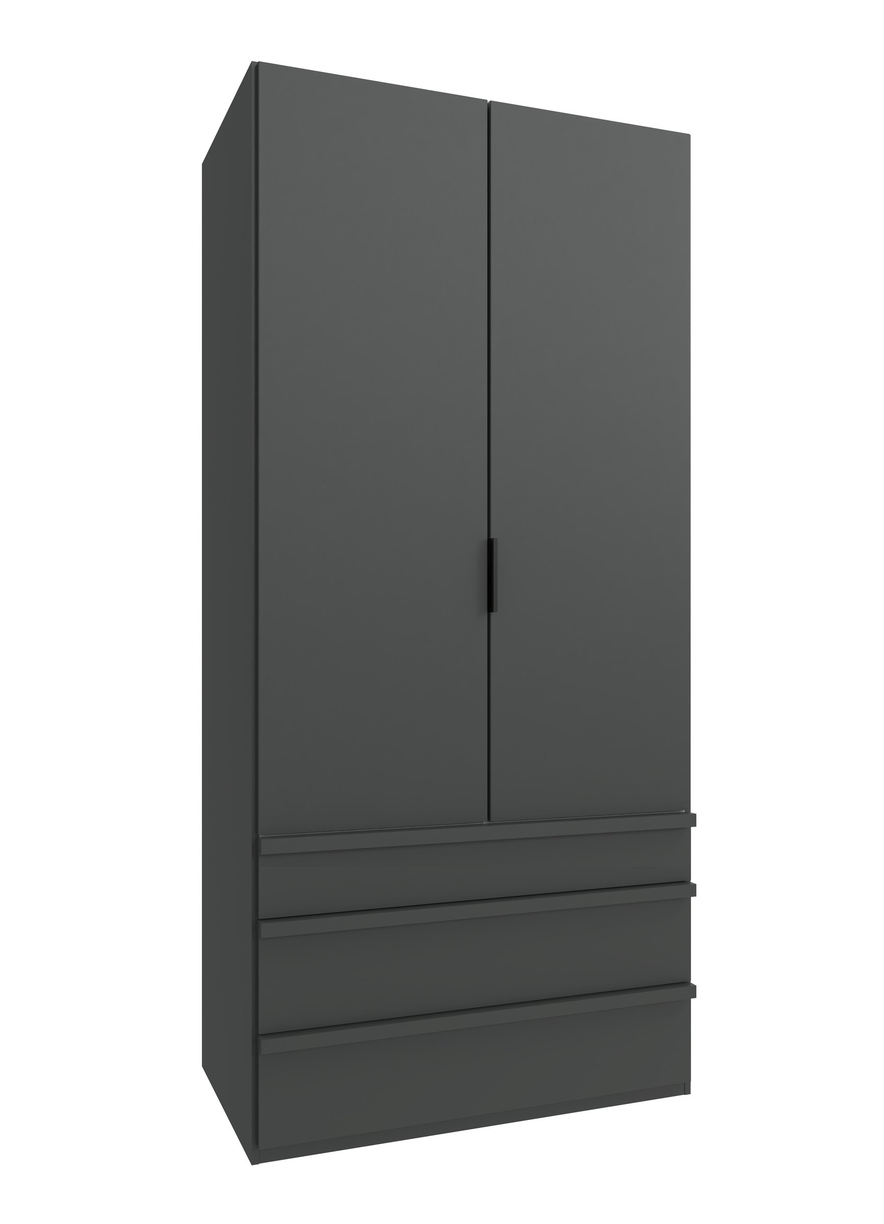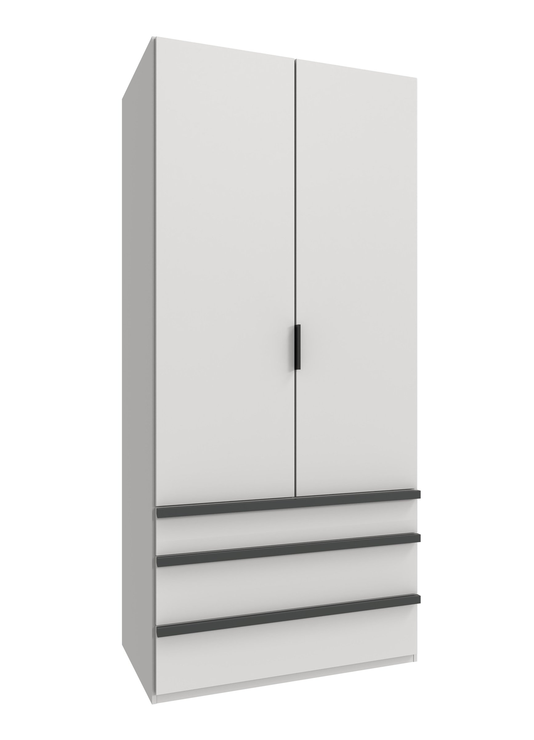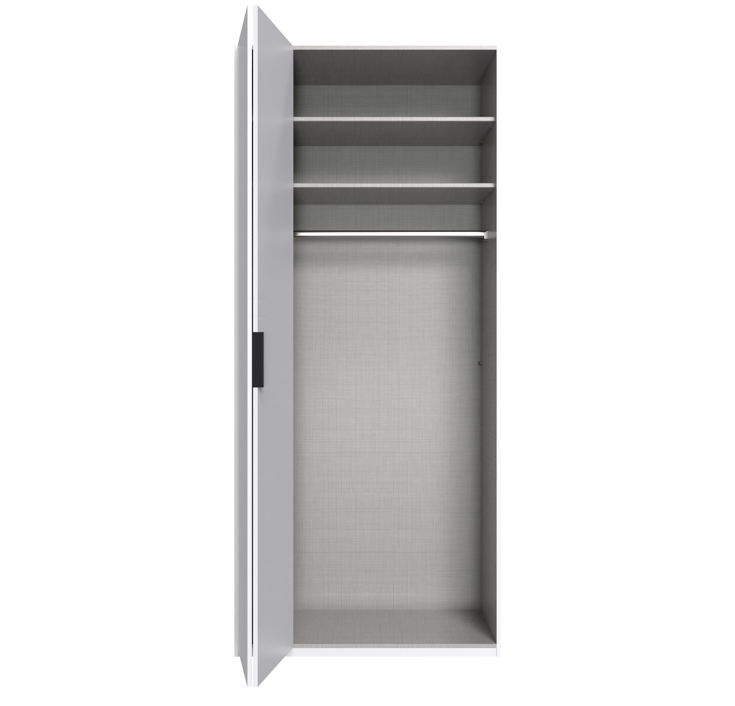 Im Innenraum überzeugt der OXFORD Schrank mit einer funktionalen Aufteilung: Drei Einlegeböden mit jeweils 96 cm Breite eignen sich ideal für gefaltete Wäsche, Boxen oder Bettwäsche, während drei Kleiderstangen reichlich Platz für hängende Kleidung wie Hemden, Blusen, Hosen oder Kleider schaffen. So bleibt Ihre Garderobe gut strukturiert und jederzeit griffbereit.