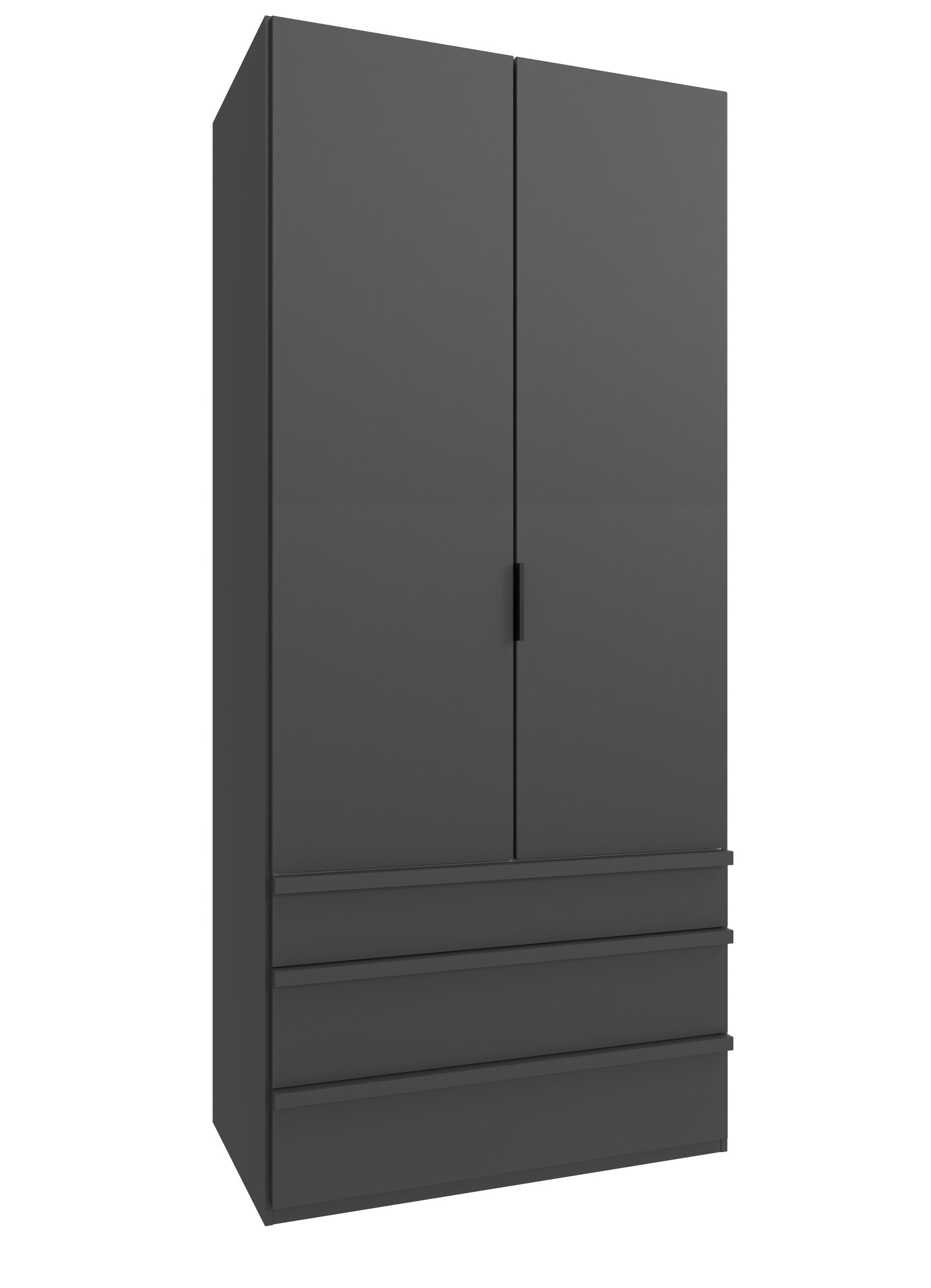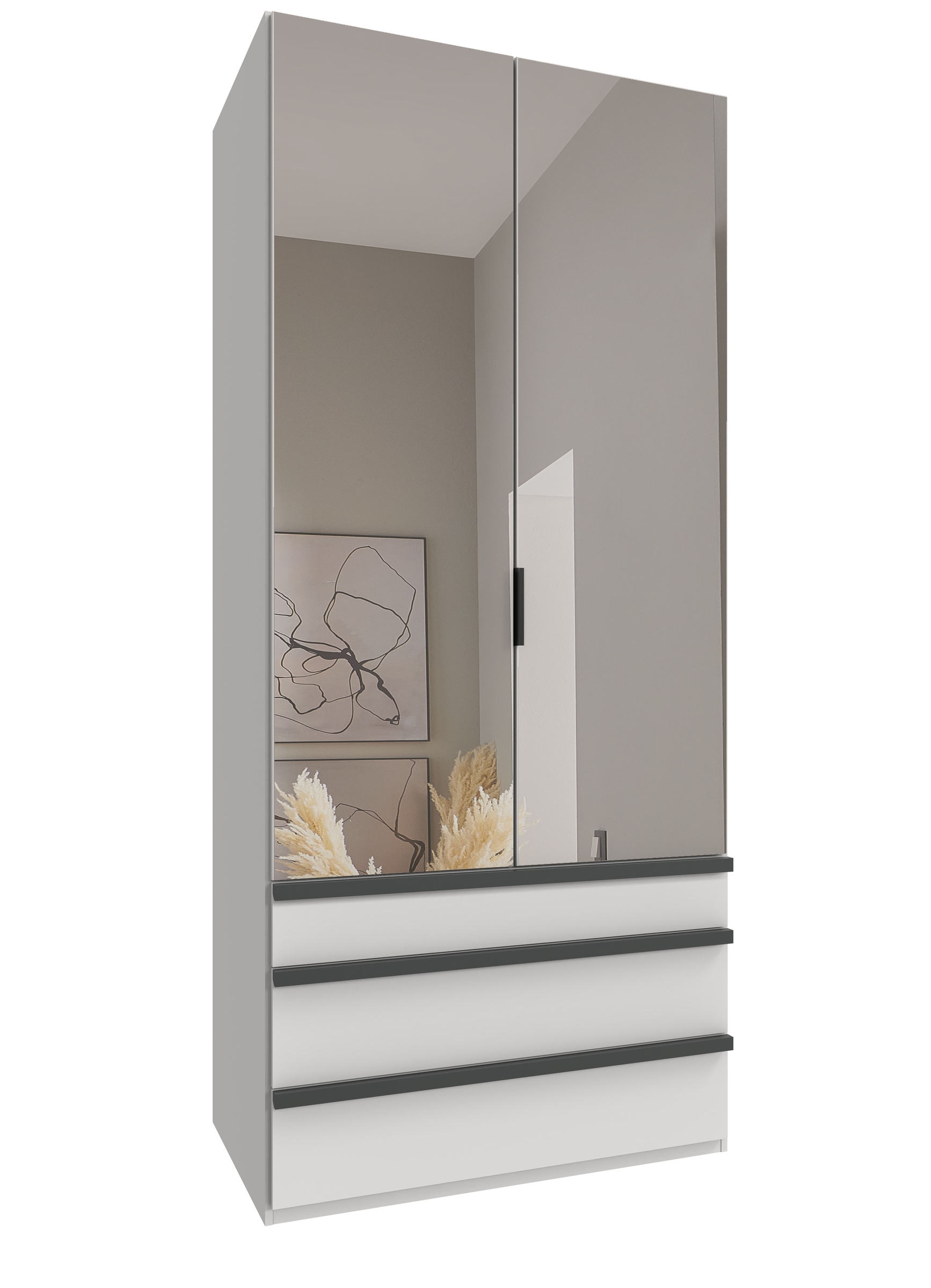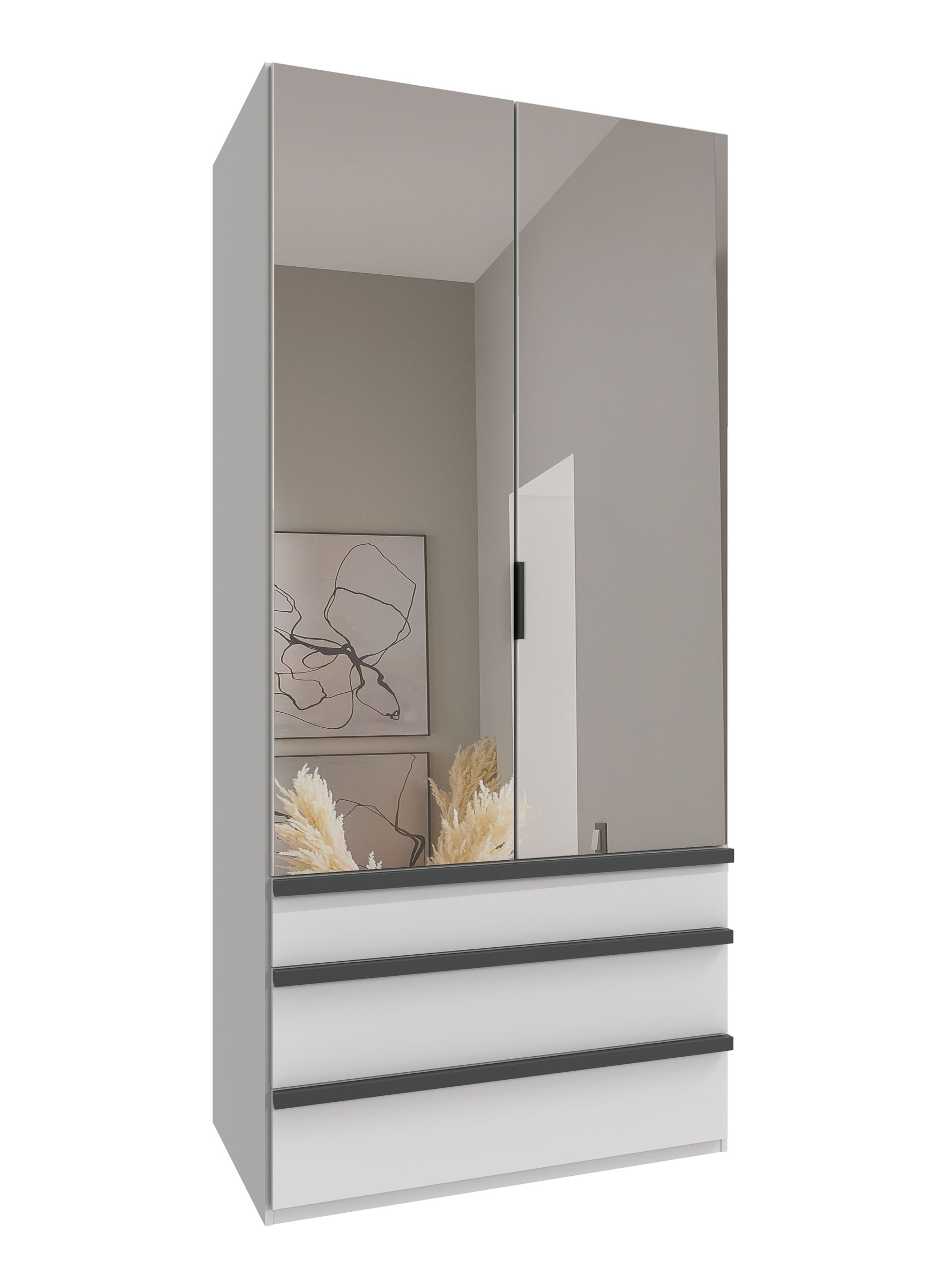 Im Innenraum überzeugt der OXFORD Schrank mit einer funktionalen Aufteilung: Drei Einlegeböden mit jeweils 96 cm Breite eignen sich ideal für gefaltete Wäsche, Boxen oder Bettwäsche, während drei Kleiderstangen reichlich Platz für hängende Kleidung wie Hemden, Blusen, Hosen oder Kleider schaffen. So bleibt Ihre Garderobe gut strukturiert und jederzeit griffbereit.