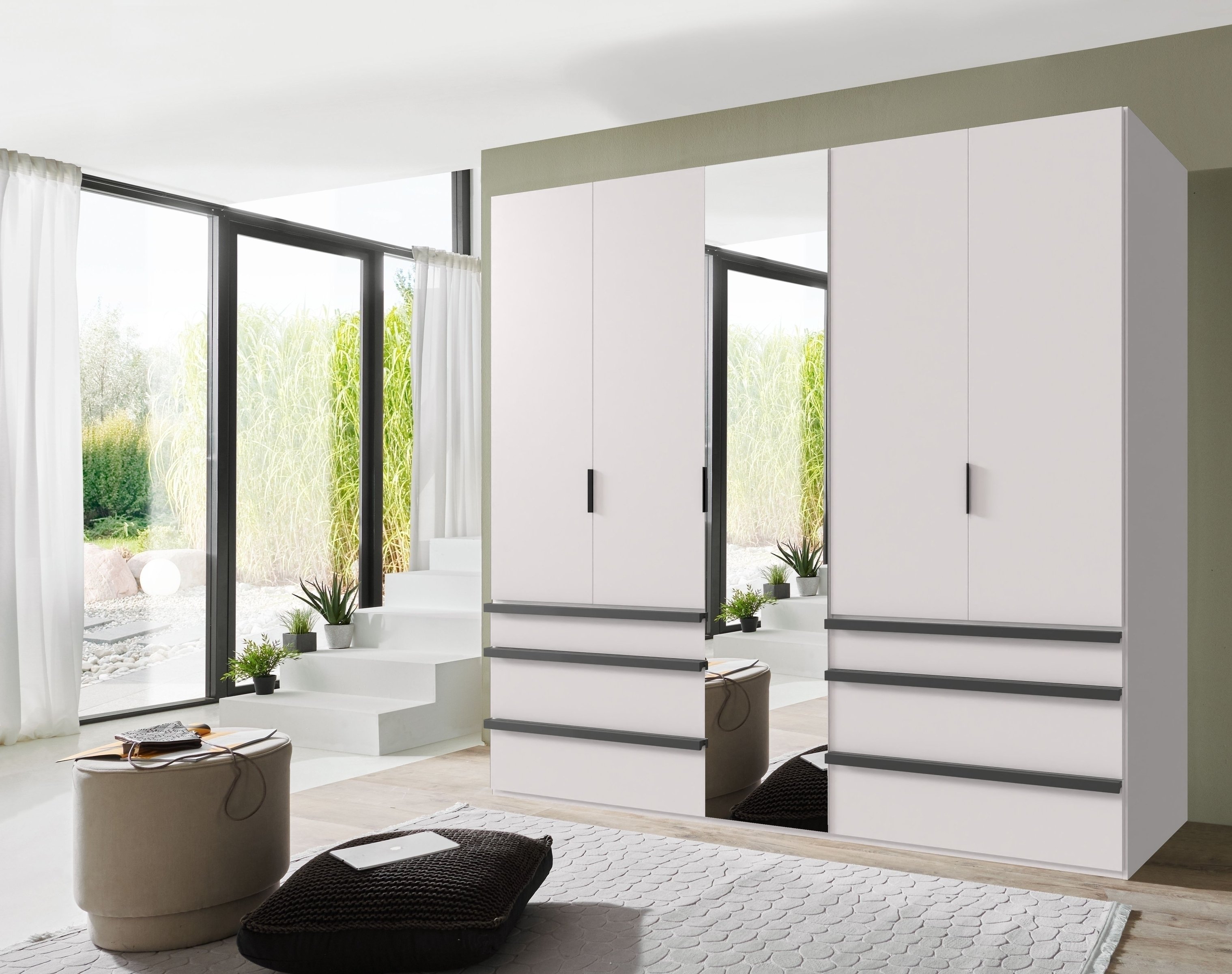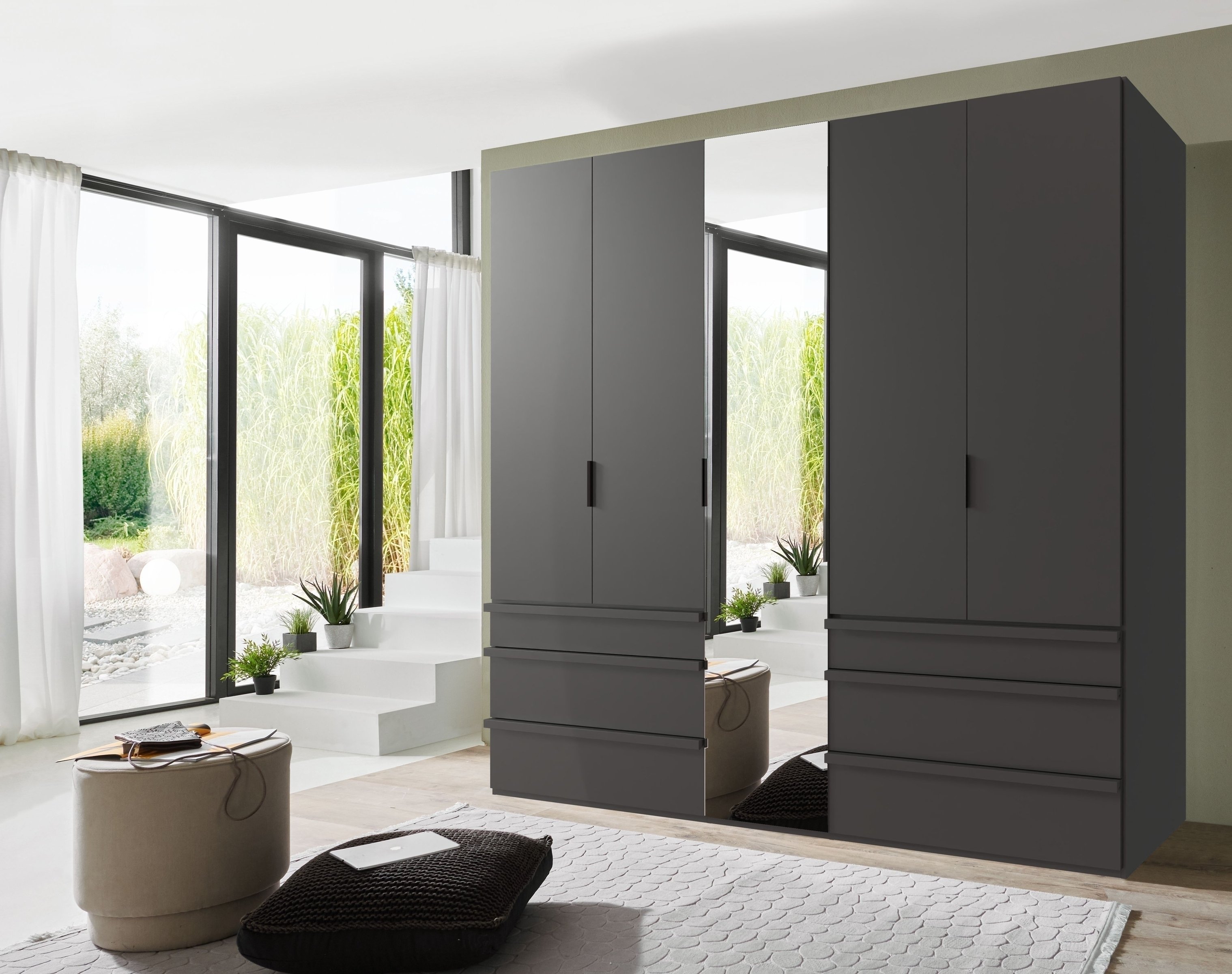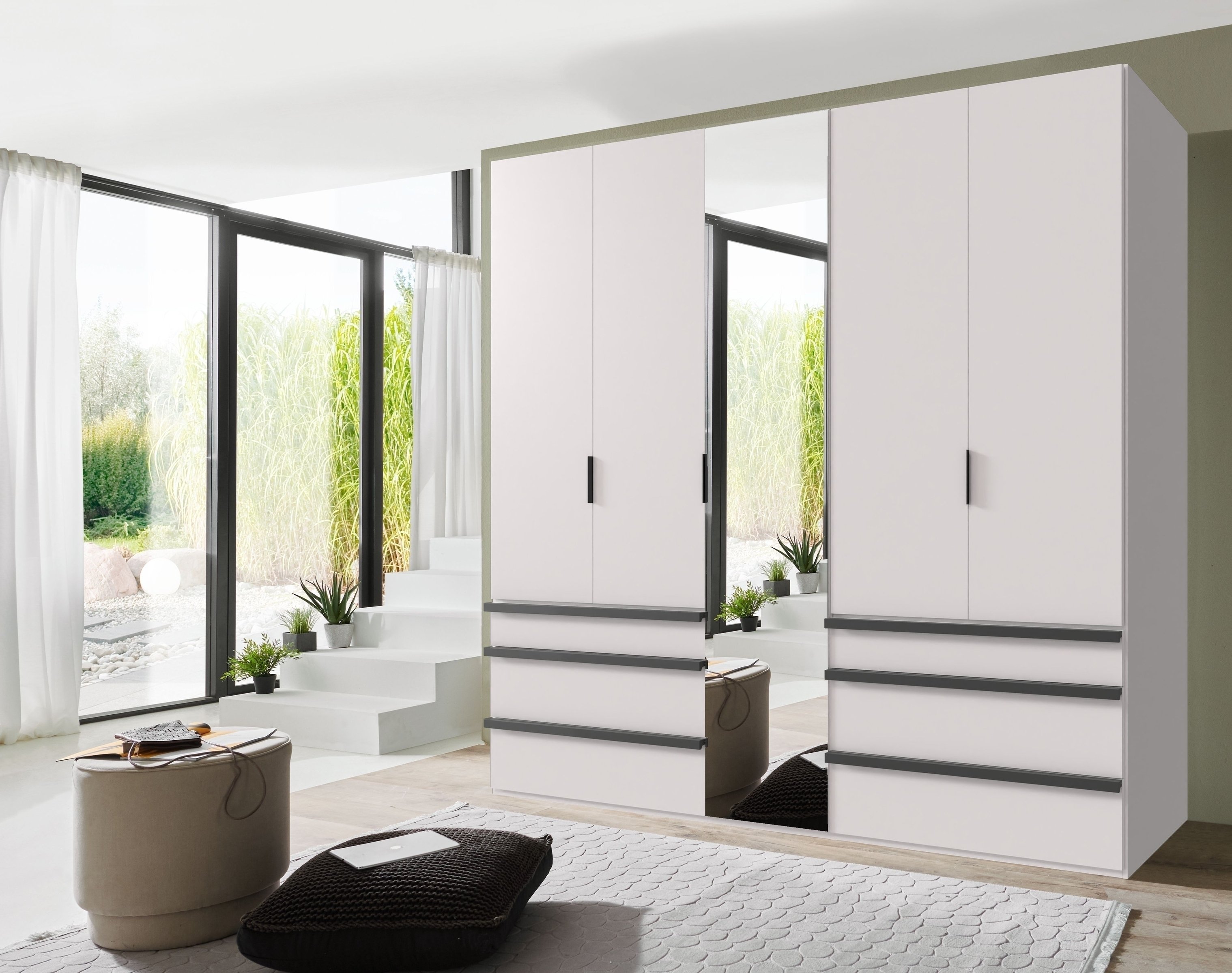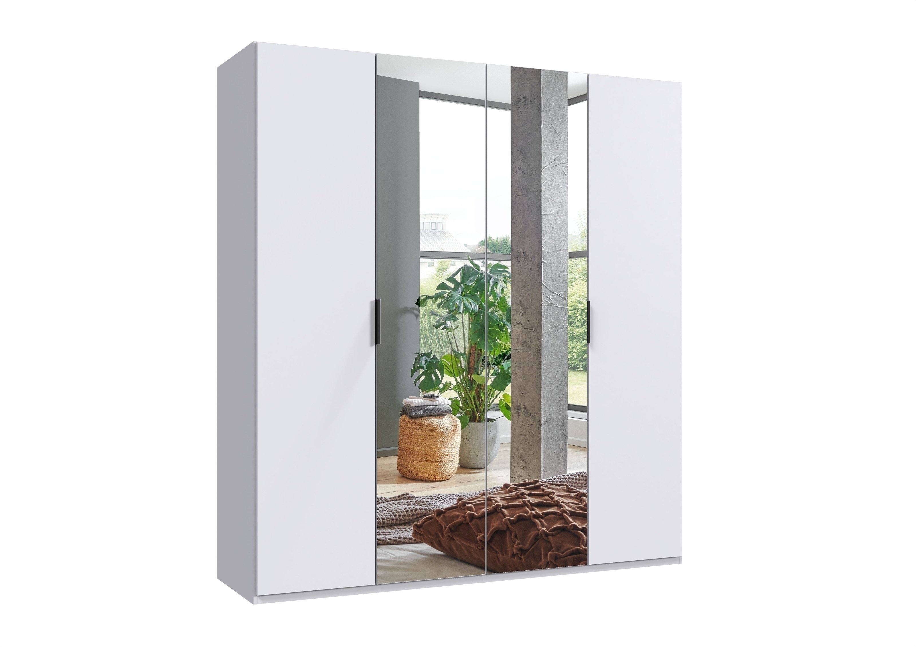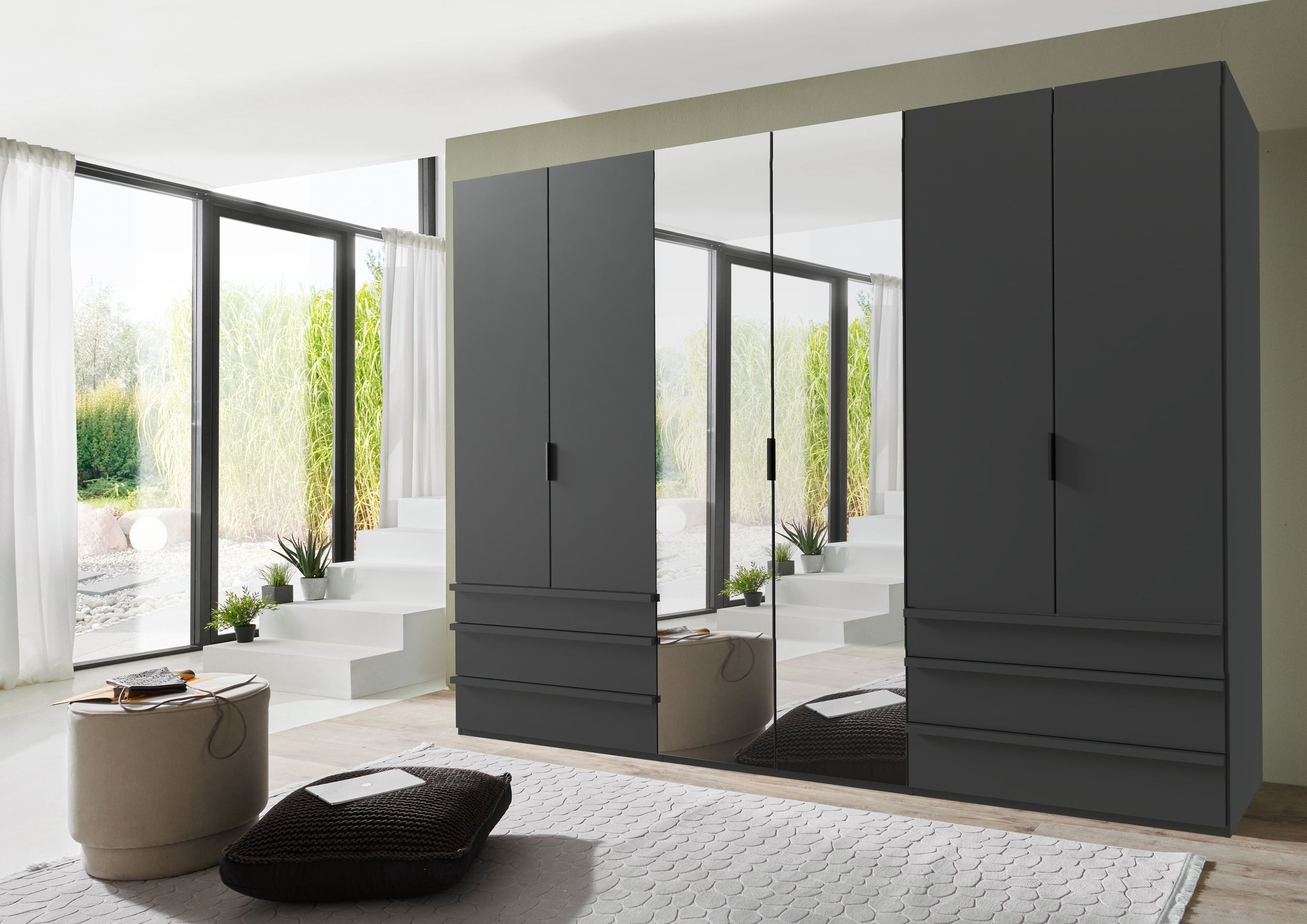 Die sechs Falttüren – mit zwei Türen links und einer rechts angeschlagen je Türenpaar – lassen sich komfortabel öffnen und sind besonders praktisch, wenn vor dem Schrank nur begrenzt Stellfläche zur Verfügung steht. So greifen Sie schnell auf Ihre Kleidung zu, während die Falttürtechnik den Bewegungsraum im Schlafzimmer schont.