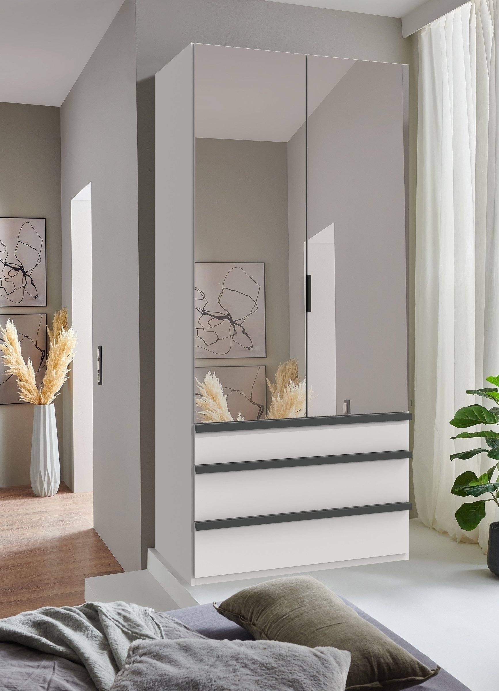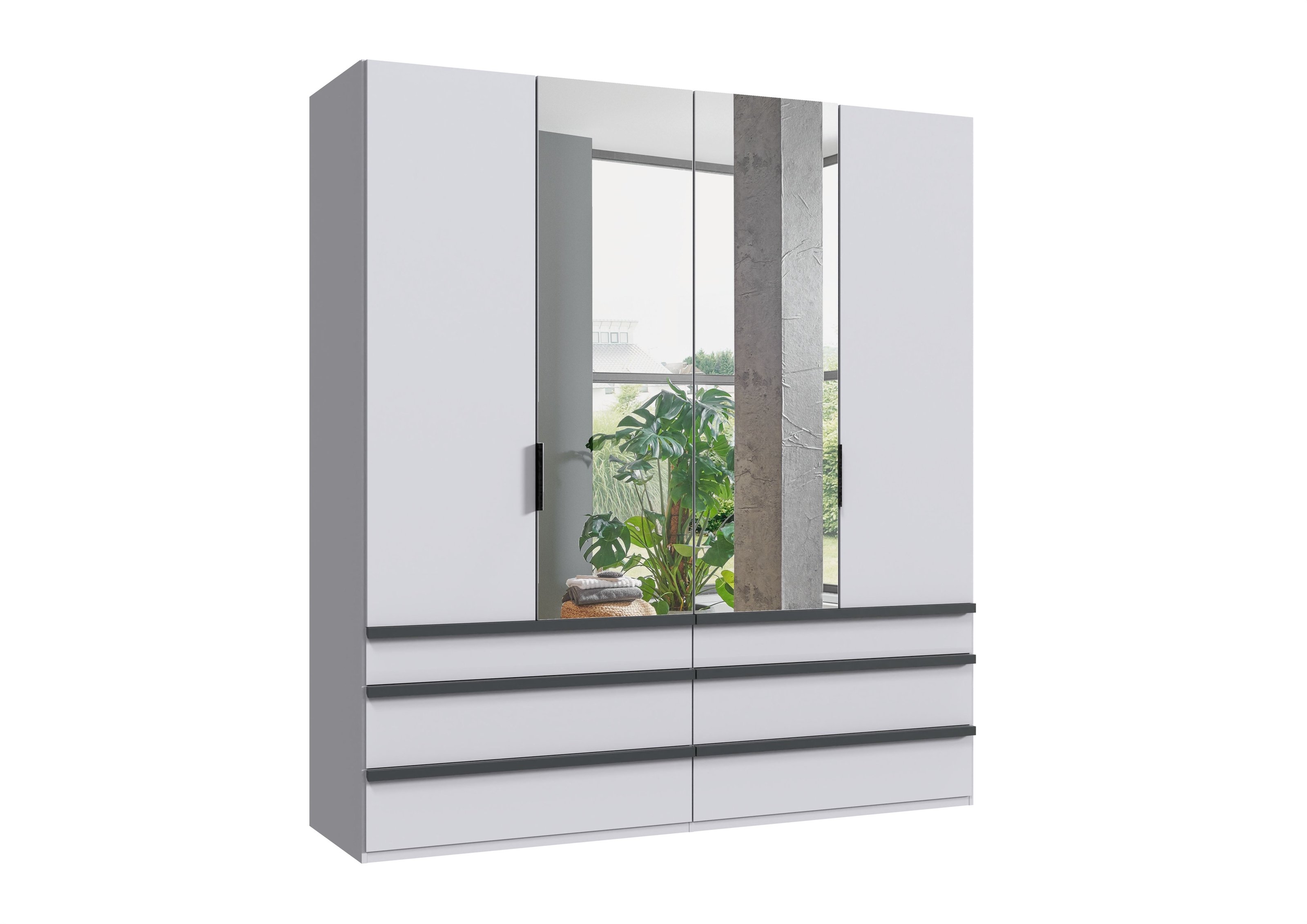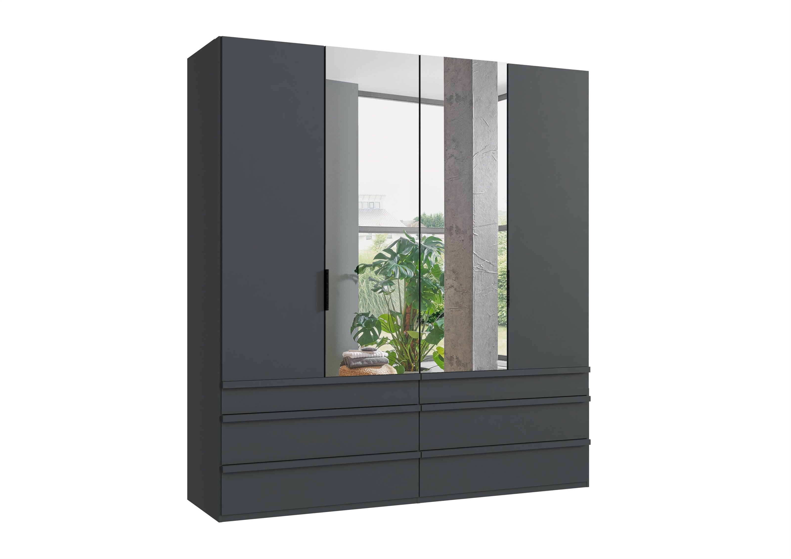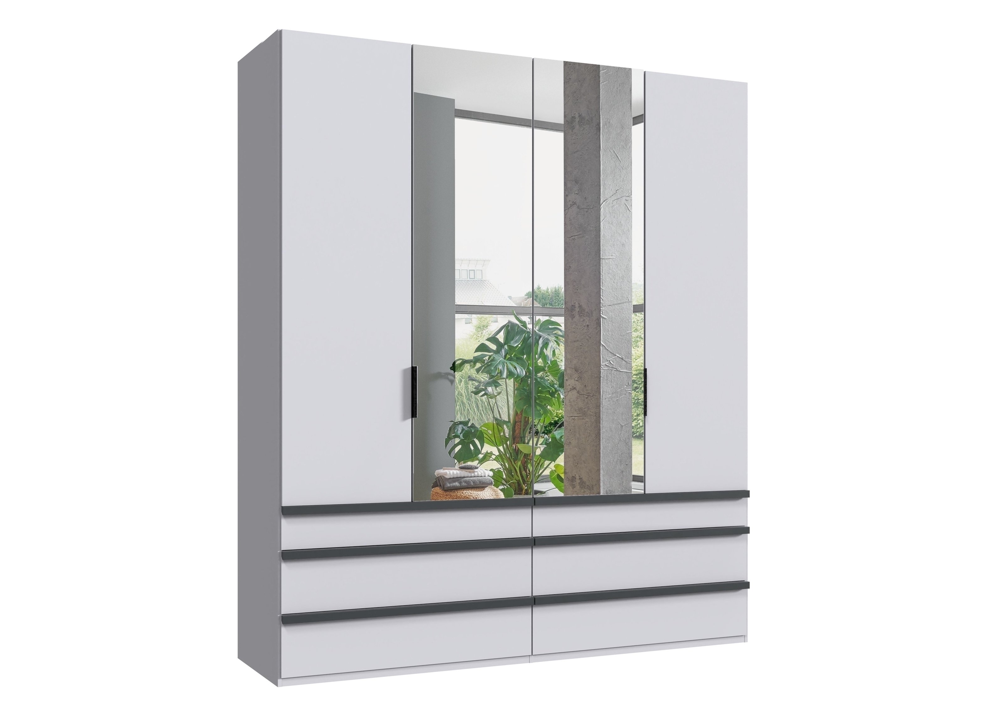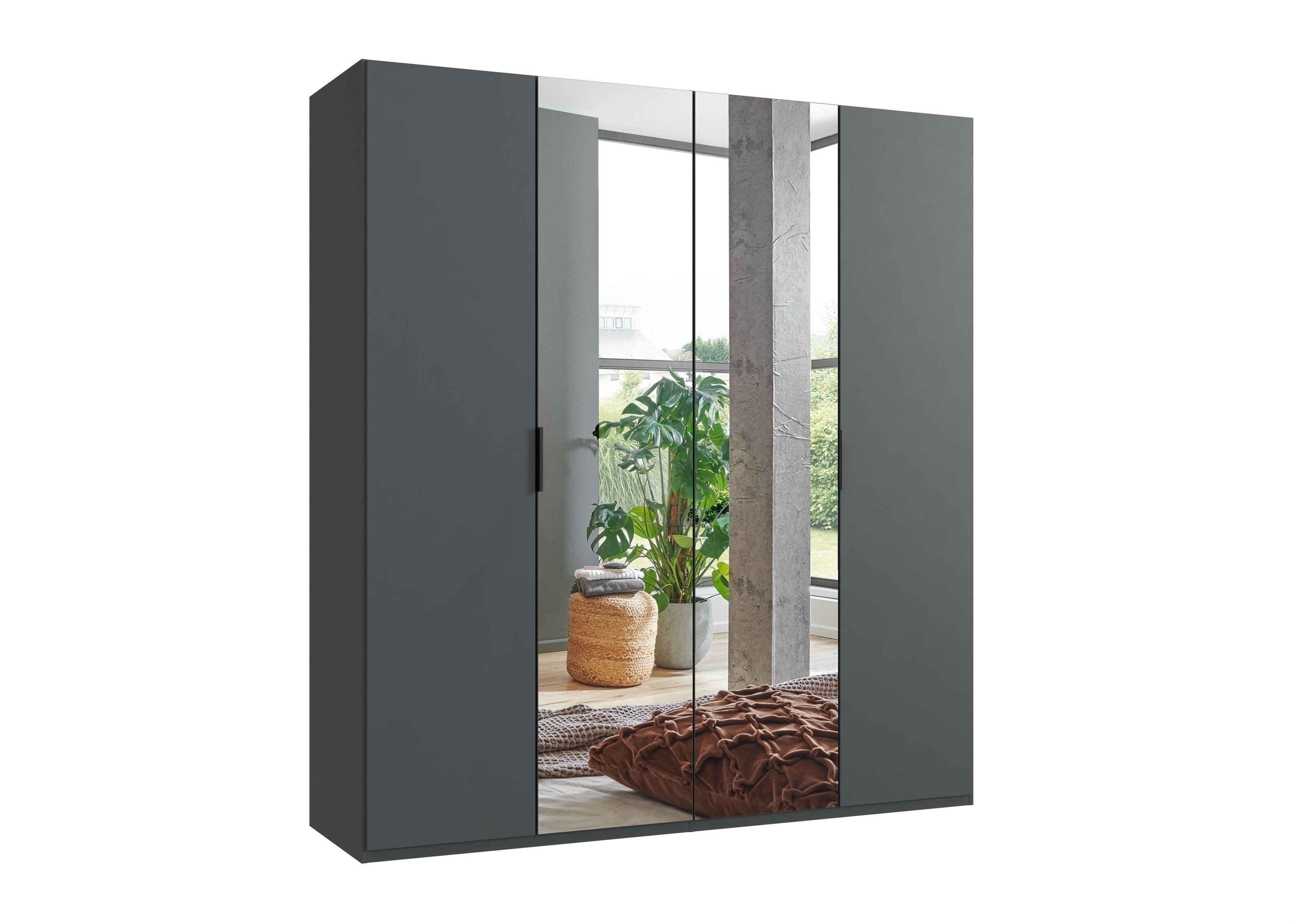 Die sechs Falttüren – mit zwei Türen links und einer rechts angeschlagen je Türenpaar – lassen sich komfortabel öffnen und sind besonders praktisch, wenn vor dem Schrank nur begrenzt Stellfläche zur Verfügung steht. So greifen Sie schnell auf Ihre Kleidung zu, während die Falttürtechnik den Bewegungsraum im Schlafzimmer schont.