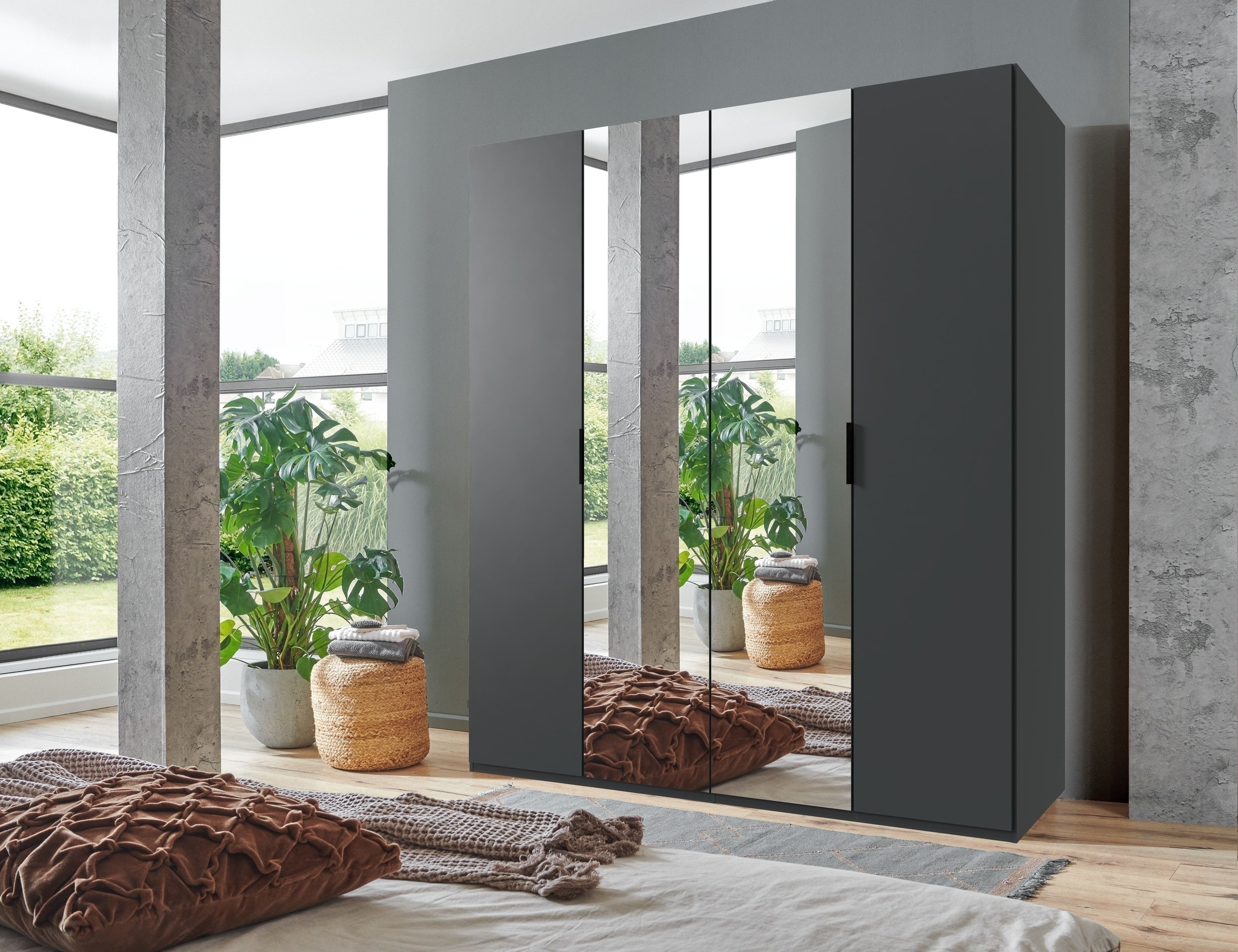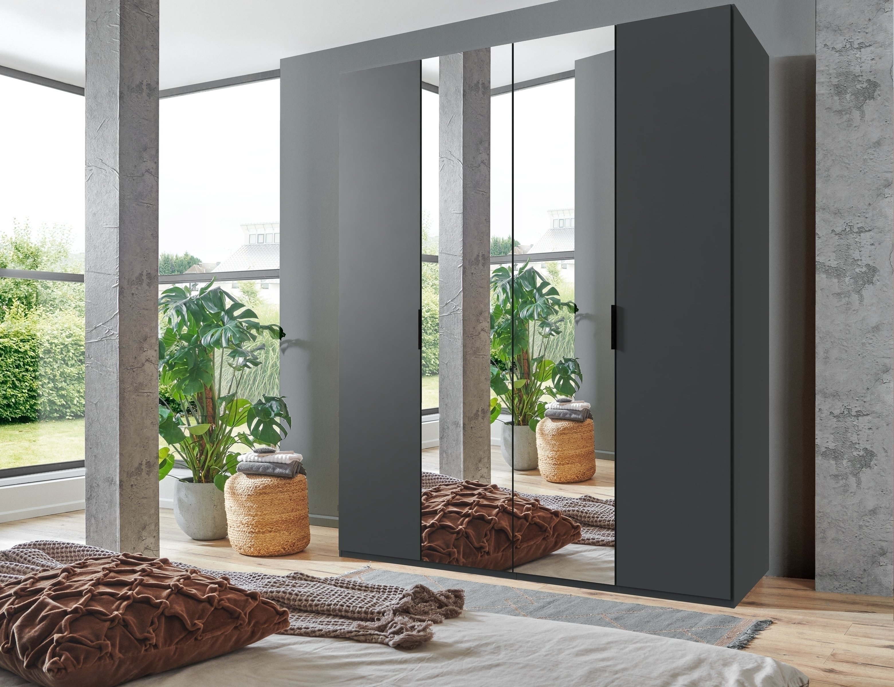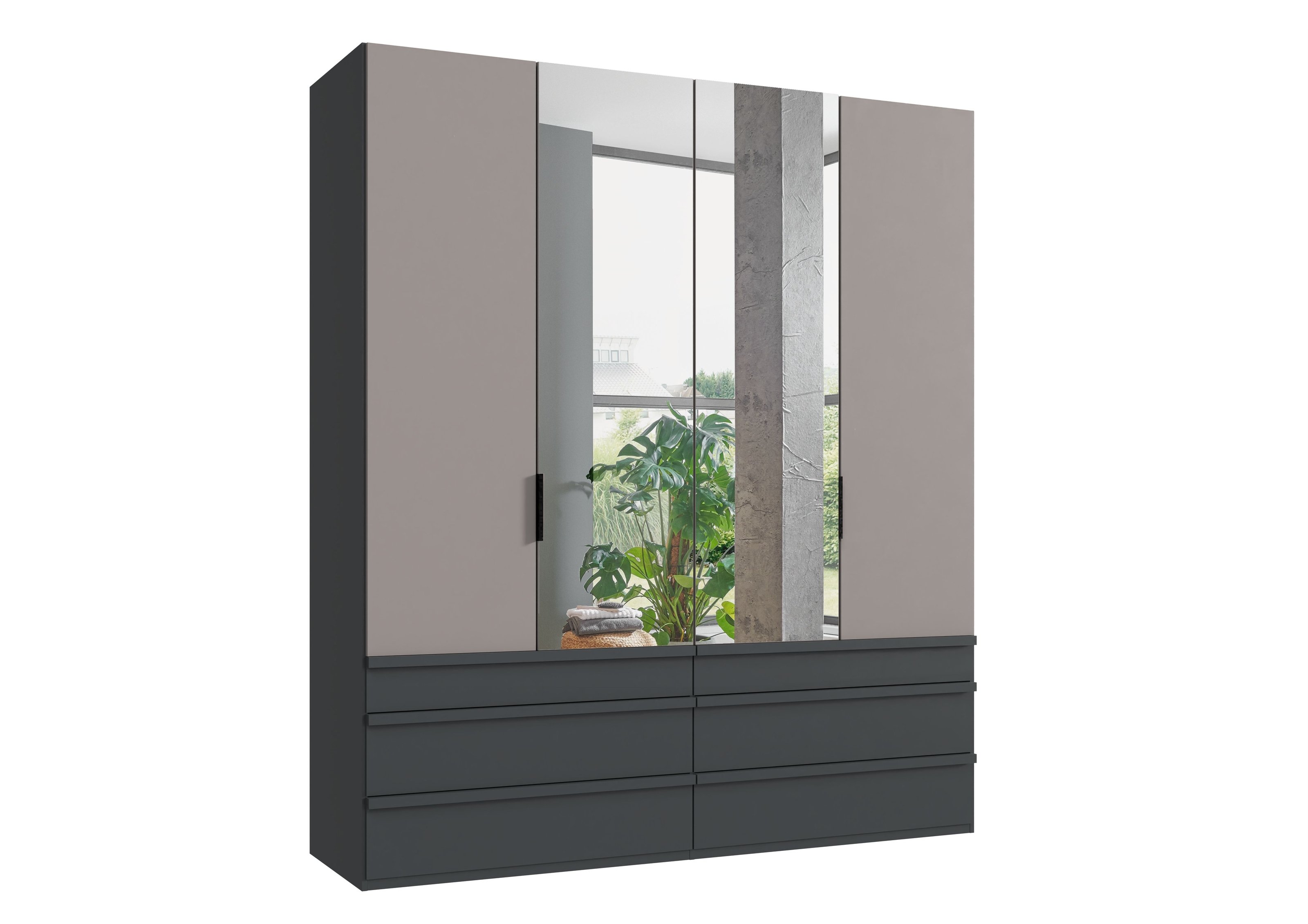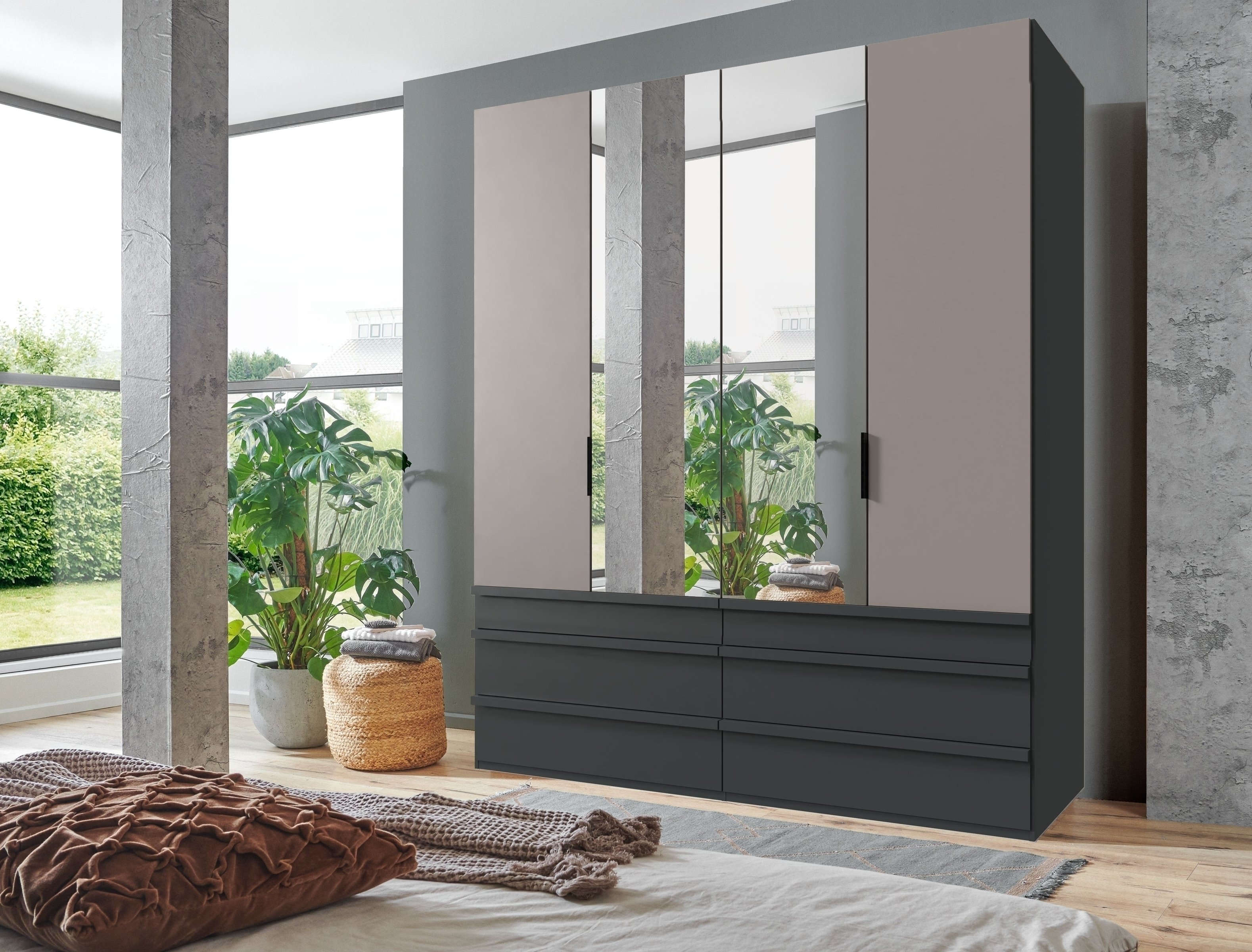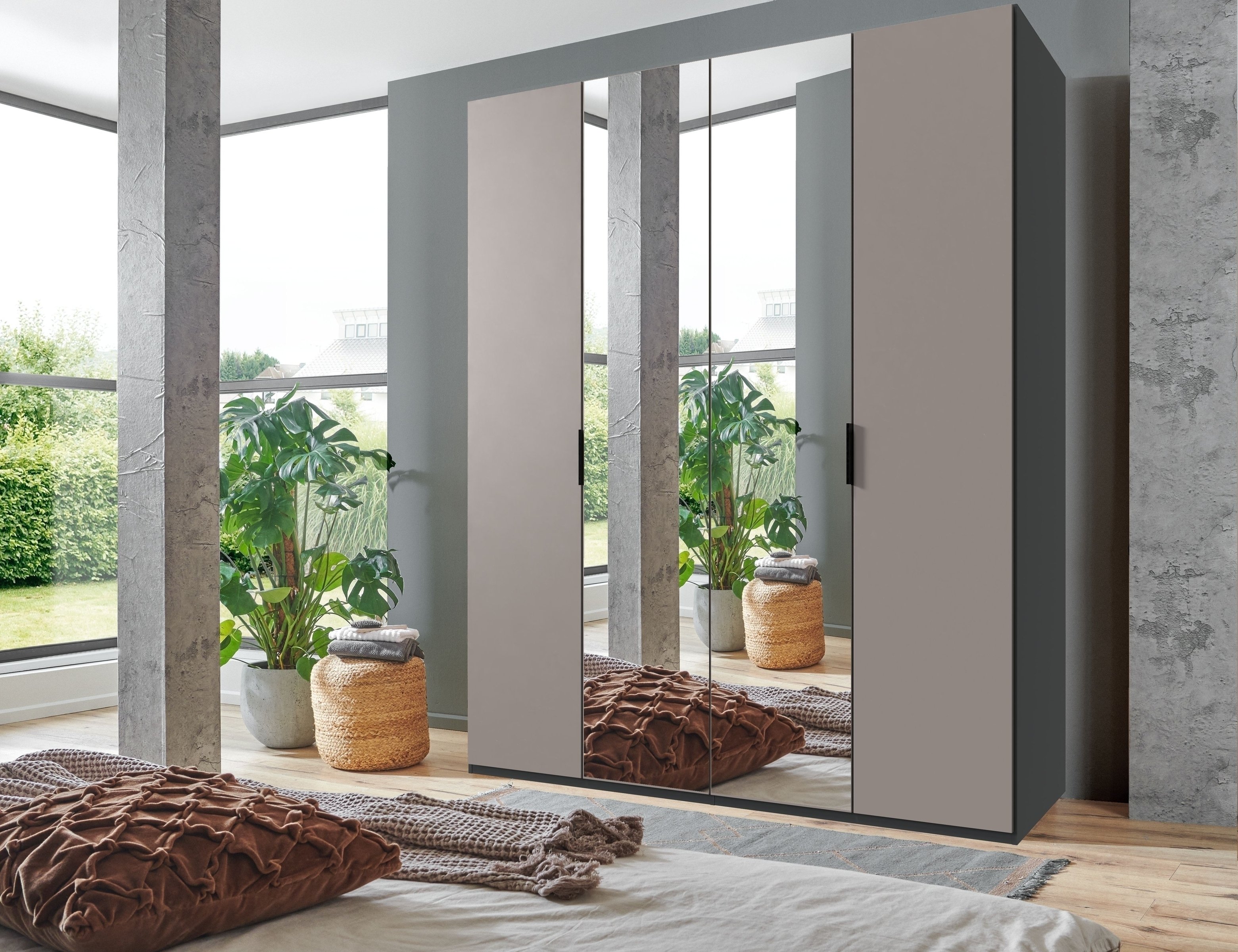 ✔Moderner Look durch die Kombination von SAHARAGRAU-Türen und GRAPHIT-Korpus für ein zeitgemäßes Schlafzimmerambiente.