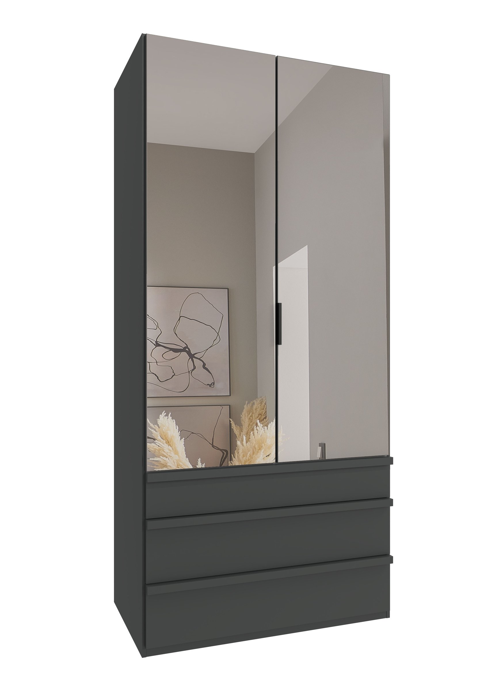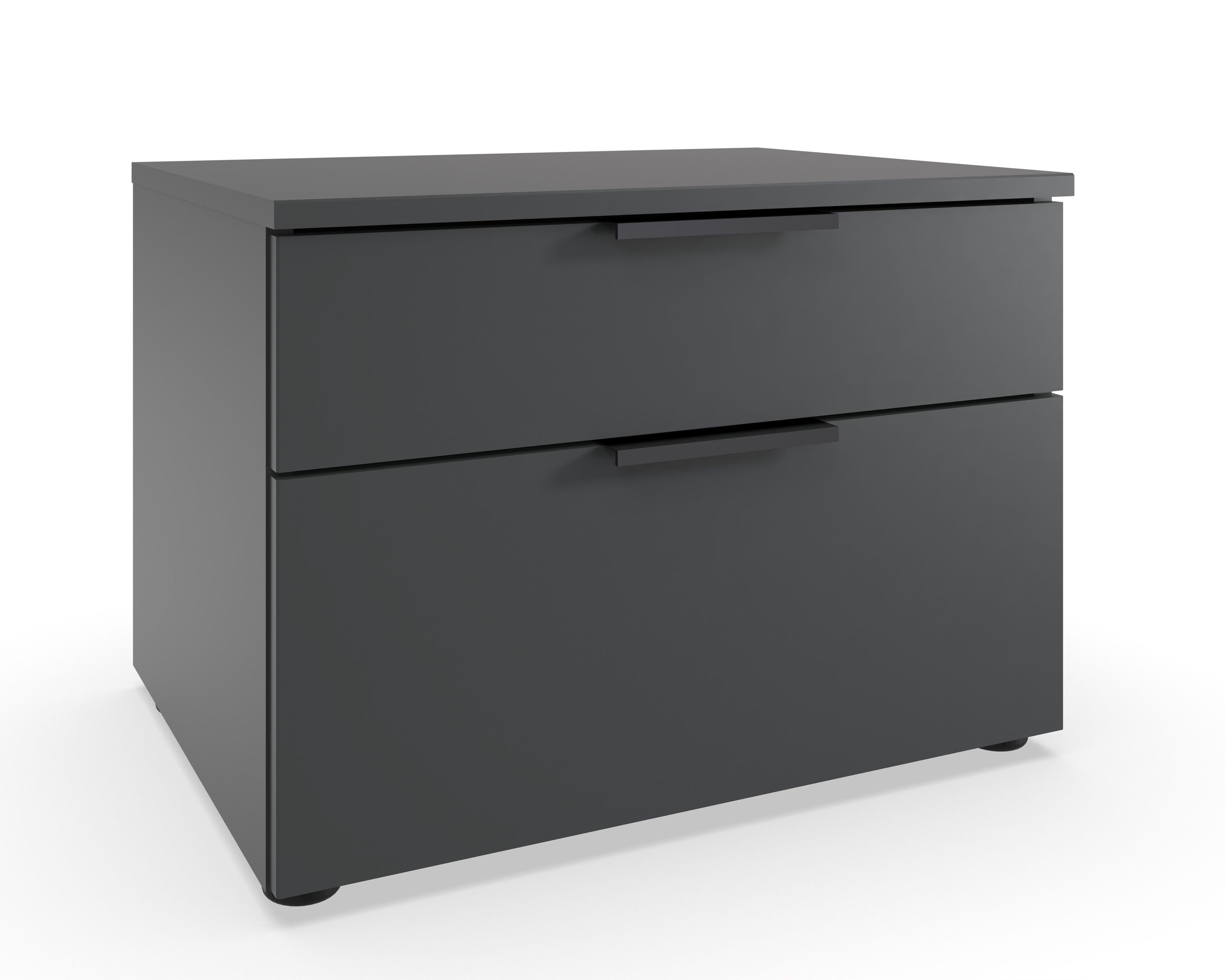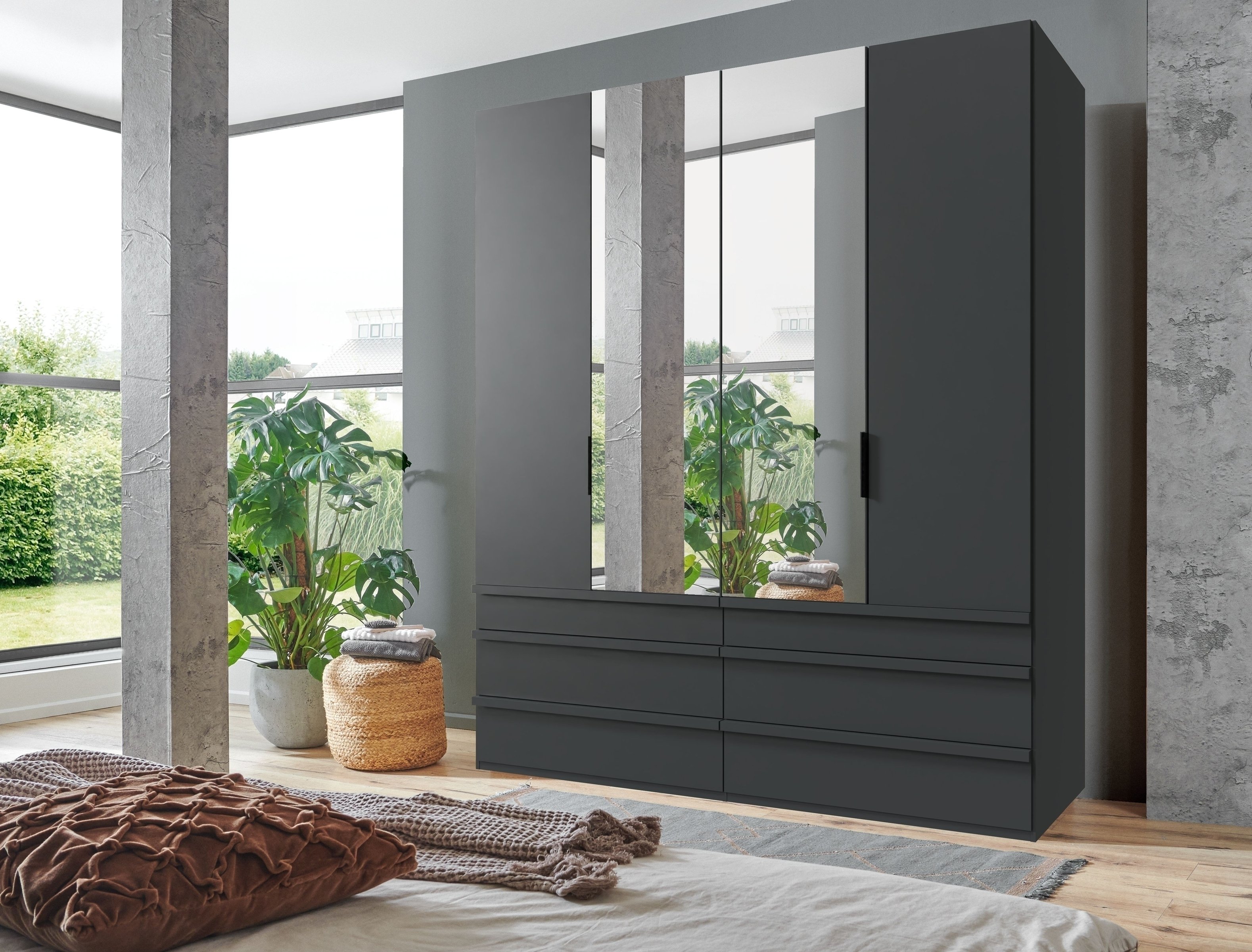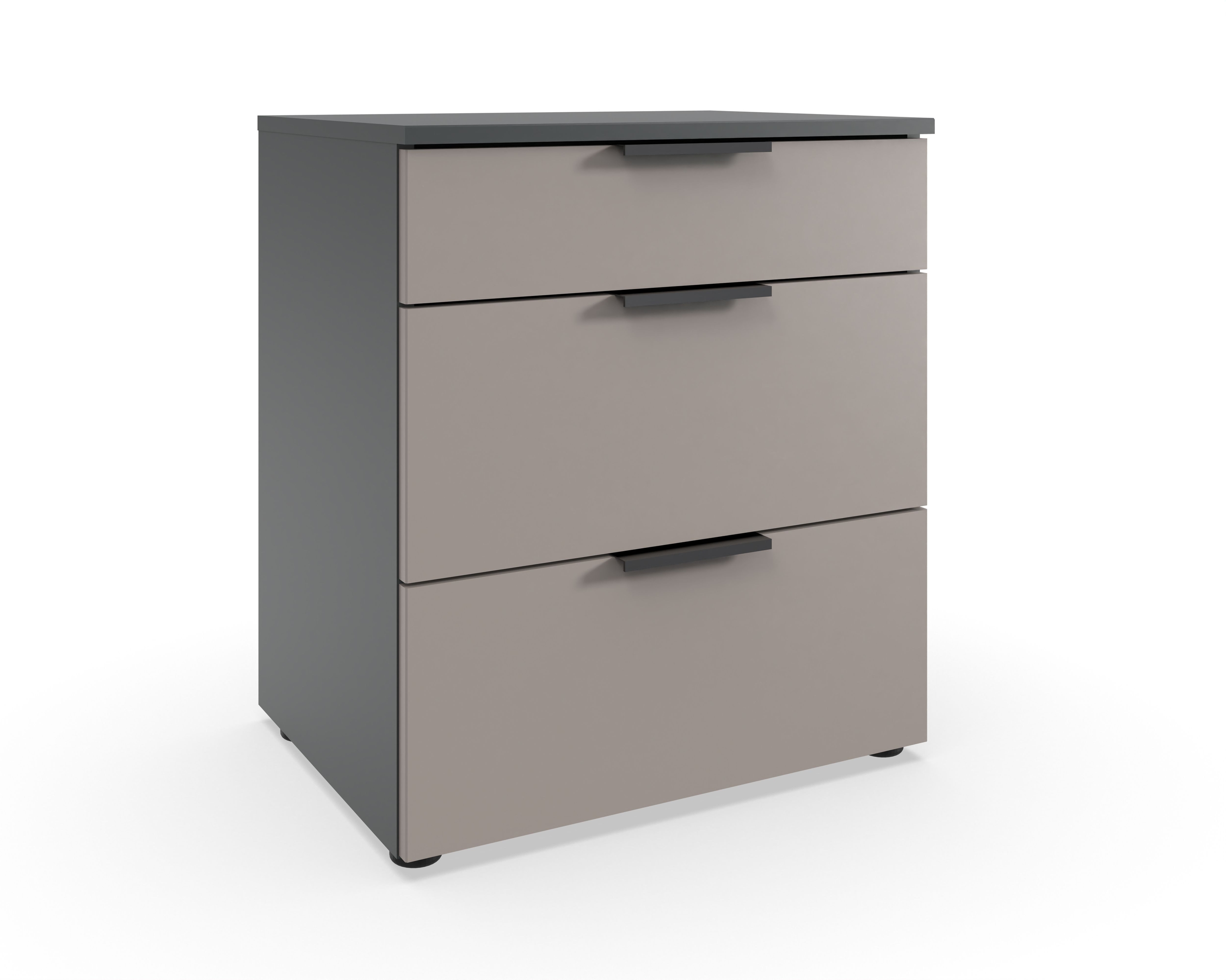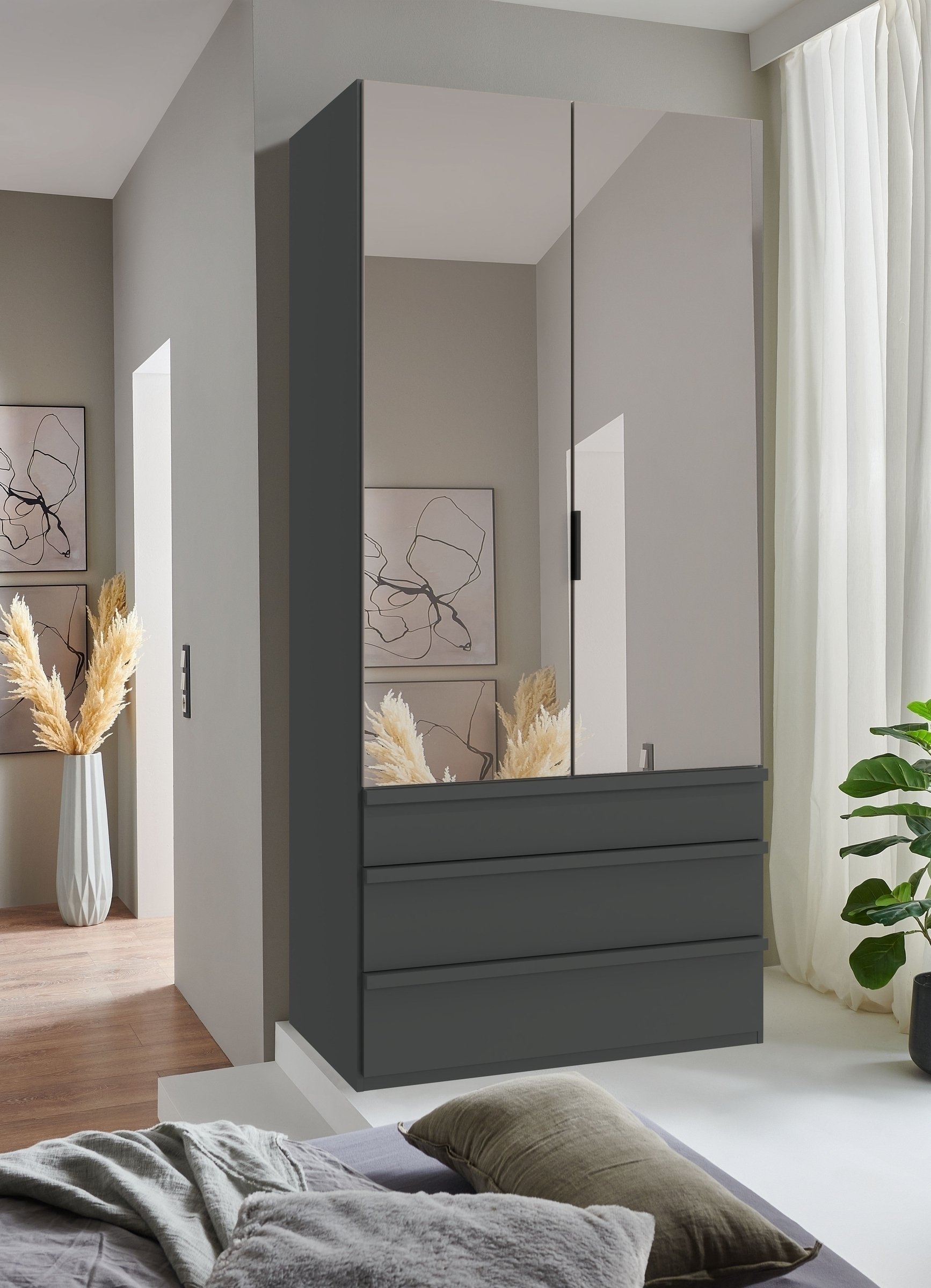 ✔Moderner Look durch die Kombination von SAHARAGRAU-Türen und GRAPHIT-Korpus für ein zeitgemäßes Schlafzimmerambiente.