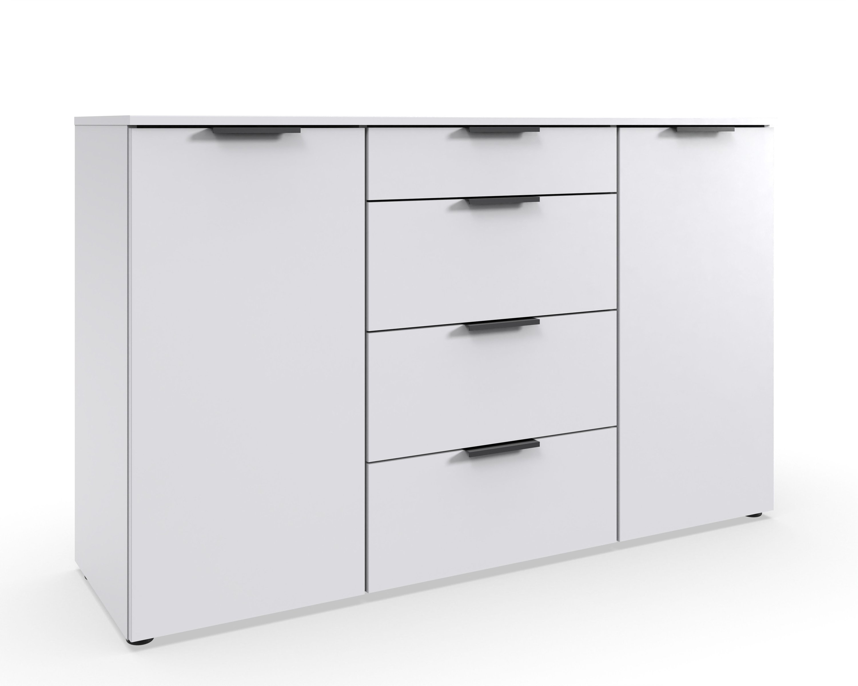 [BulletPoints] => Maße: 135/84/41 cm (B/H/T) machen die Kommode OXFORD ideal für Schlafzimmer, bieten großzügigen Stauraum und sorgen für eine platzsparende, praktische Einrichtungslösung.;Vier geräumige Schubladen ermöglichen übersichtliche Aufbewahrung von Kleidung, Unterwäsche, Accessoires oder persönlichen Gegenständen für optimal organisierten Stauraum.;Zwei Türen mit jeweils zwei Einlegeböden bieten zusätzlichen Stauraum für größere Kleidungsstücke, Decken oder dekorative Objekte, flexibel und gut strukturiert.;Hochwertige Spanplatte und weiße Oberflächen garantieren Stabilität, Langlebigkeit und pflegeleichte Reinigung und passen perfekt zu modernen Einrichtungskonzepten und Wohnstilen.;Lieferzustand: OXFORD wird zerlegt geliefert, inklusive Montageanleitung, Lieferung ohne Dekoration und Inhalt, einfacher Transport und unkomplizierter Aufbau für den Nutzer.