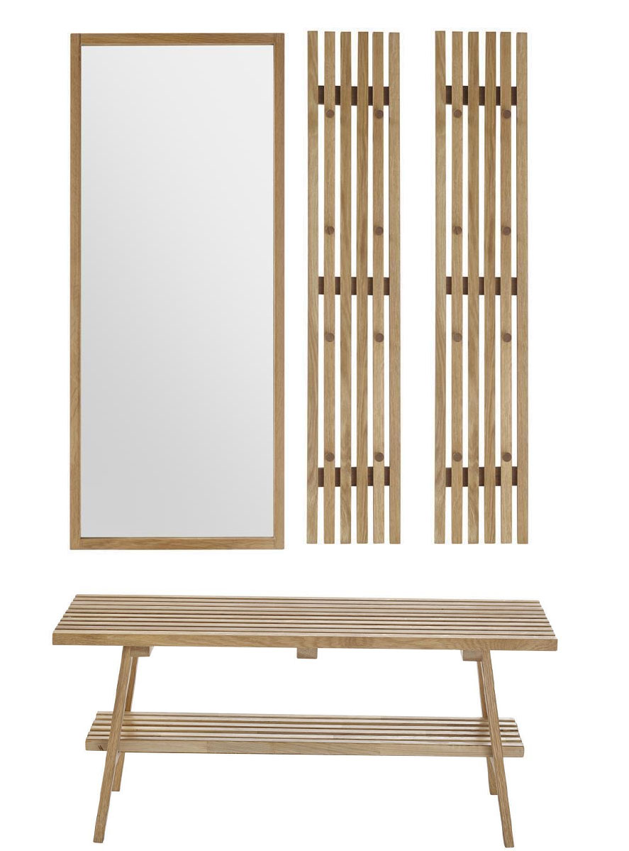 1 Garderobenbank, 2 Garderobenpaneelen, 1 Spiegel |