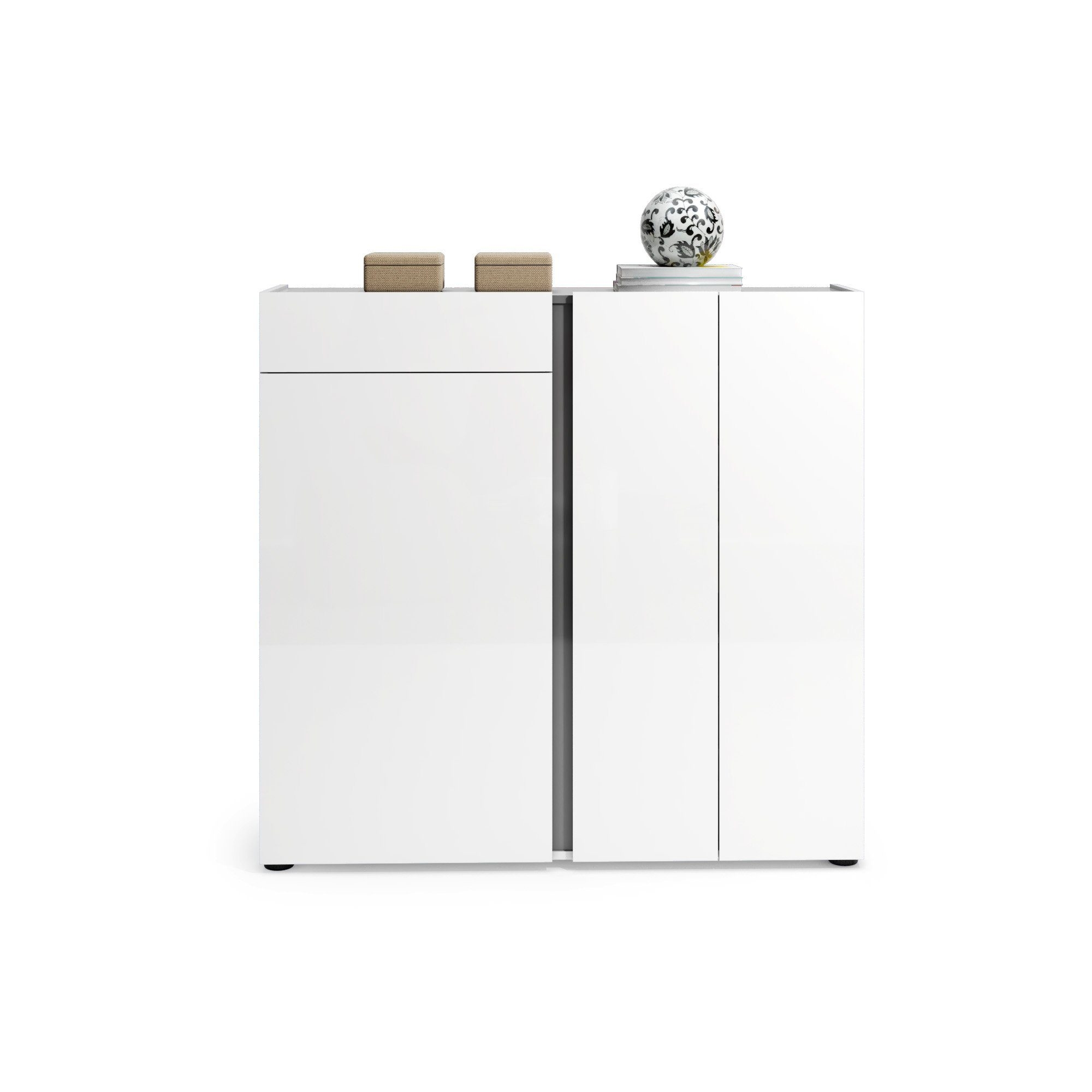 [Bullet-Point 3] => Die Kombination aus hochglänzendem Weiß und anthrazitfarbenen Akzenten verleiht dem Sideboard eine moderne Eleganz, die sich in jedes Raumkonzept einfügt