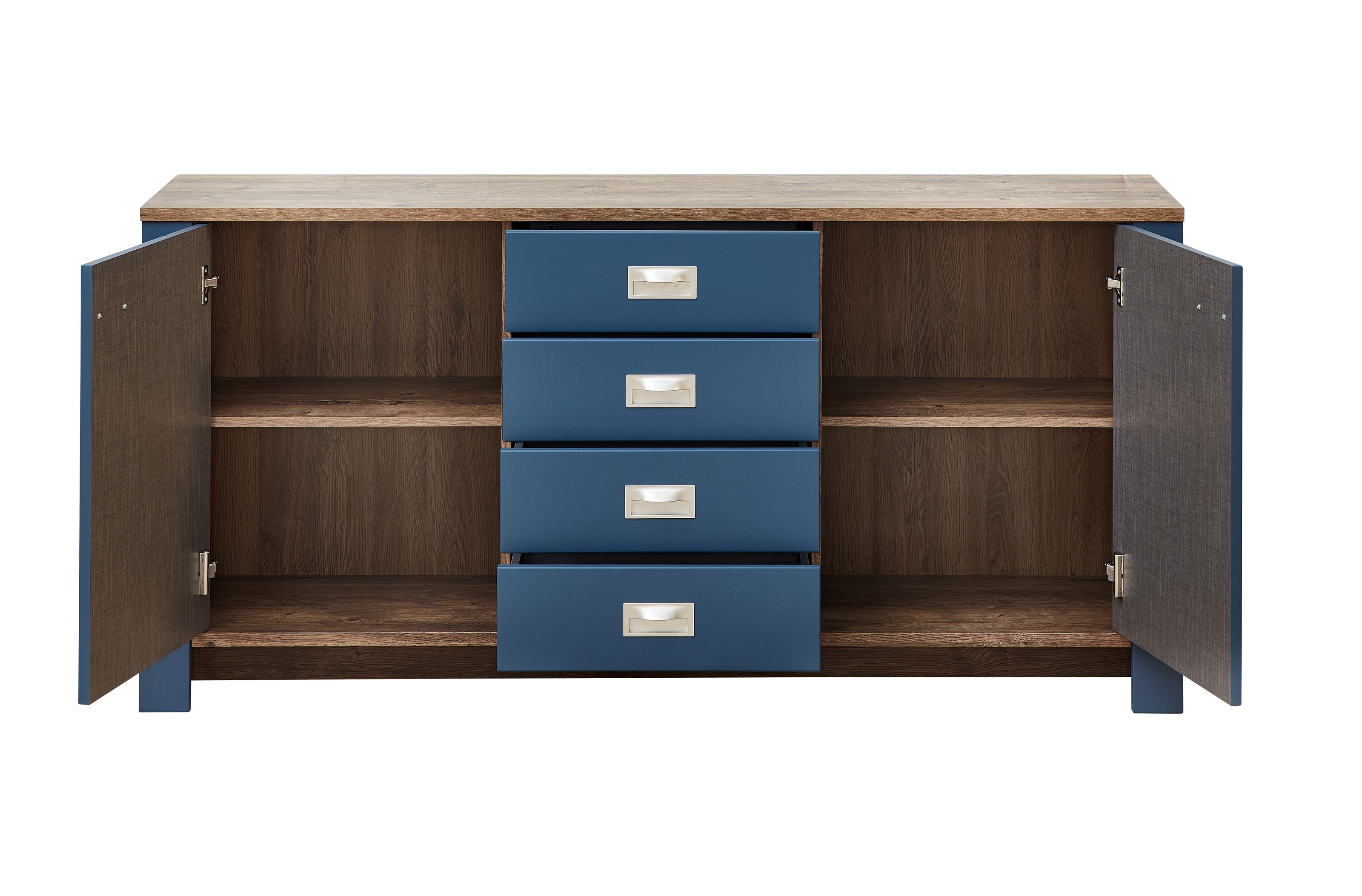 Hochwertige Materialien wie MDF, Spanplatte und Holzwerkstoff E1 mit folierter, tiefgezogener Oberfläche sorgen für eine pflegeleichte, alltagstaugliche Lösung. Dank der mitgelieferten, detaillierten Aufbauanleitung lässt sich das Set komfortabel montieren und flexibel mit weiteren Möbeln in Parisian Blue oder Haveleiche Cognac kombinieren.
