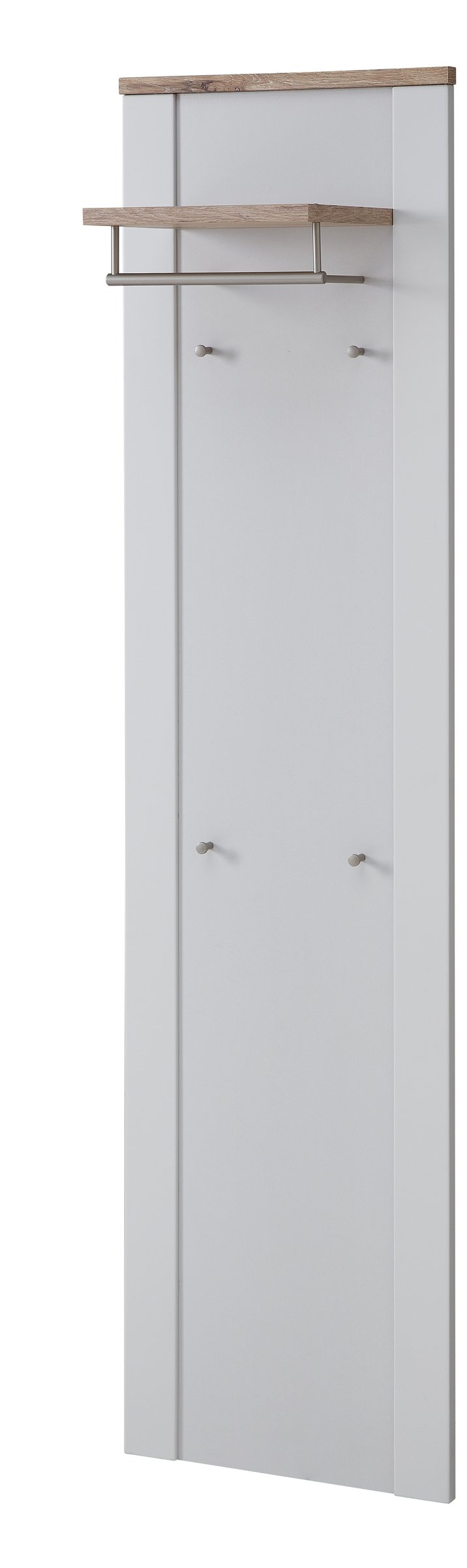✔Garderobenpaneel mit 4 Haken und Metall-Kleiderstange in Nickel matt, damit Jacken und Taschen griffbereit hängen.