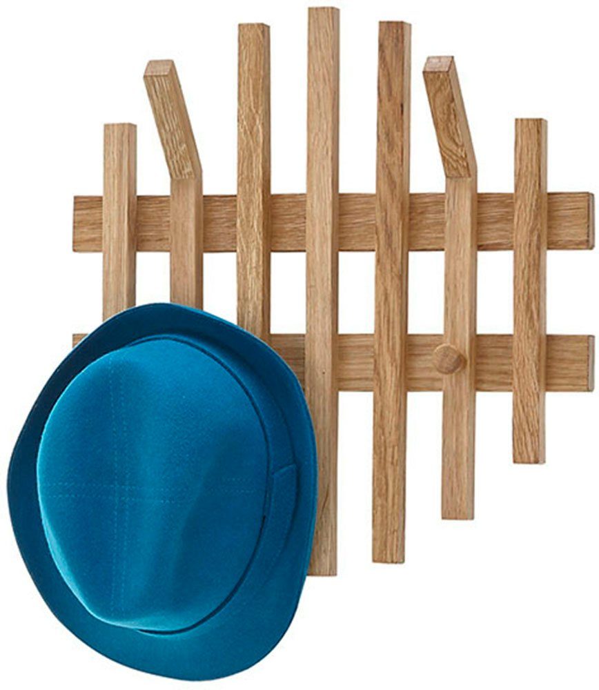 [Wissenswertes] => 4 Haken je bis 2kg belastbar, Lamellen in Eiche Massivholz - 38x40x11cm (BxHxT)