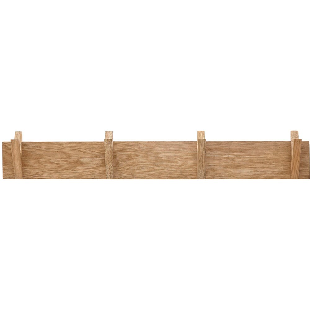 Vier Haken aus massiver Eiche, jeweils bis 2 kg belastbar, tragen Jacken, Taschen und Alltagsutensilien sicher.