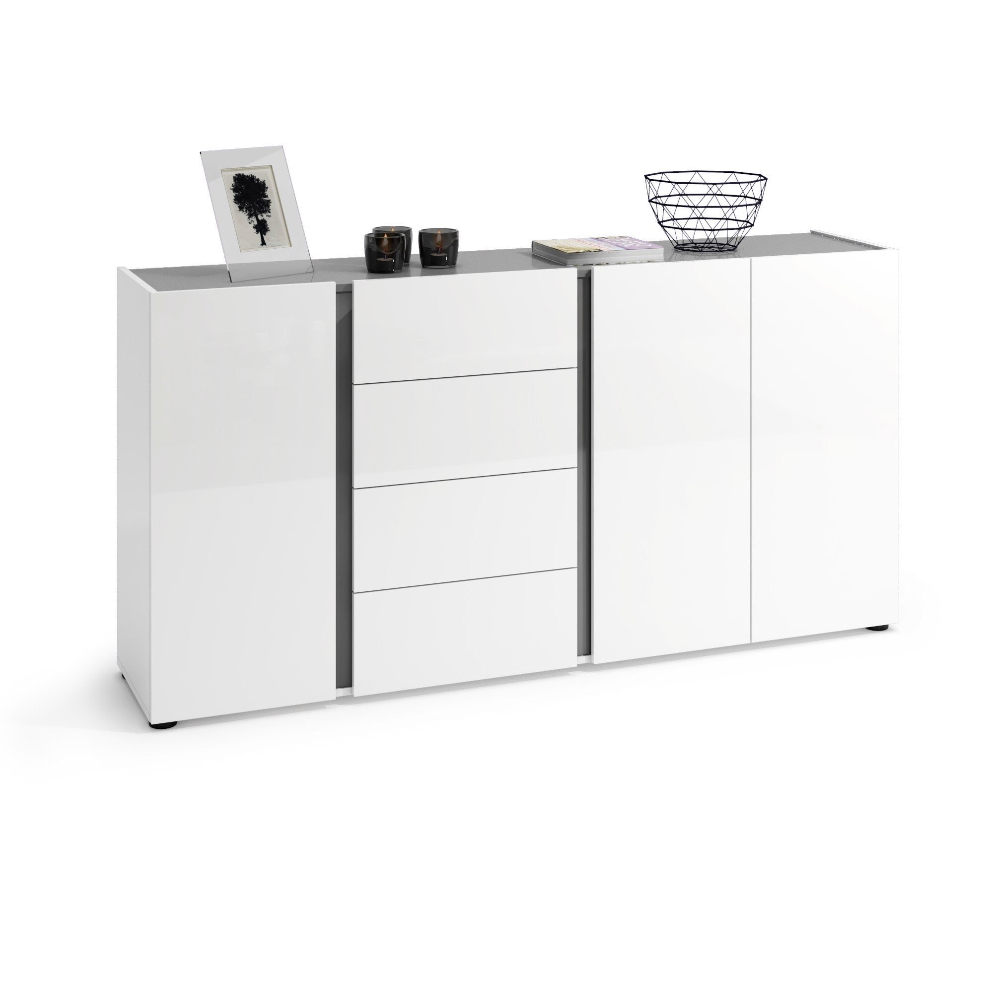 [Bullet-Point 3] => Die Kombination aus hochglänzendem Weiß und anthrazitfarbenen Akzenten verleiht dem Sideboard eine moderne Eleganz, die sich in jedes Raumkonzept einfügt