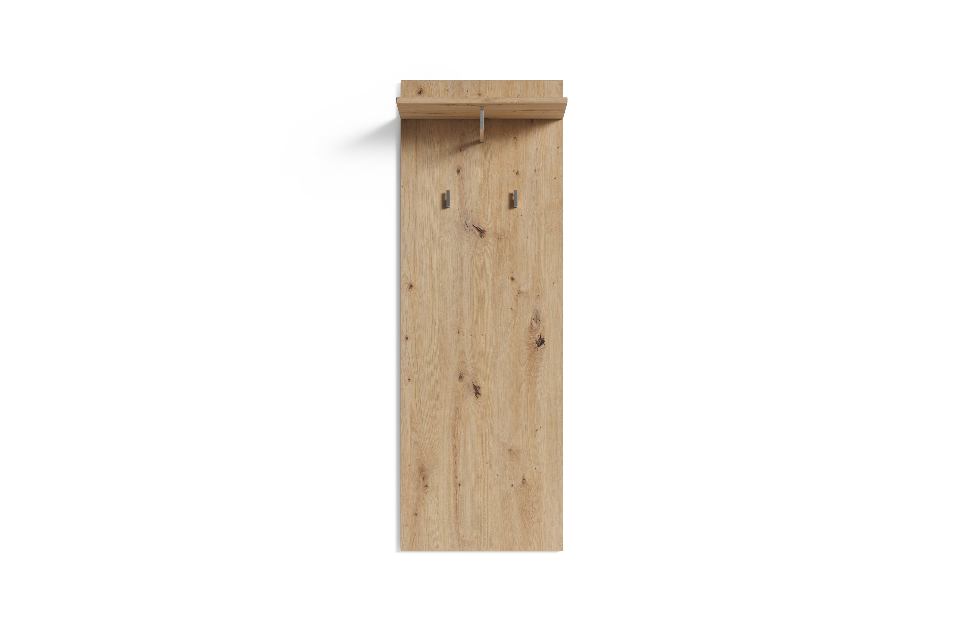 Mit zwei Kleiderhaken, einer Kleiderstange und einer darüberliegenden Ablagefläche bietet das Paneel reichlich Platz für Ihre Kleidung und Alltagsutensilien. So haben Jacken, Schals und Hüte einen festen Platz und bleiben im Alltag ordentlich und griffbereit.