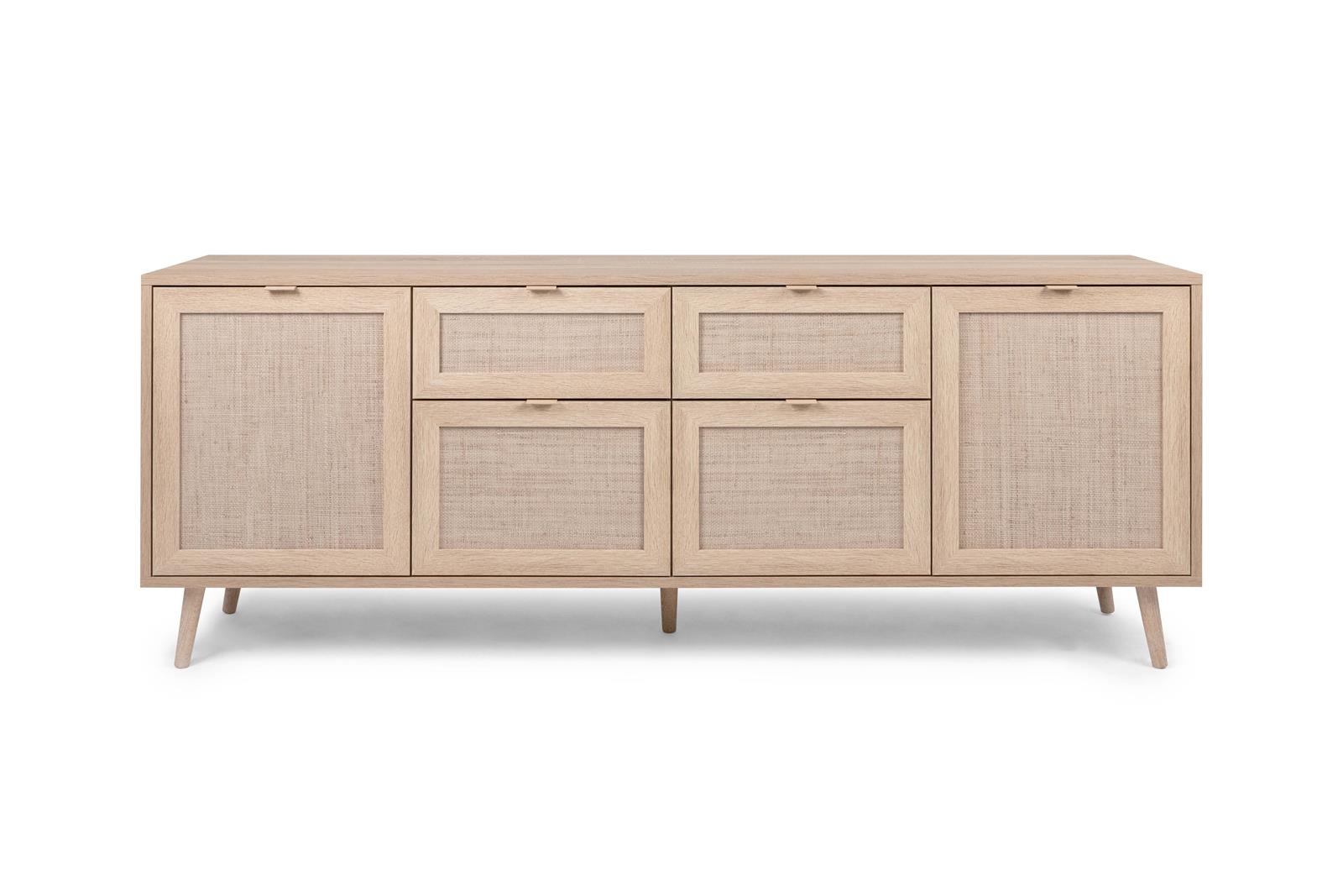 [metaDescription] => TV-Lowboard im Rafia-Geflecht Dekor mit Massivholzfüßen Skandinavische Serie mit einem echt wirkenden Dekor im Bast-Look Der Korpus im Dekor Sonoma Eiche un