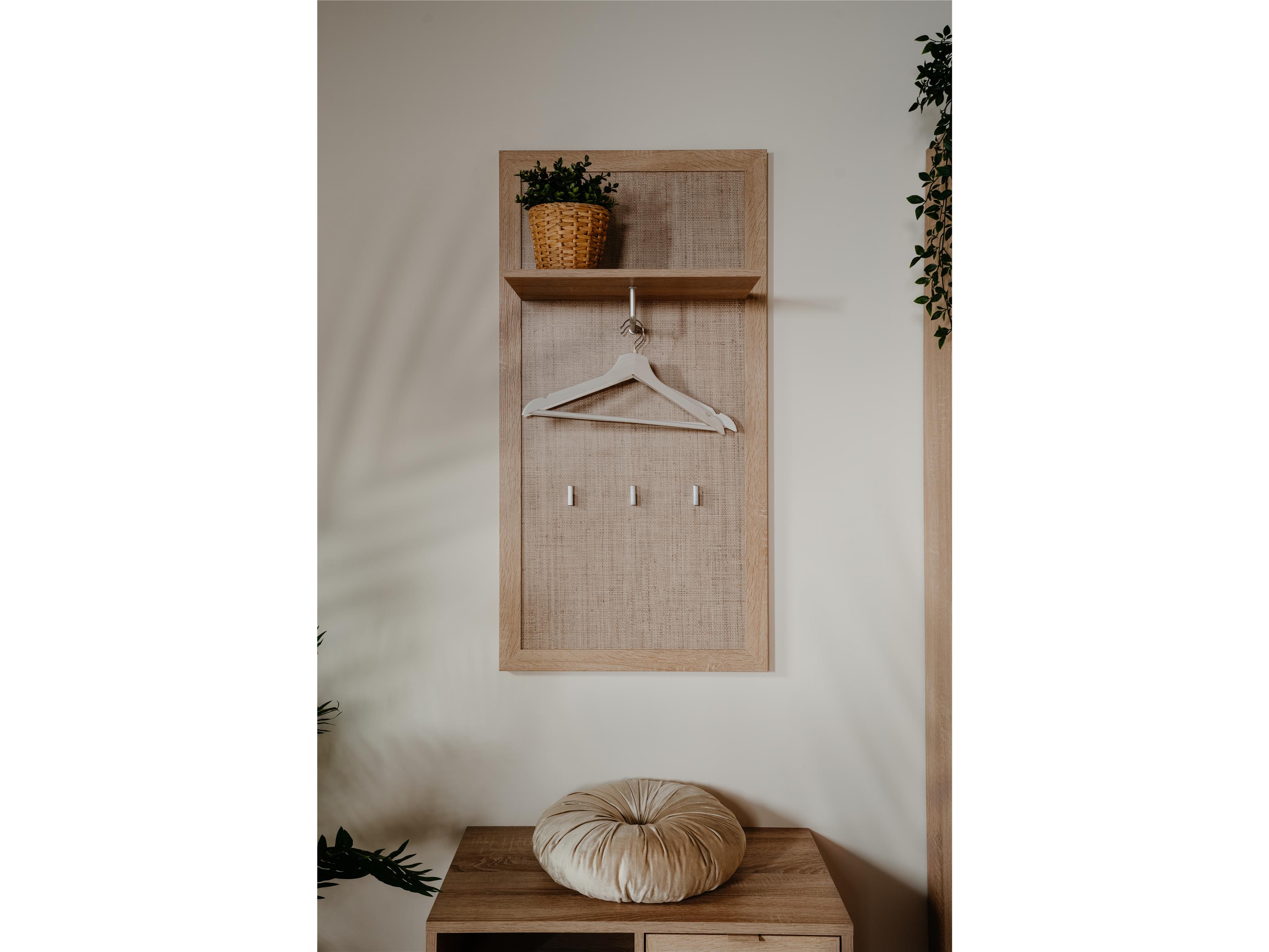 Mit einem Ablageboden, einer Kleiderstange und Haken (Anzahl Haken laut Angabe: 3) bietet das Paneel Platz zum Aufhängen und Ablegen von Jacken, Taschen oder Accessoires. Der Wohnstil ist bewusst skandinavisch gehalten und setzt auf helle, freundliche Dekore, die den Eingangsbereich optisch aufwerten.