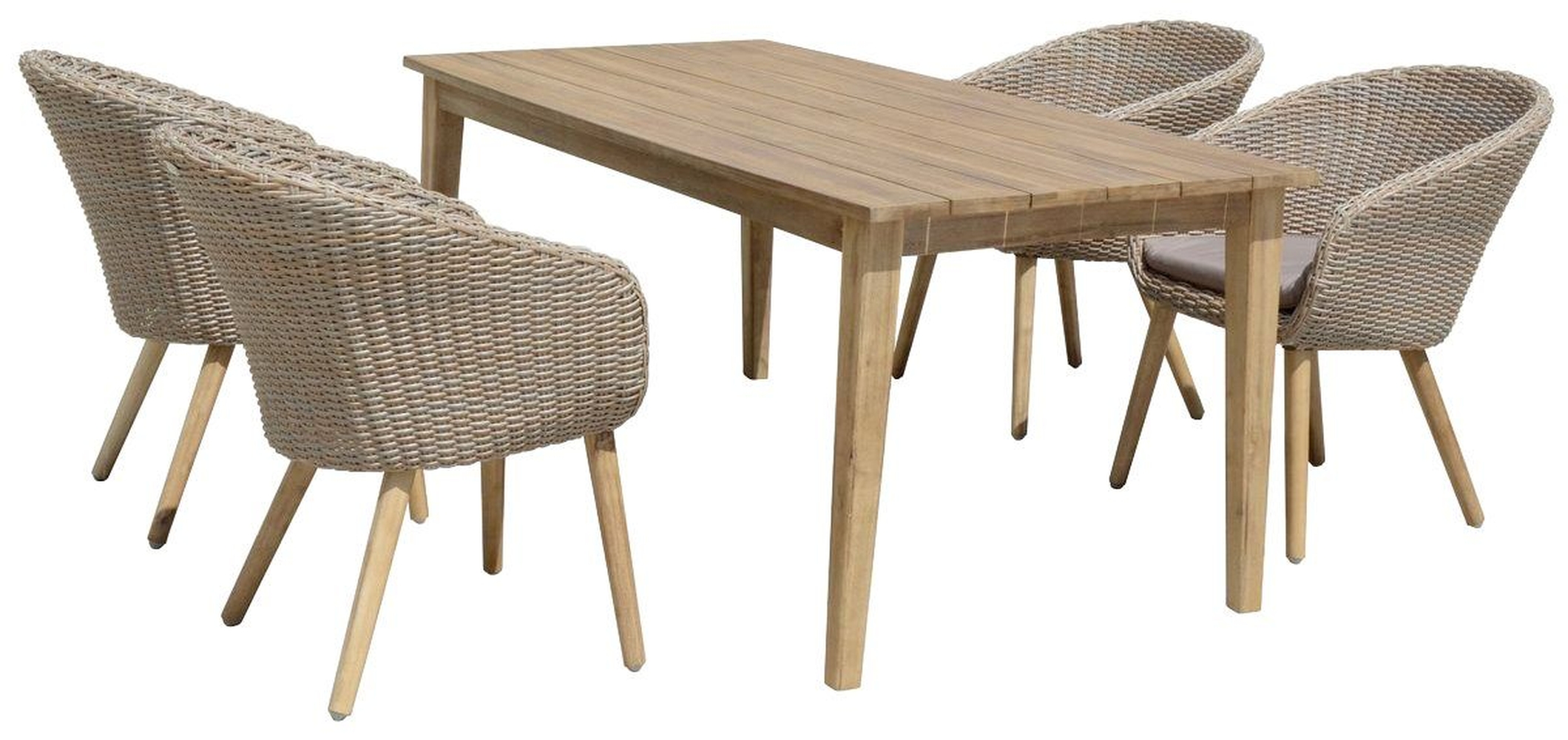 Gartentrends Visalia – Garten-Essgruppe mit Auflagen und Akazie/Kunststoff-Oberfläche
