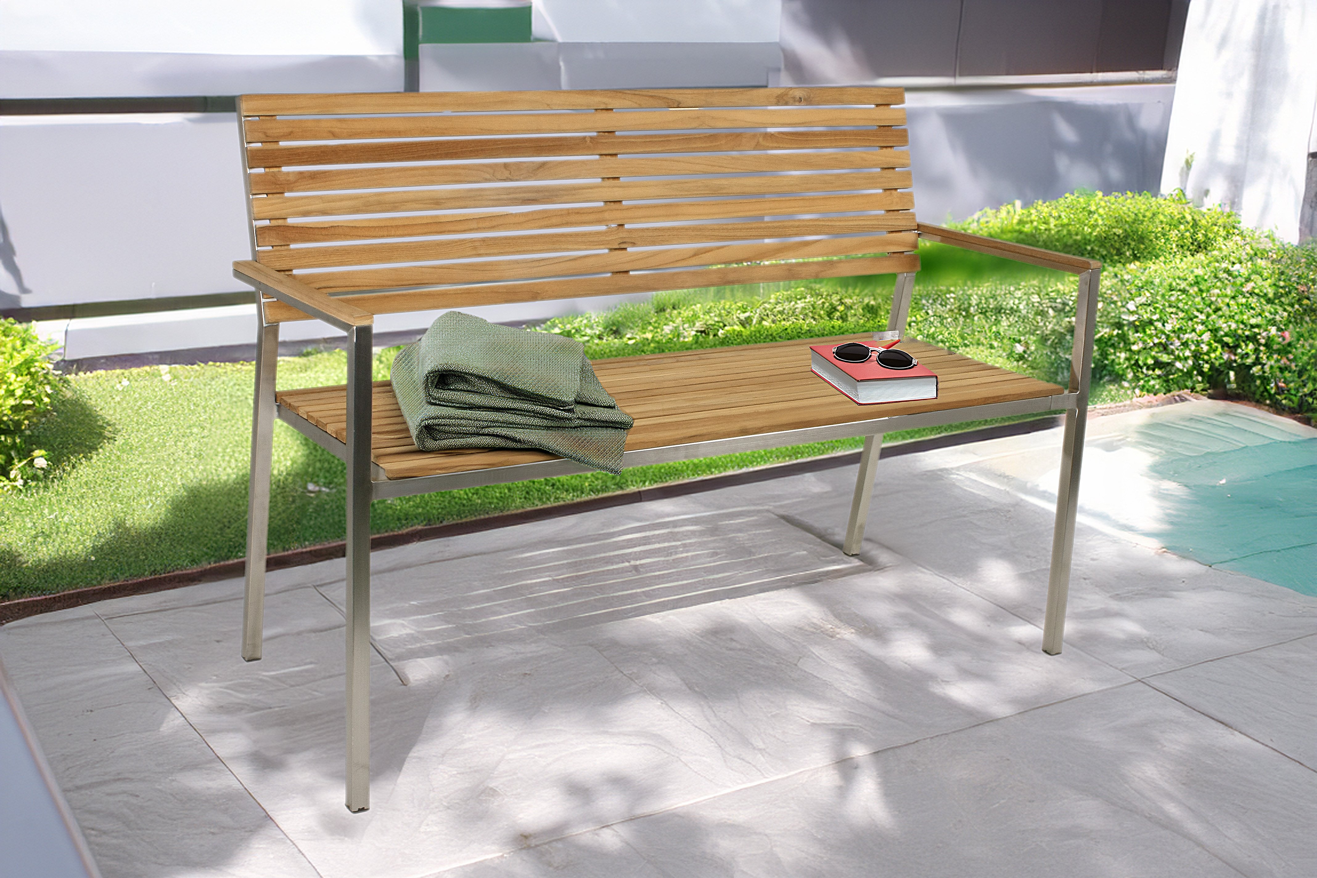 Zeitloser Gartentisch Denver aus Edelstahl und Teakholz