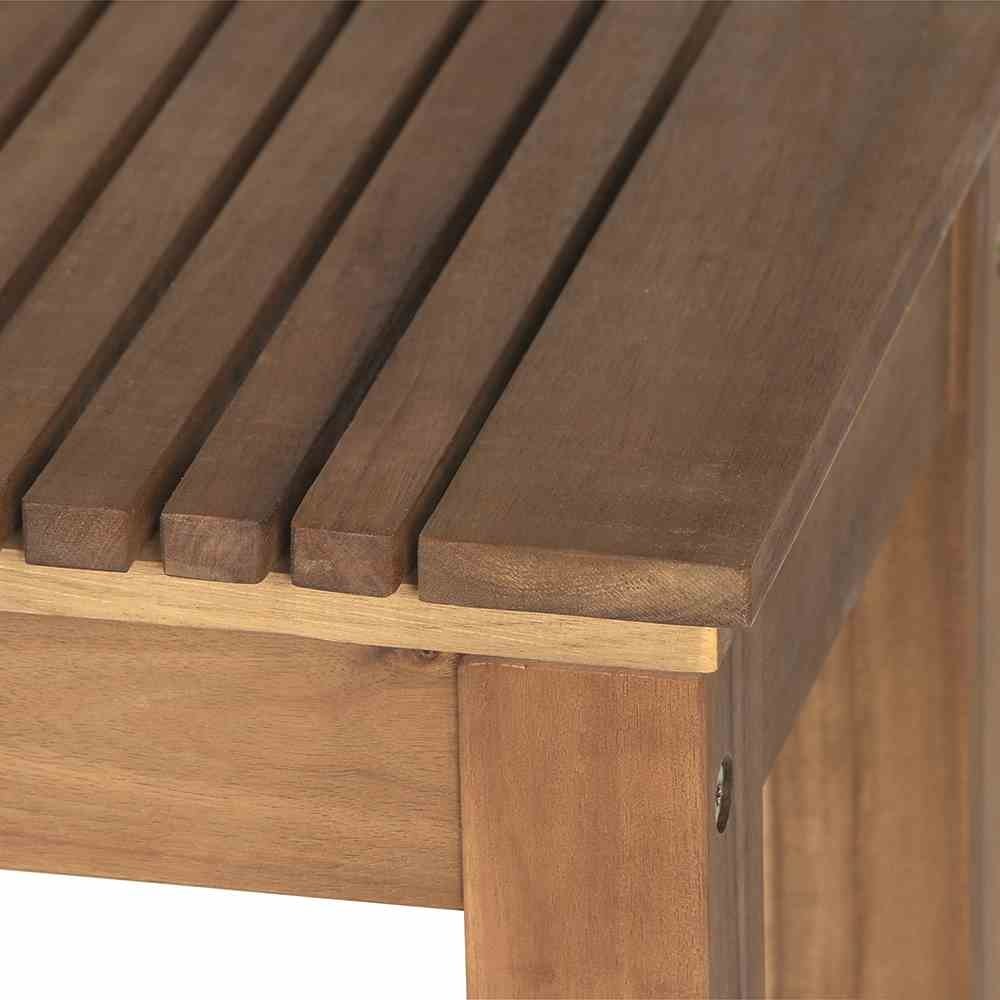 Geliefert wird der Gartentisch teilzerlegt, was den Transport erleichtert und den Aufbau überschaubar macht. Inhalt und Dekoration sind nicht im Lieferumfang enthalten, sodass Sie Ihren Outdoor-Bereich ganz nach Ihren eigenen Vorstellungen gestalten können. Beachten Sie bitte die beiliegenden Pflegehinweise im Produkt- und Materialpass, um lange Freude an der geölten Akazienholzoberfläche zu haben.