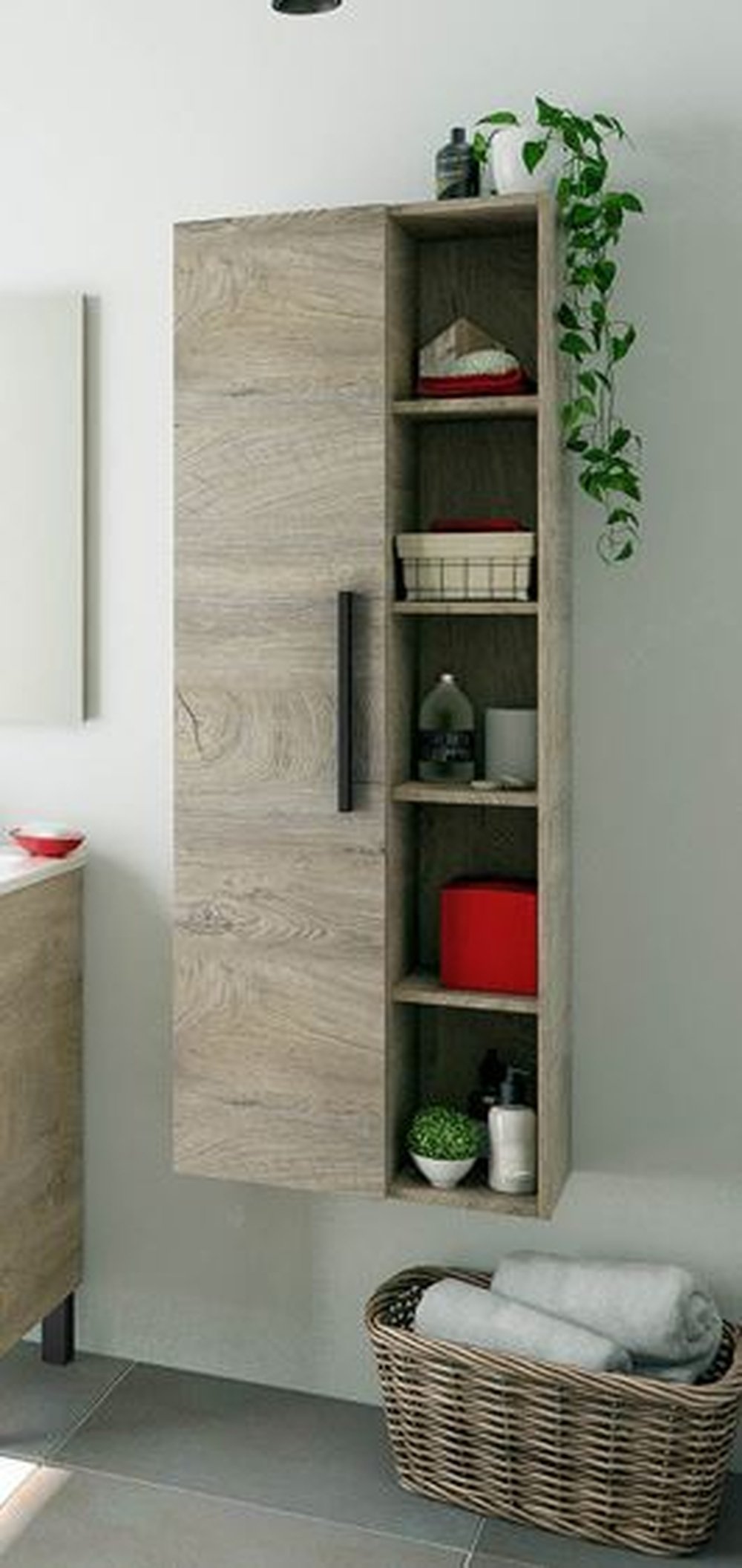 Der ATHENA Wandhängeschrank von freiraum wurde speziell für moderne Badezimmer konzipiert, in denen Stauraum und Design gleichermaßen wichtig sind. Mit einer Breite von 51 cm, einer Höhe von 135 cm und einer Tiefe von 25 cm eignet sich der Schrank ideal für schmale Wandbereiche und ergänzt Waschtische oder andere Badmöbel stilvoll.