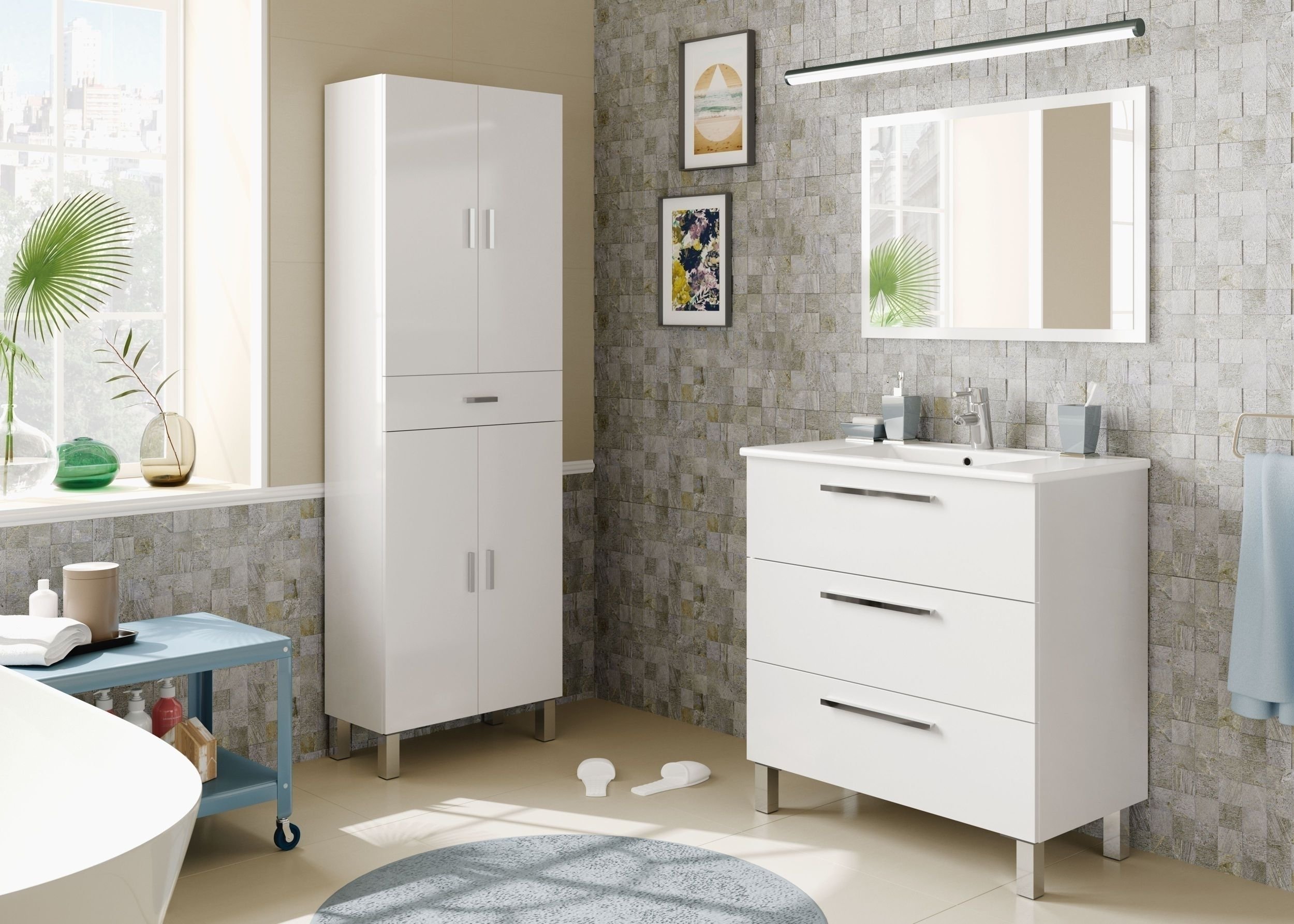 Hergestellt in Spanien aus melaminbeschichtetem Holzwerkstoff steht der ATHENA Schrank für pflegeleichte Oberflächen und Alltagstauglichkeit. Höhenverstellbare Einlegeböden im geschlossenen Bereich sowie höhenverstellbare Regalbodenträger aus Metall sorgen für anpassbaren Stauraum, während die maximale Belastbarkeit von 15 kg einen soliden, zuverlässigen Einsatz im Badezimmer ermöglicht.