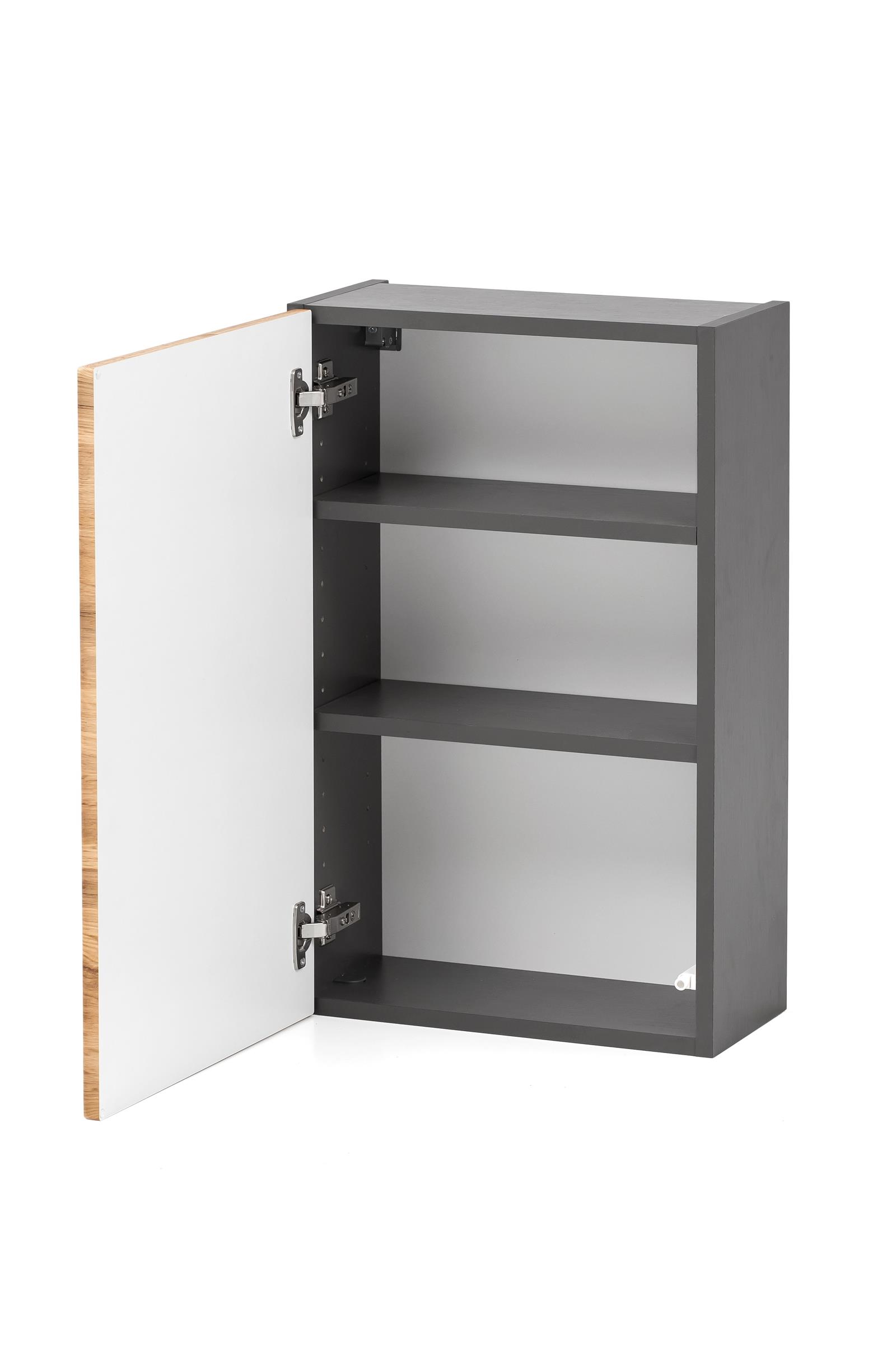 Moderner Bad-Hängeschrank in Wotaneiche und Grafitgrau