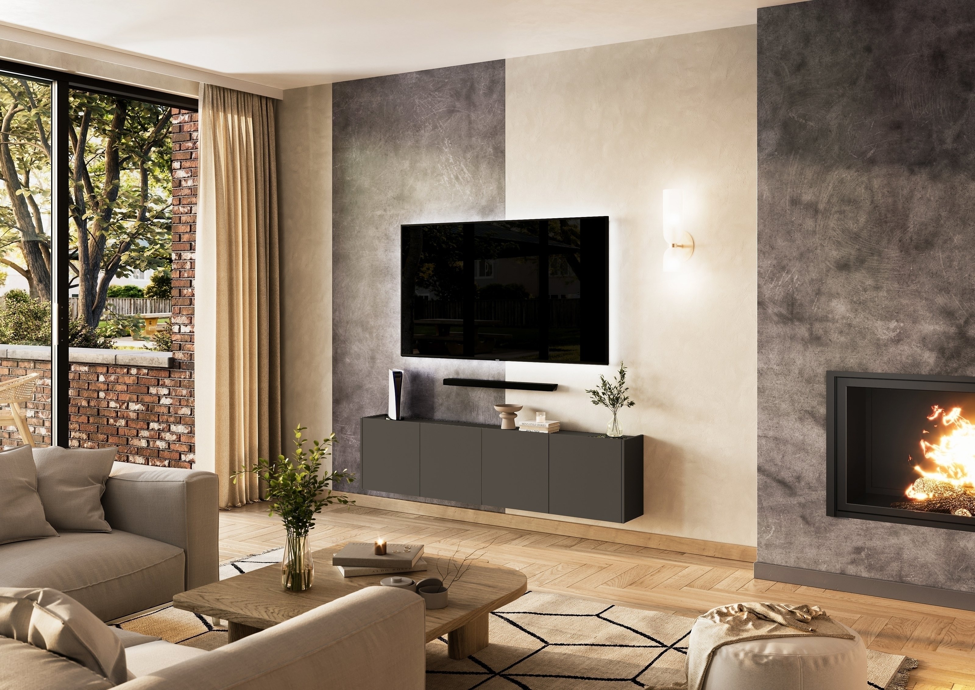 Die Fronten und der Korpus in graphitfarbener Ausführung verleihen dem Möbelstück eine moderne, edle Optik. Das grifflos gestaltete Design mit besonderer Balkonoptik unterstreicht den minimalistischen Charakter und fügt sich mühelos in unterschiedliche Einrichtungsstile ein – von puristisch bis elegant. Farbhinweise weisen zudem darauf hin, dass Bildschirmfarben von den Originaltönen abweichen können.