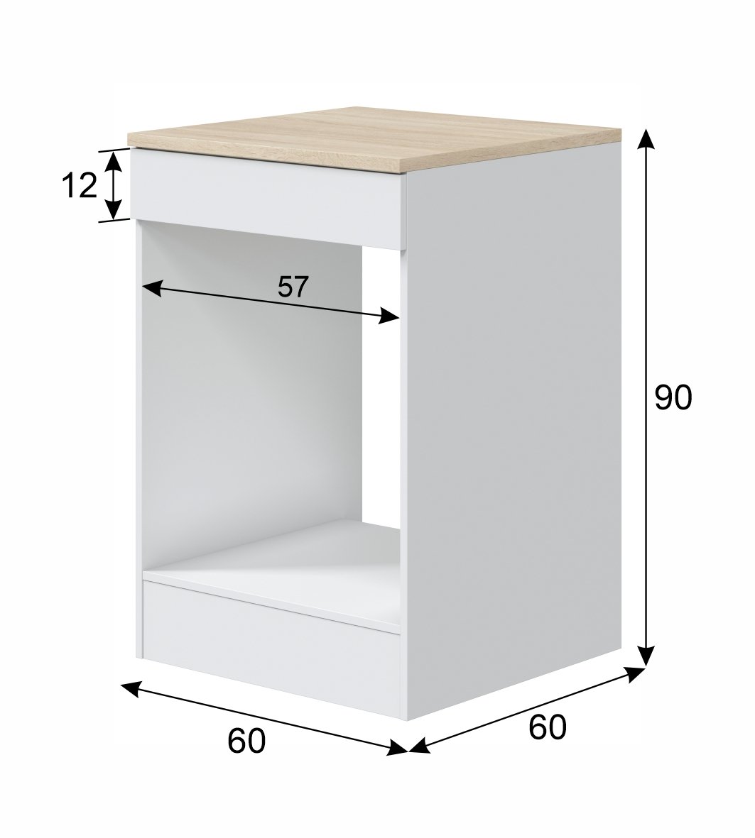 Der Herdumbauschrank KIRA ist das passende Modul, um Ihren Herd sauber und harmonisch in die Küchenzeile zu integrieren. Mit seinen Maßen von 60/90/60 cm (B/H/T) entsteht eine komfortable Arbeitshöhe von 90 cm, sodass der Herd funktional und optisch perfekt in Ihrer Küche eingebunden ist.